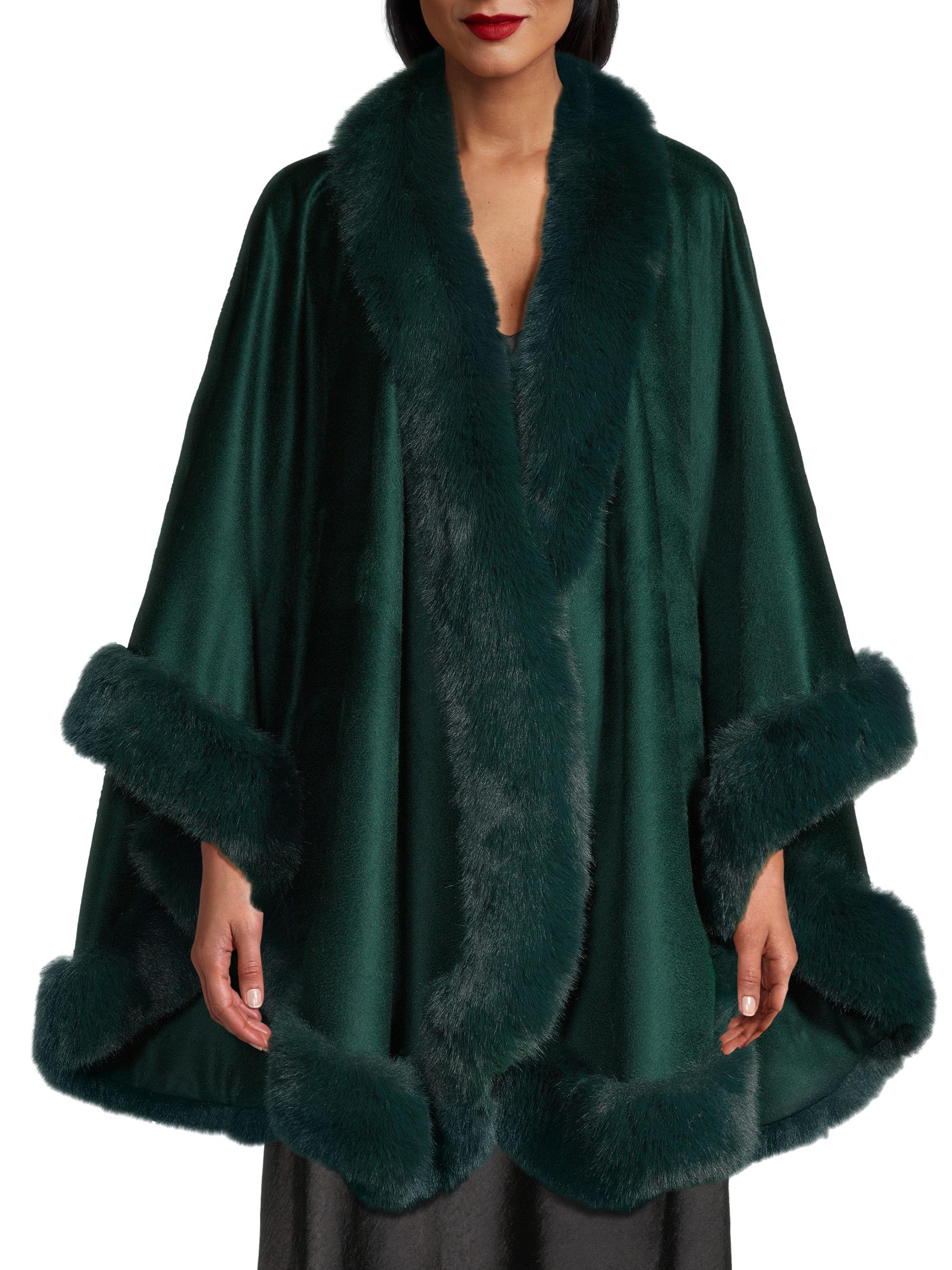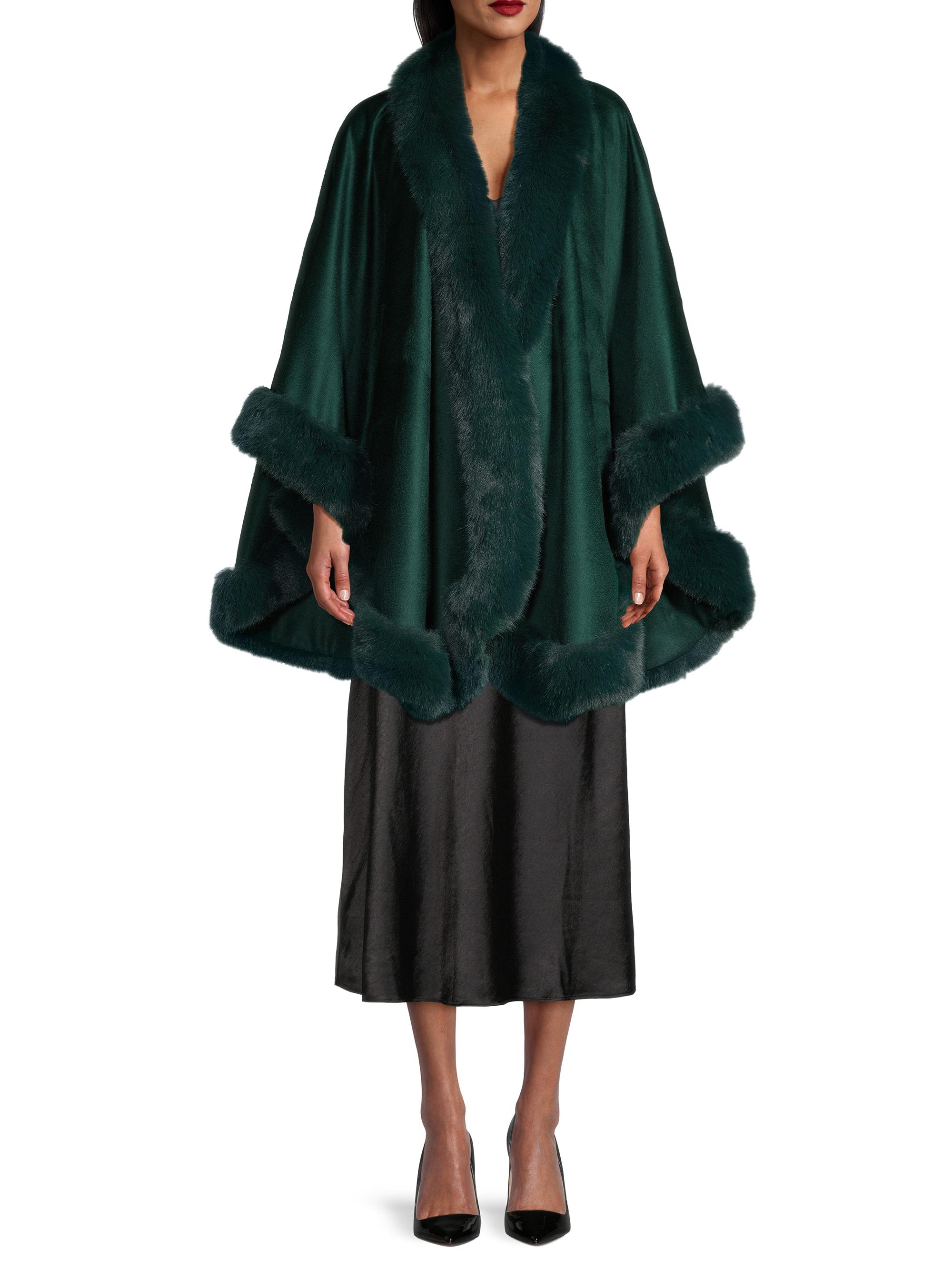 Sofia Cashmere Faux Fur & Cashmere U-Cape