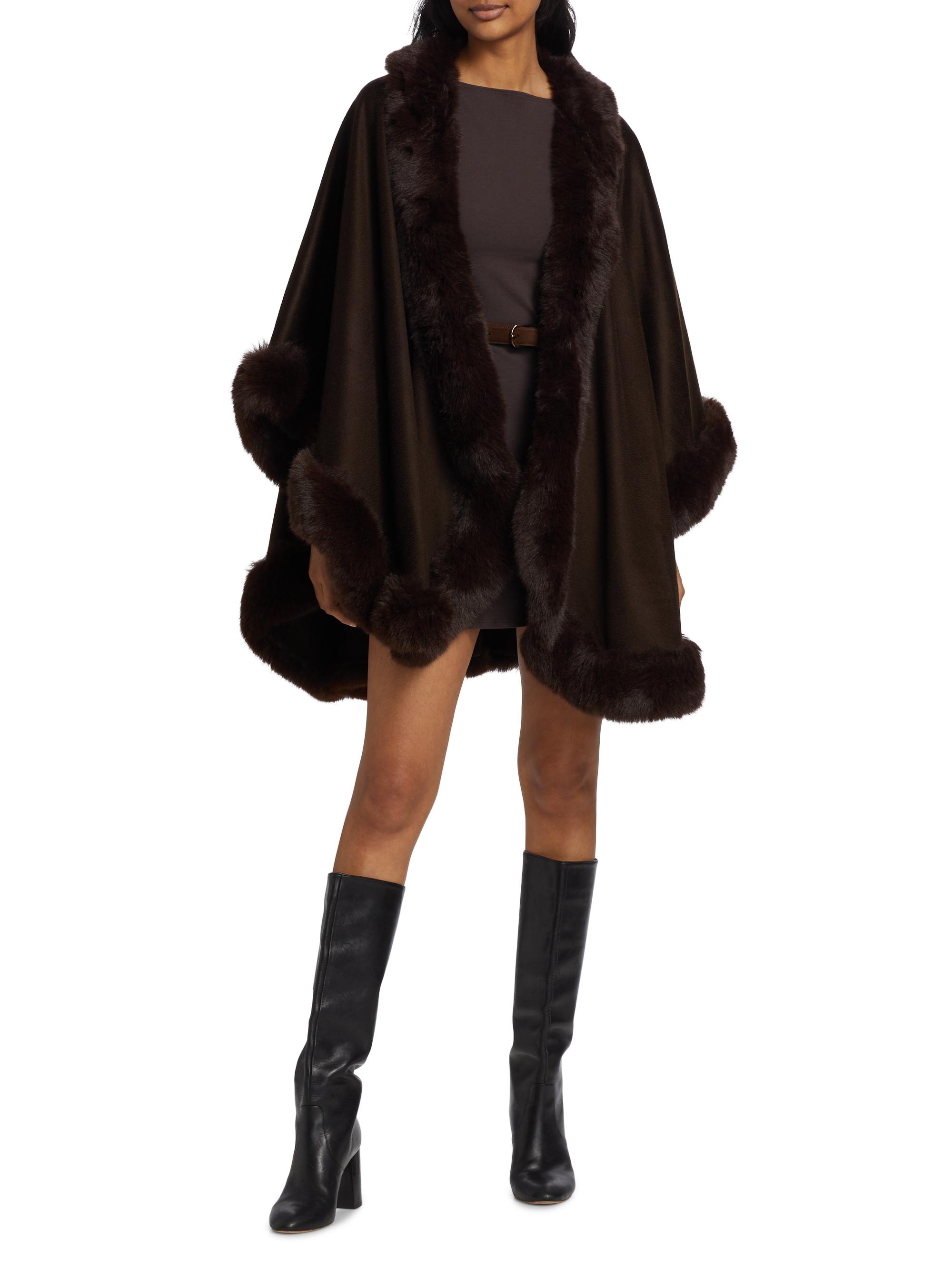 Sofia Cashmere Faux Fur & Cashmere U-Cape