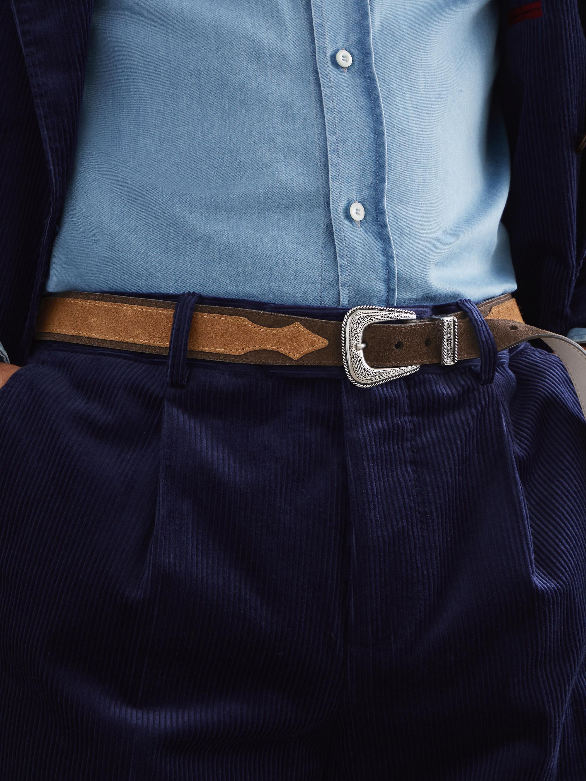 Brunello Cucinelli Two Tone Reversed Calfskin Belt with Detailed Buckle