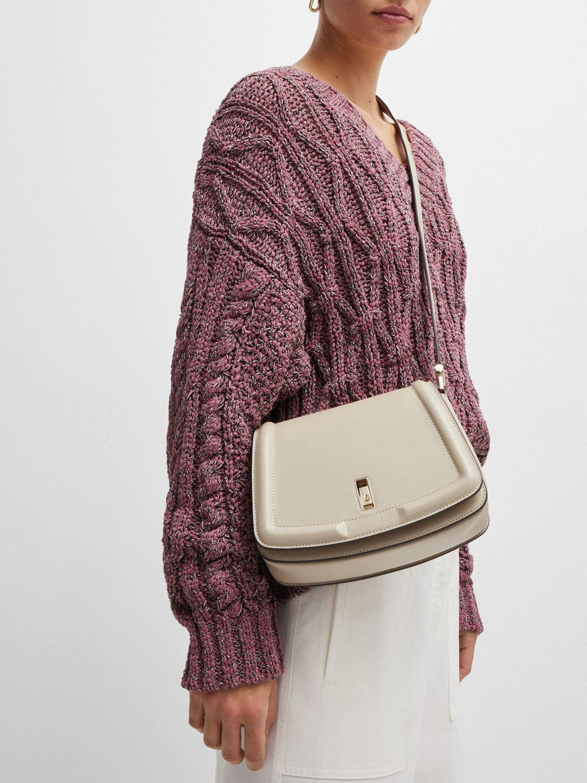 BOSS Leather Saddle Bag with Signature Hardware LIGHT BEIGE