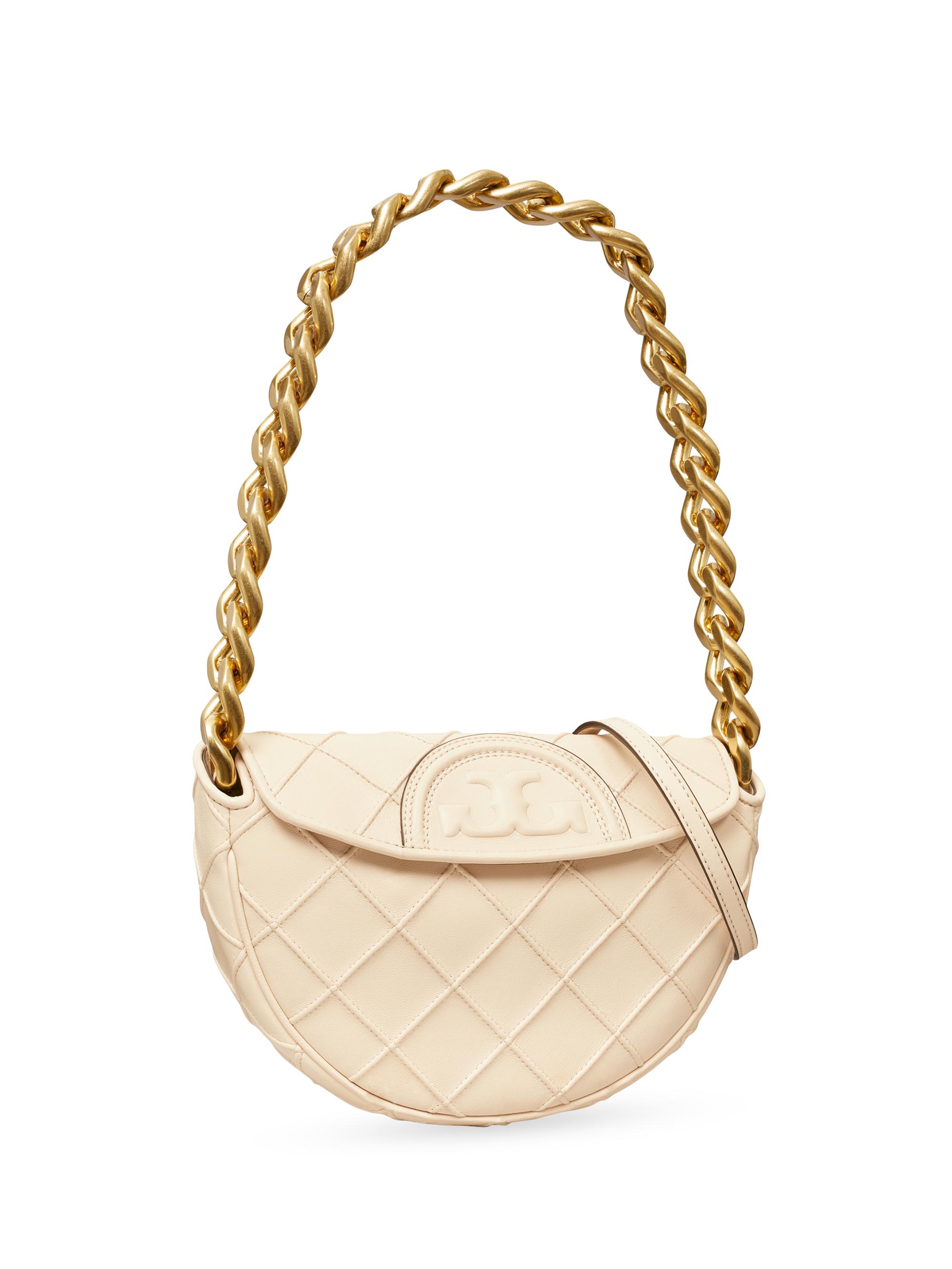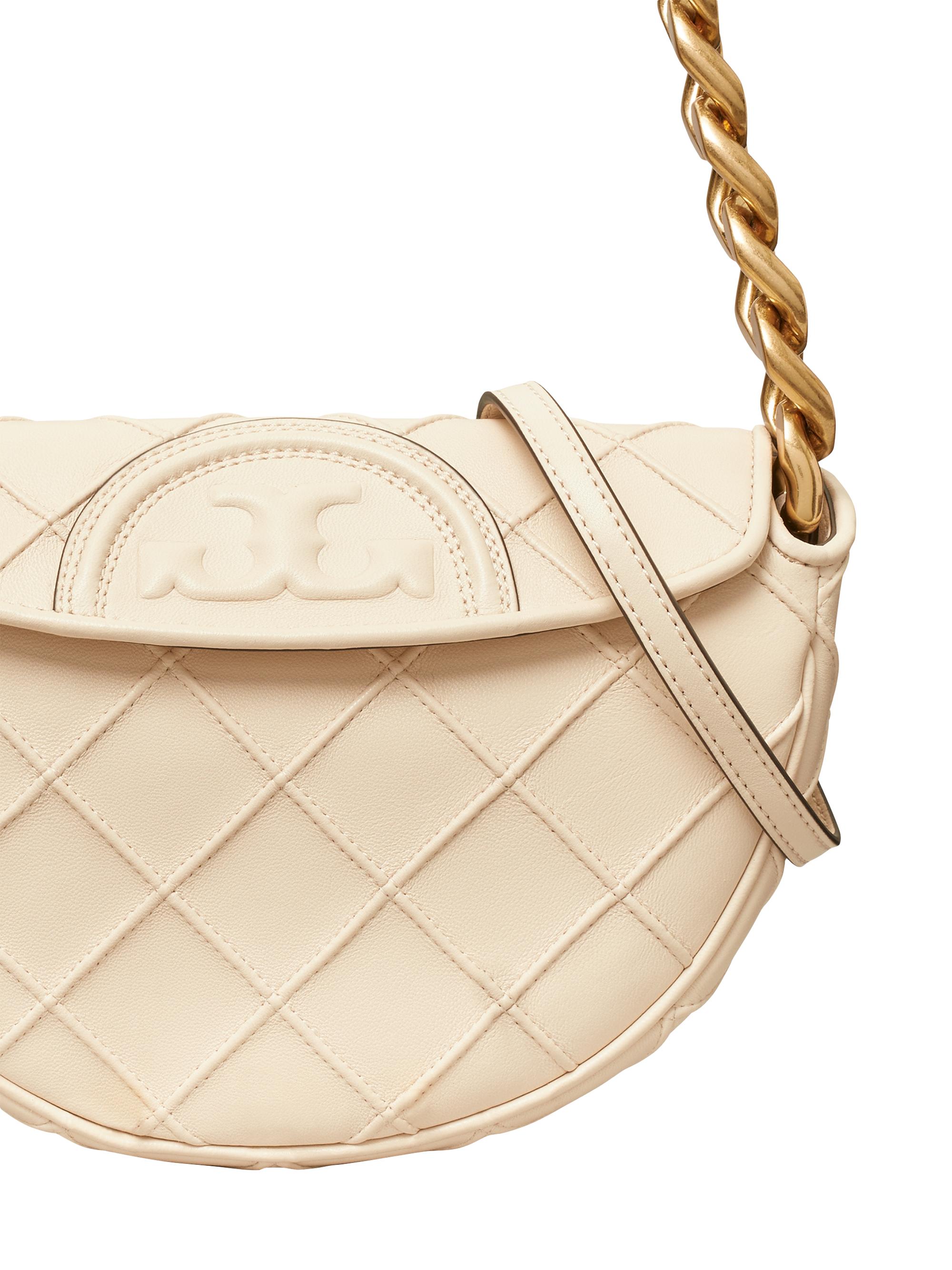 Tory Burch Mini Fleming Leather Crescent Bag NEW CREAM