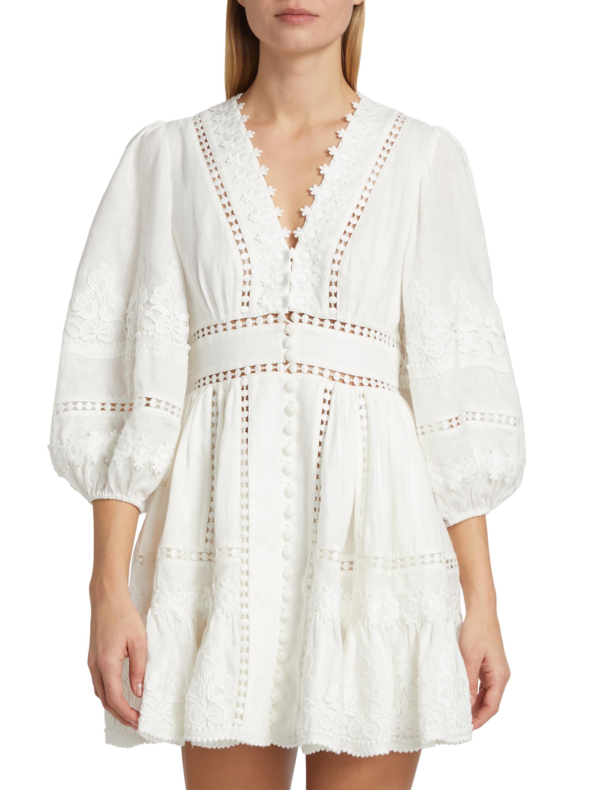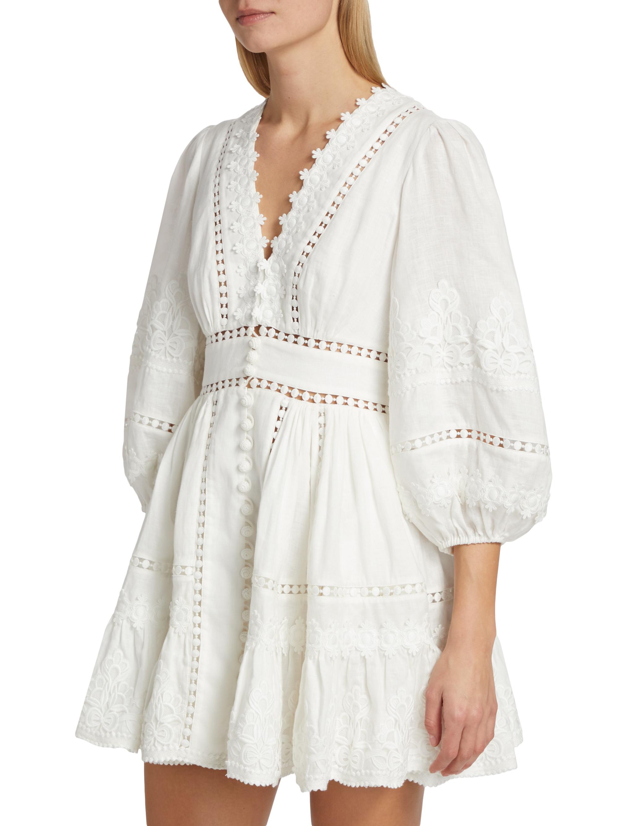 Zimmermann Pop Lace Puff-Sleeve Minidress