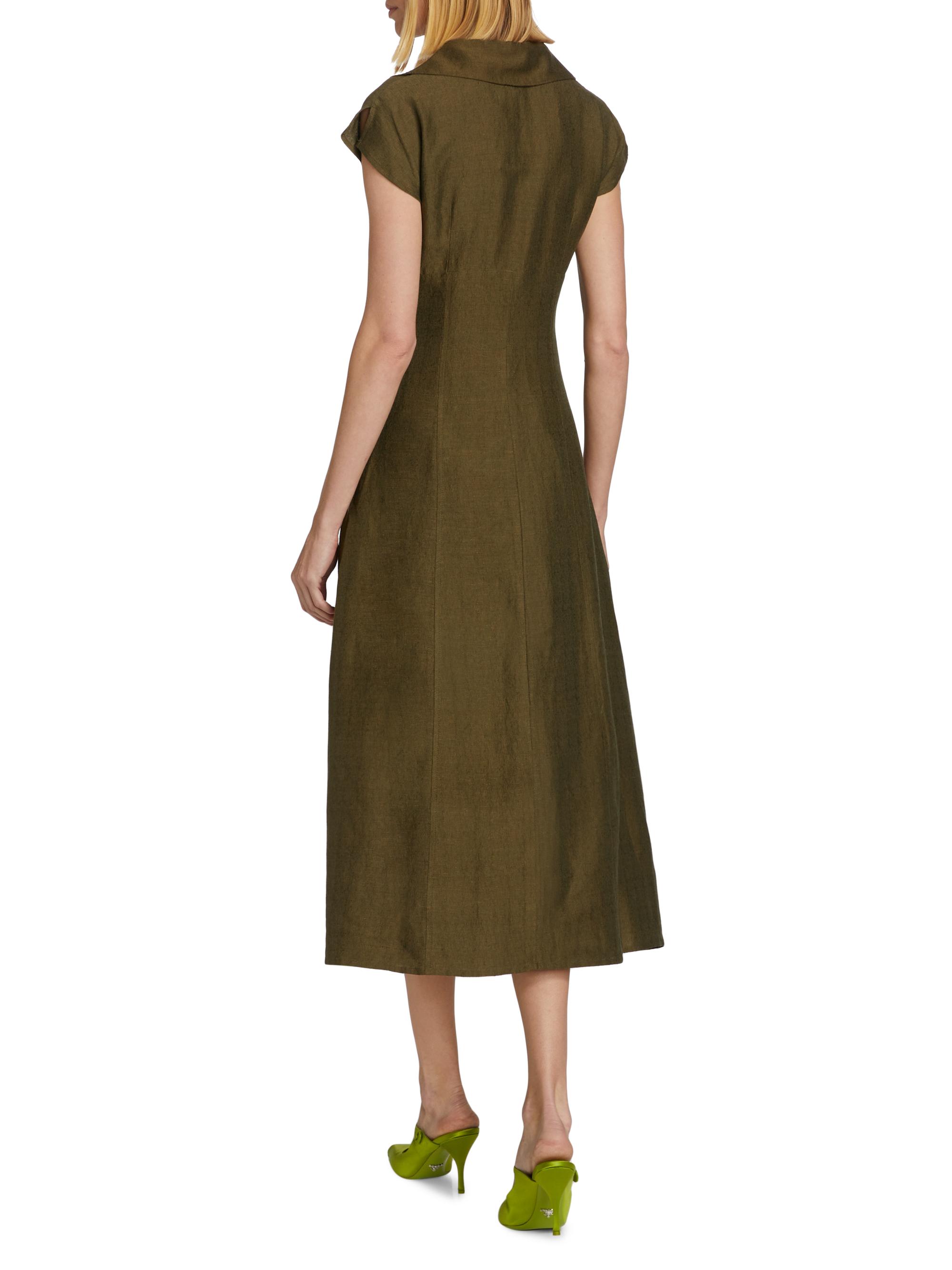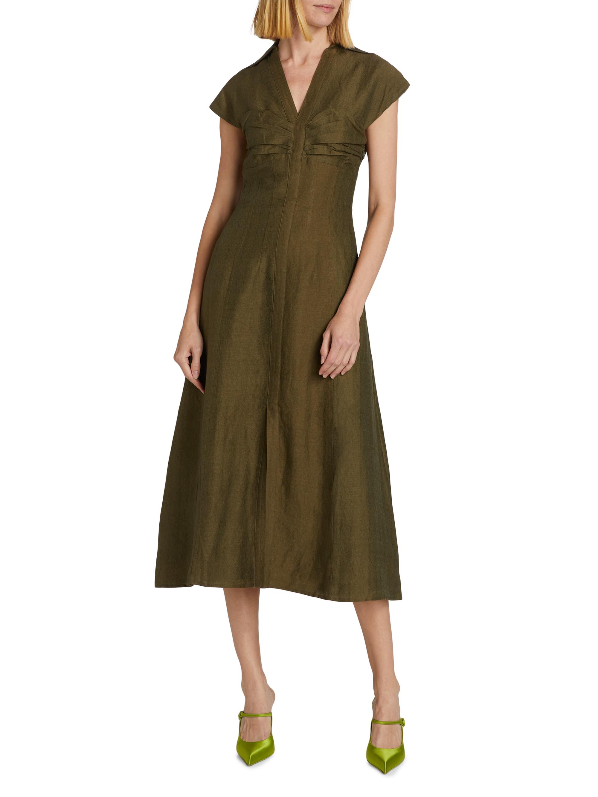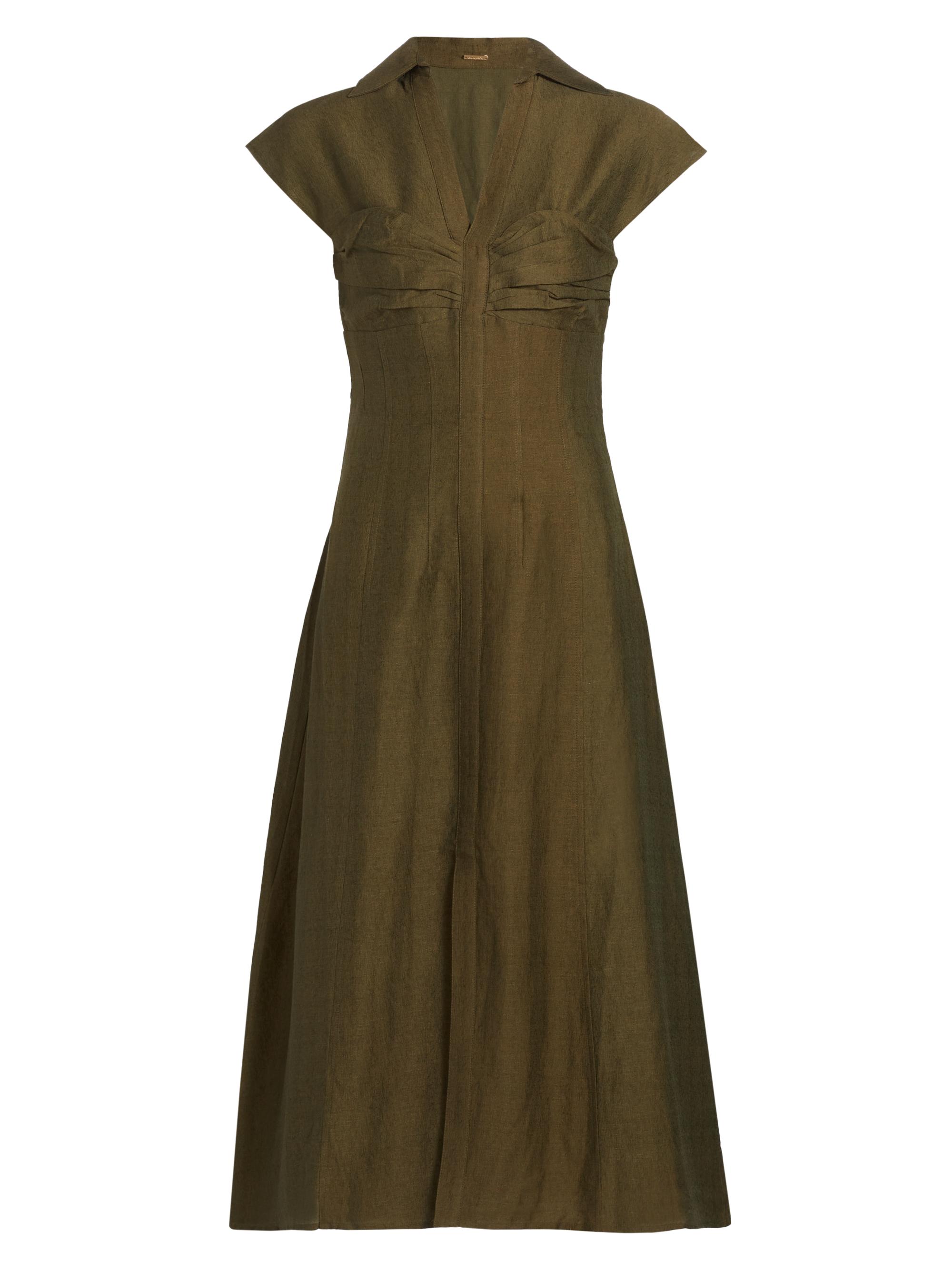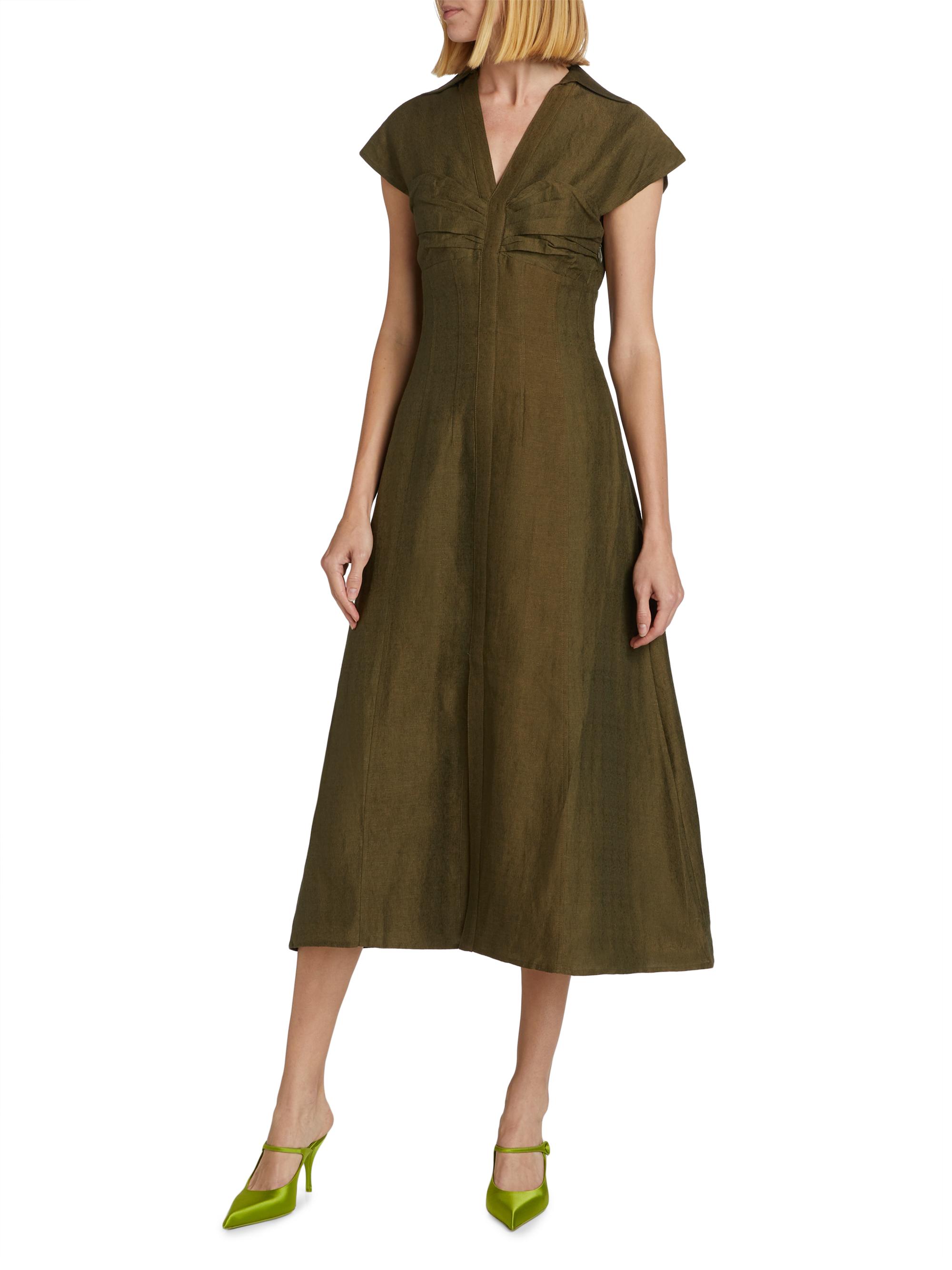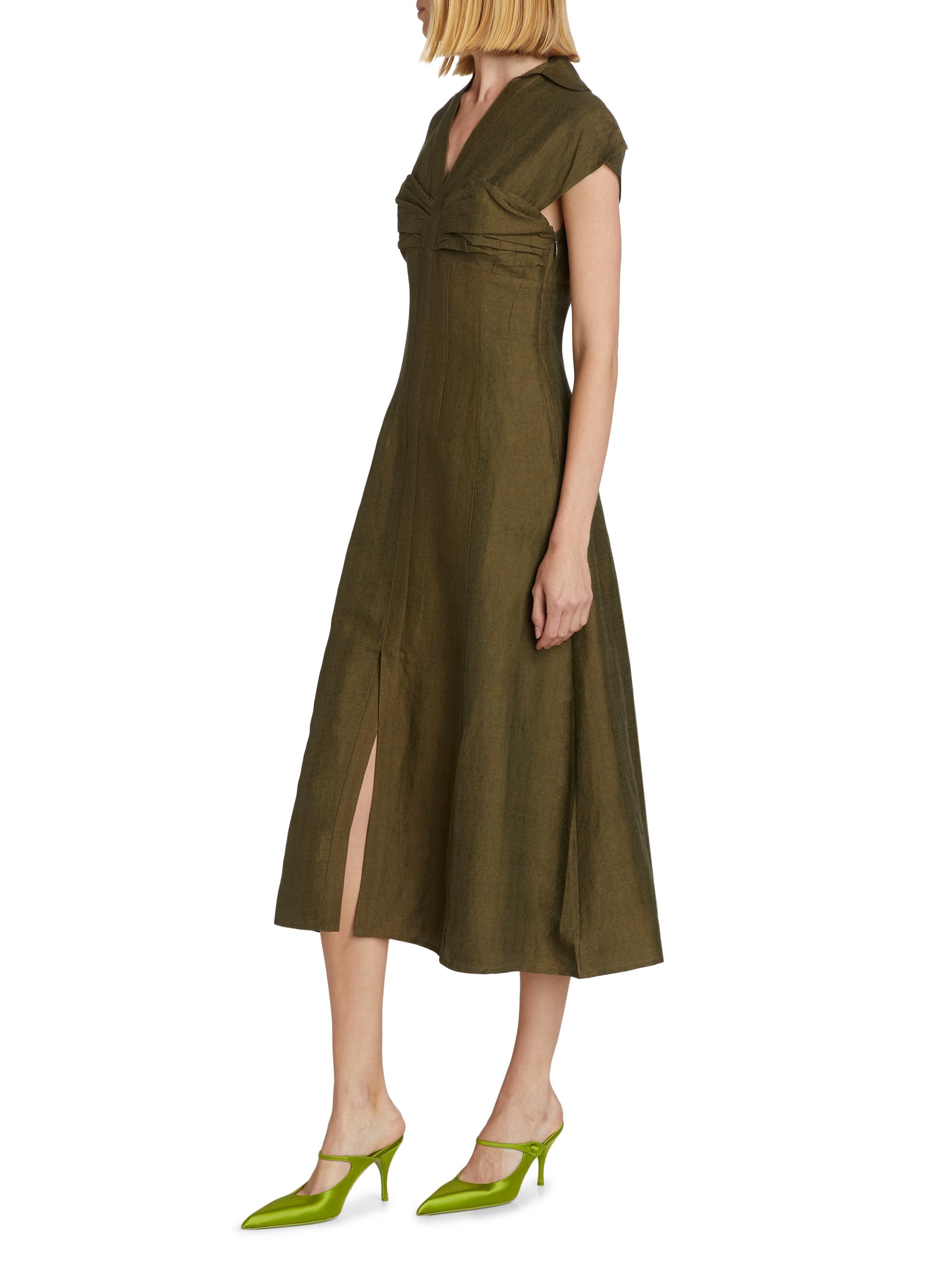 Cult Gaia Amora Linen-Wool Ruched Midi-Dress