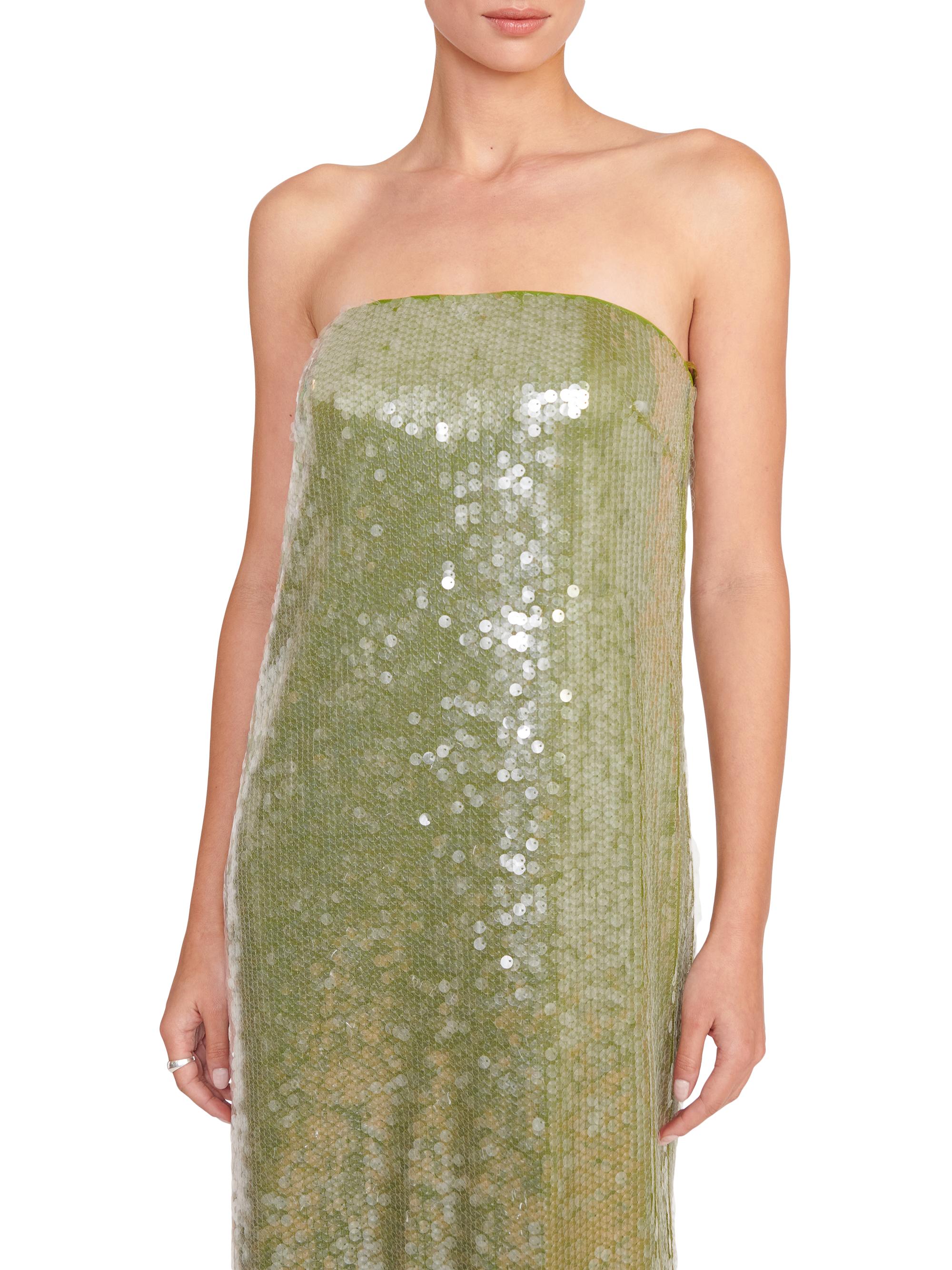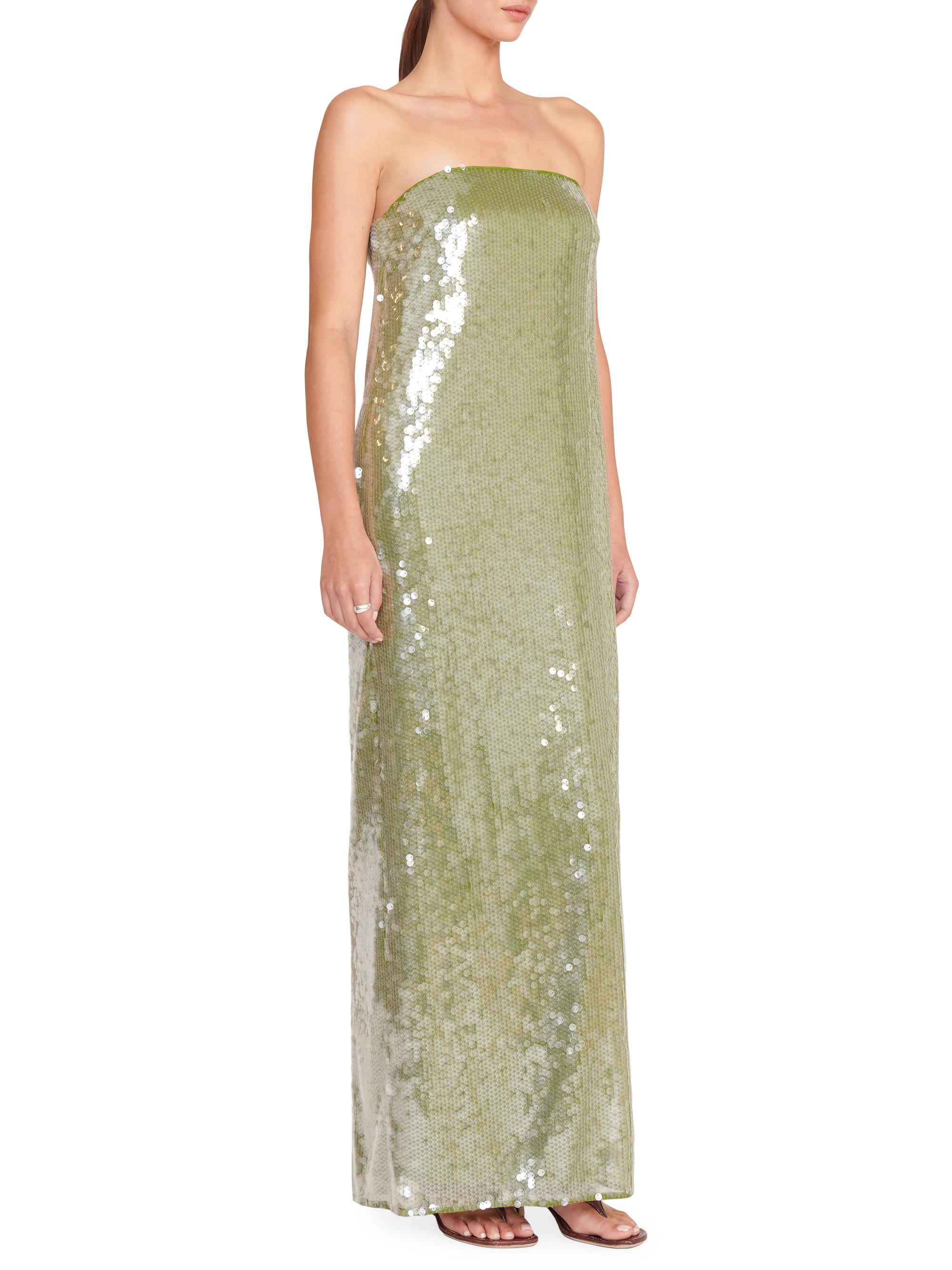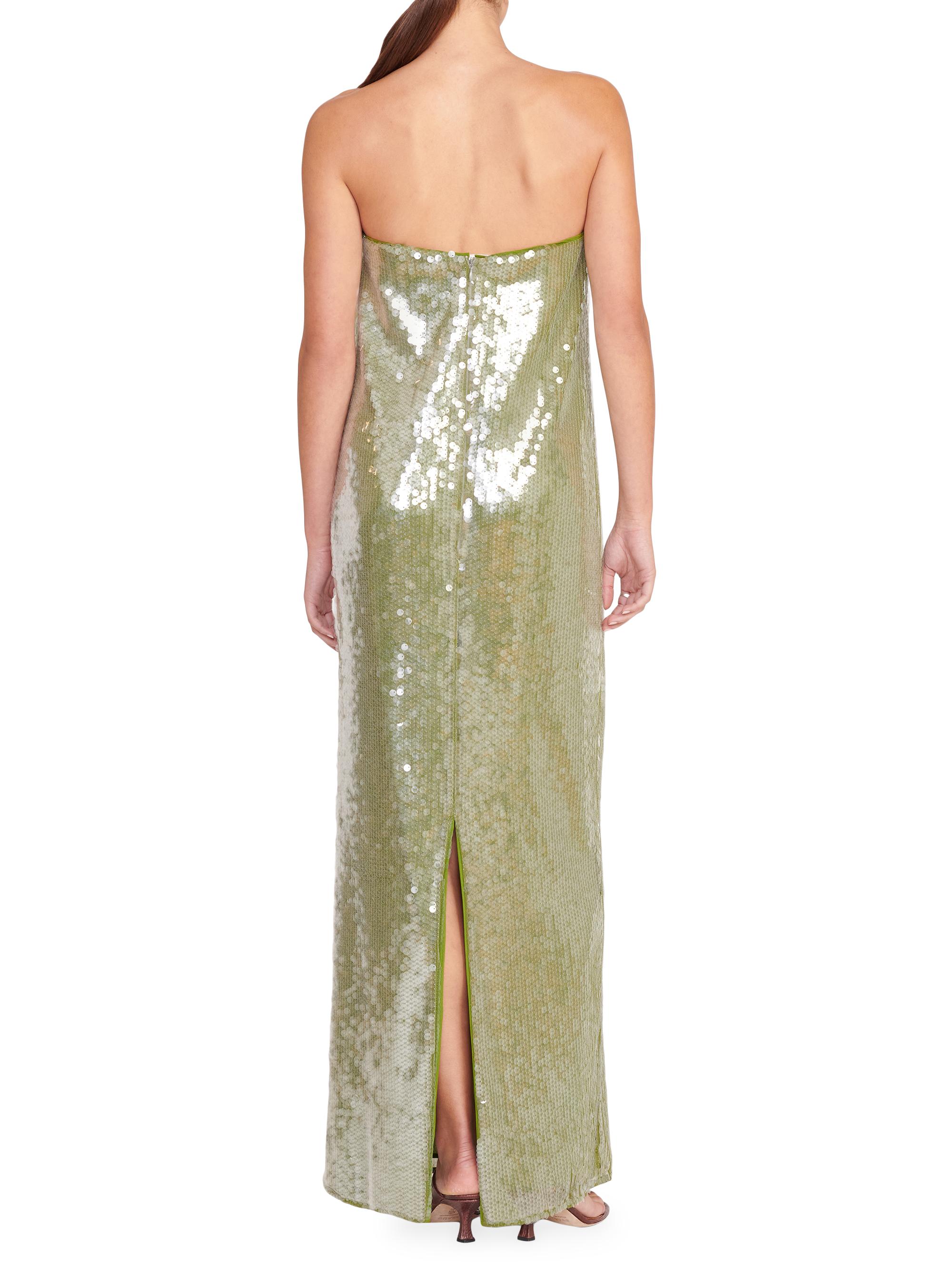Staud Casey Sequined Strapless Gown GARDEN MOSS