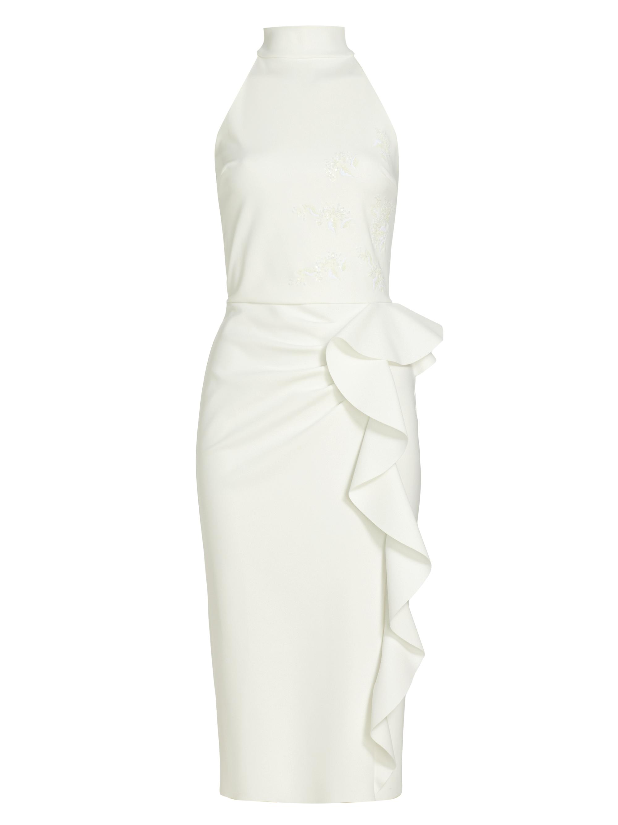 Chiara Boni La Petite Robe Teodorina Ruffled Sequin Stretch Midi-Dress