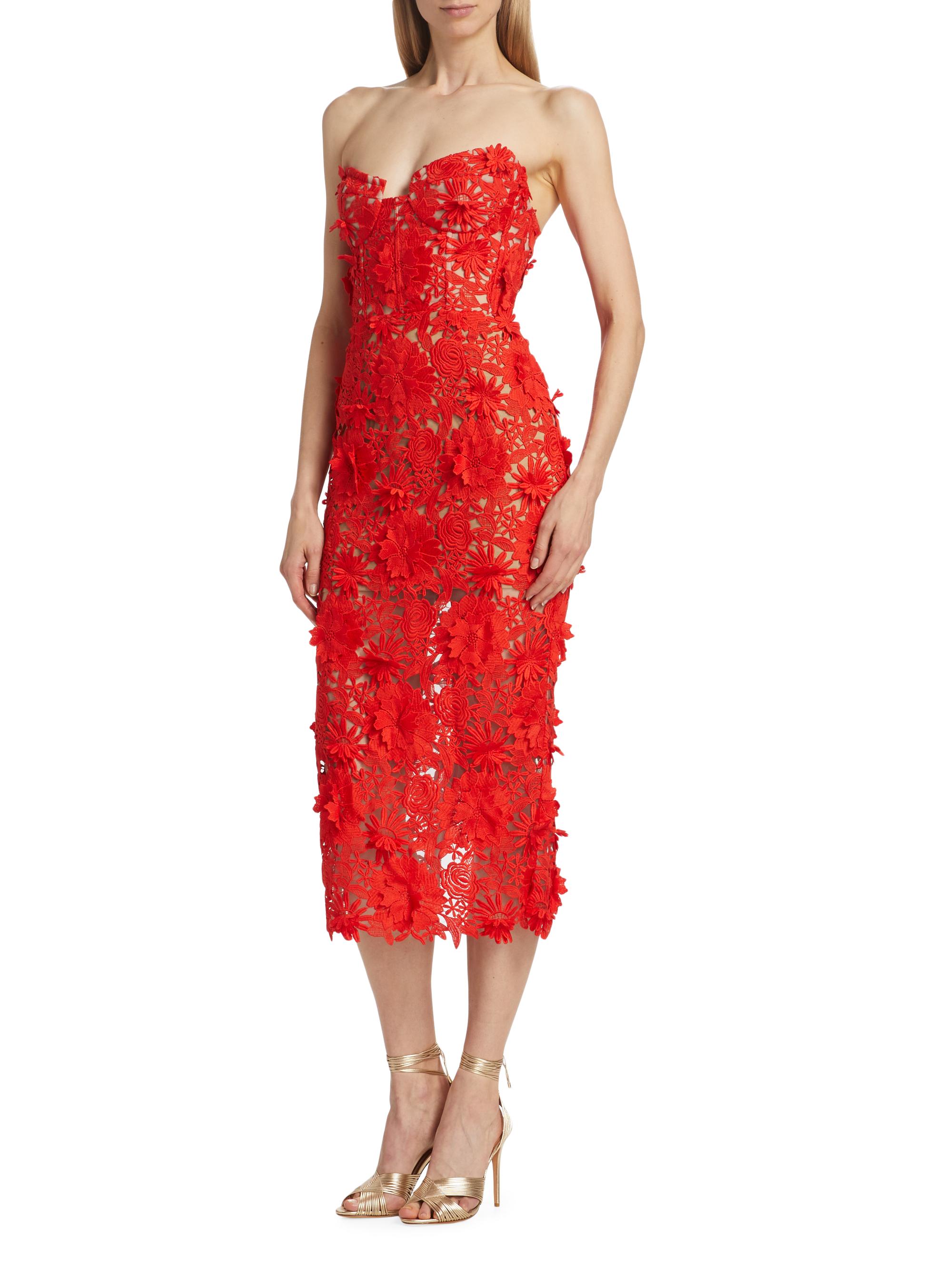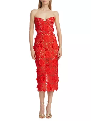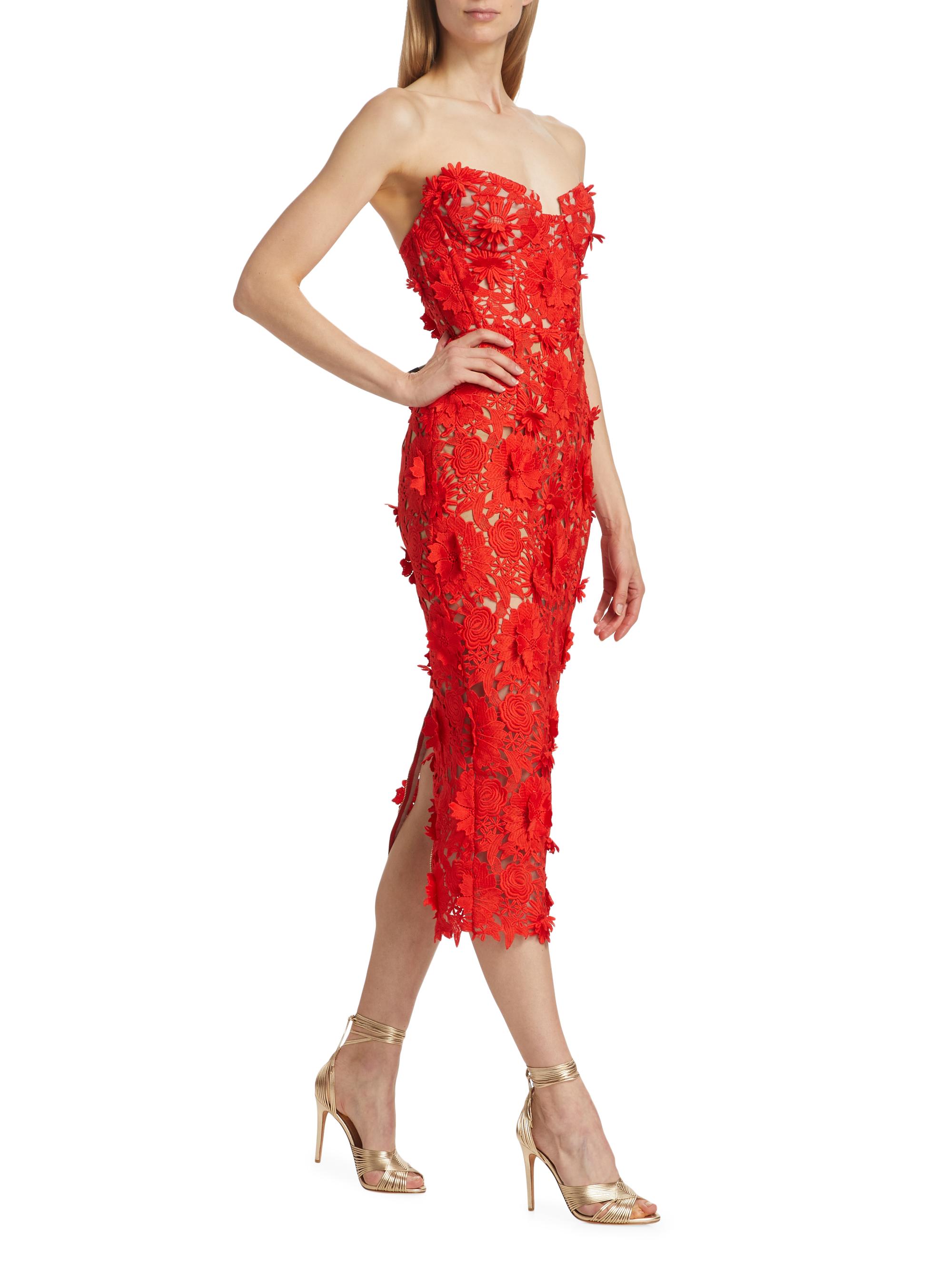 Bronx and Banco Jasmine Strapless Lace Midi-Dress