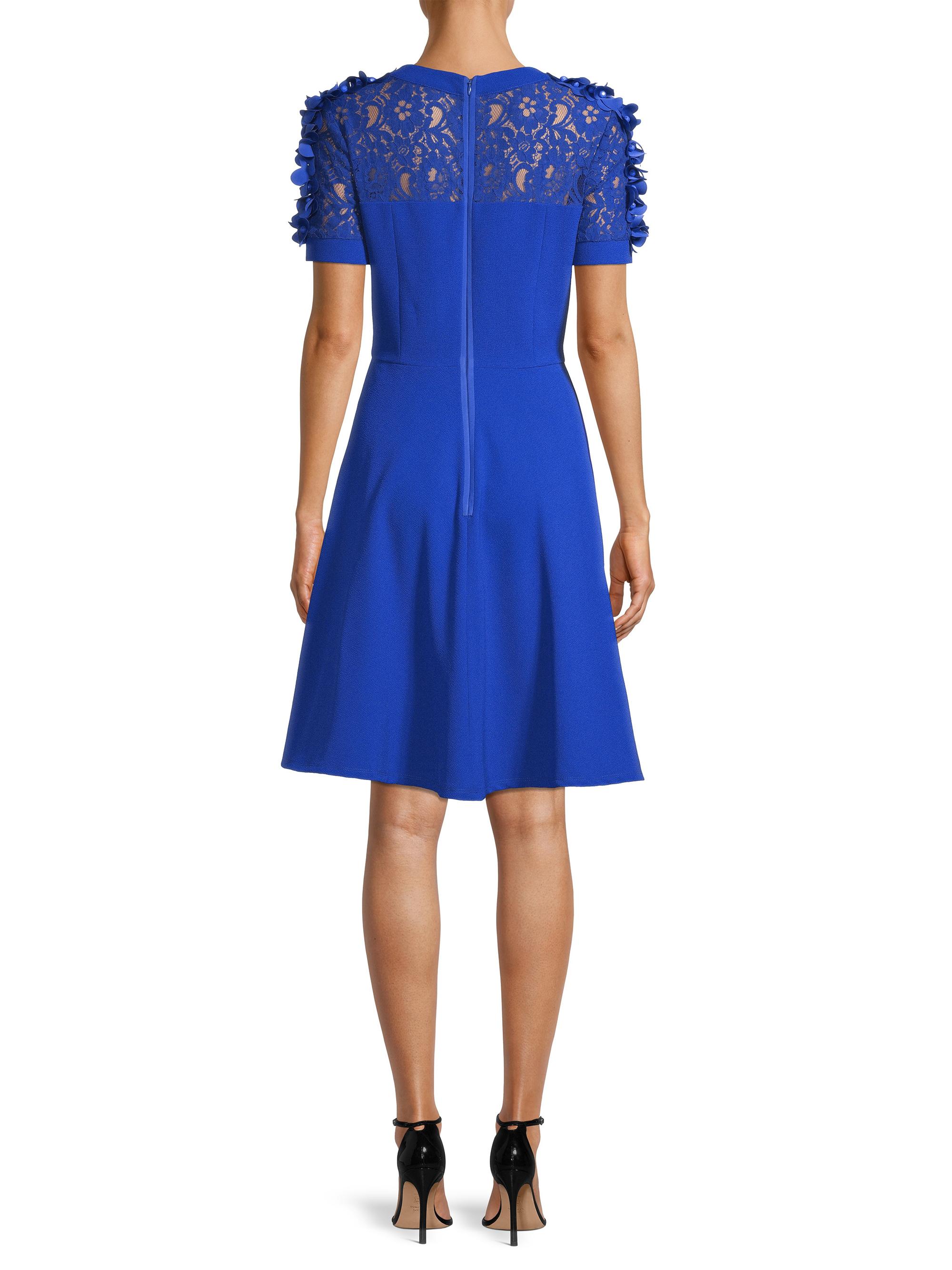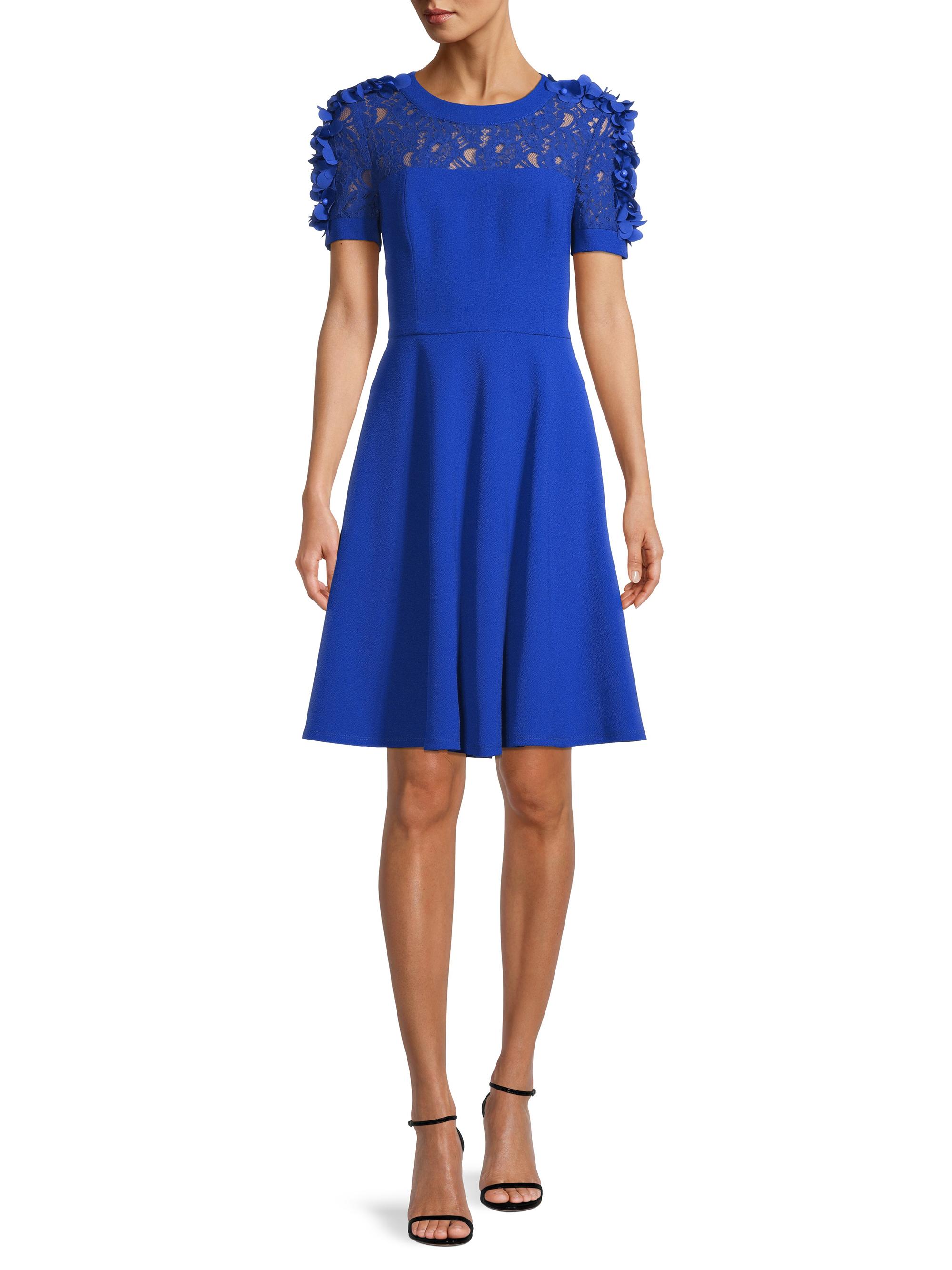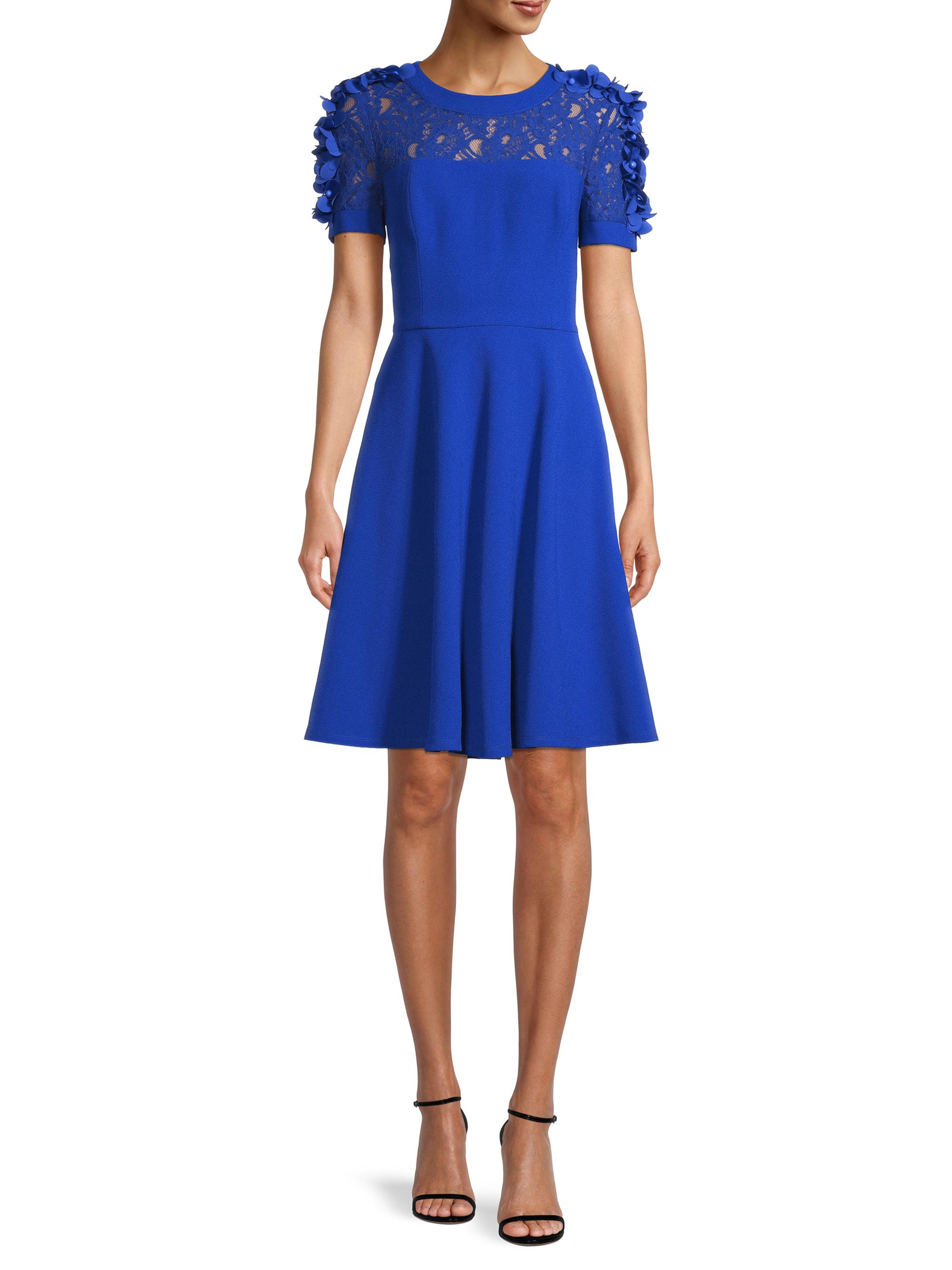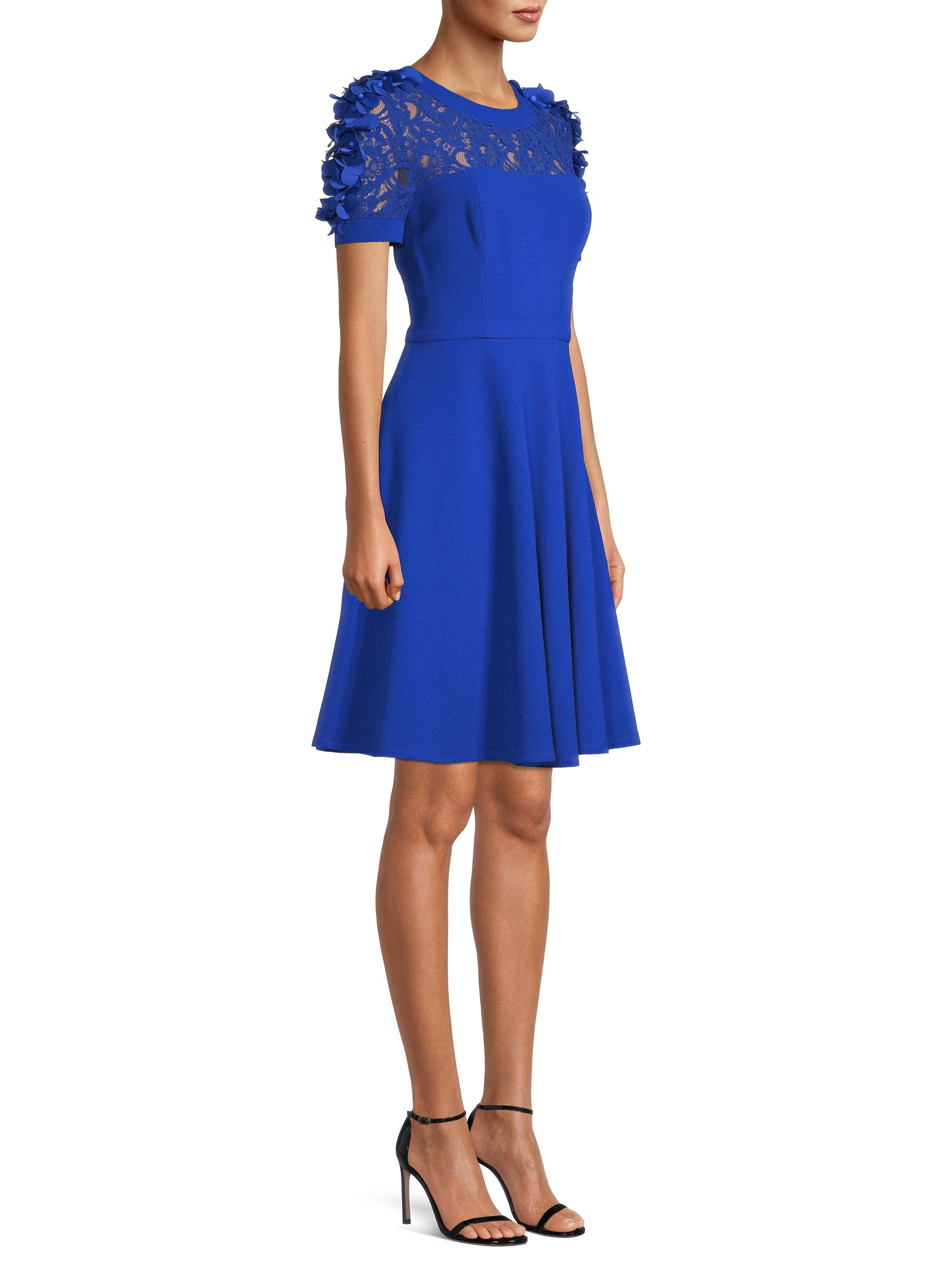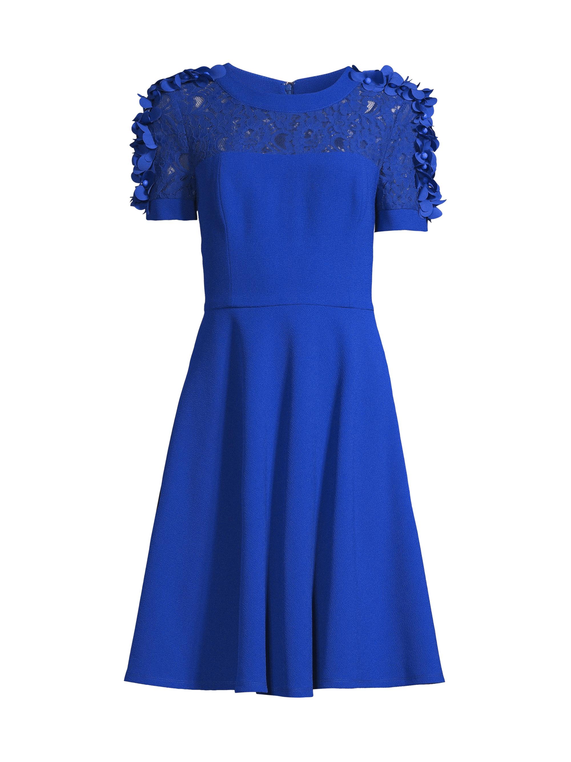 Shani Floral Applique Fit-&-Flare Crepe Dress BLUE