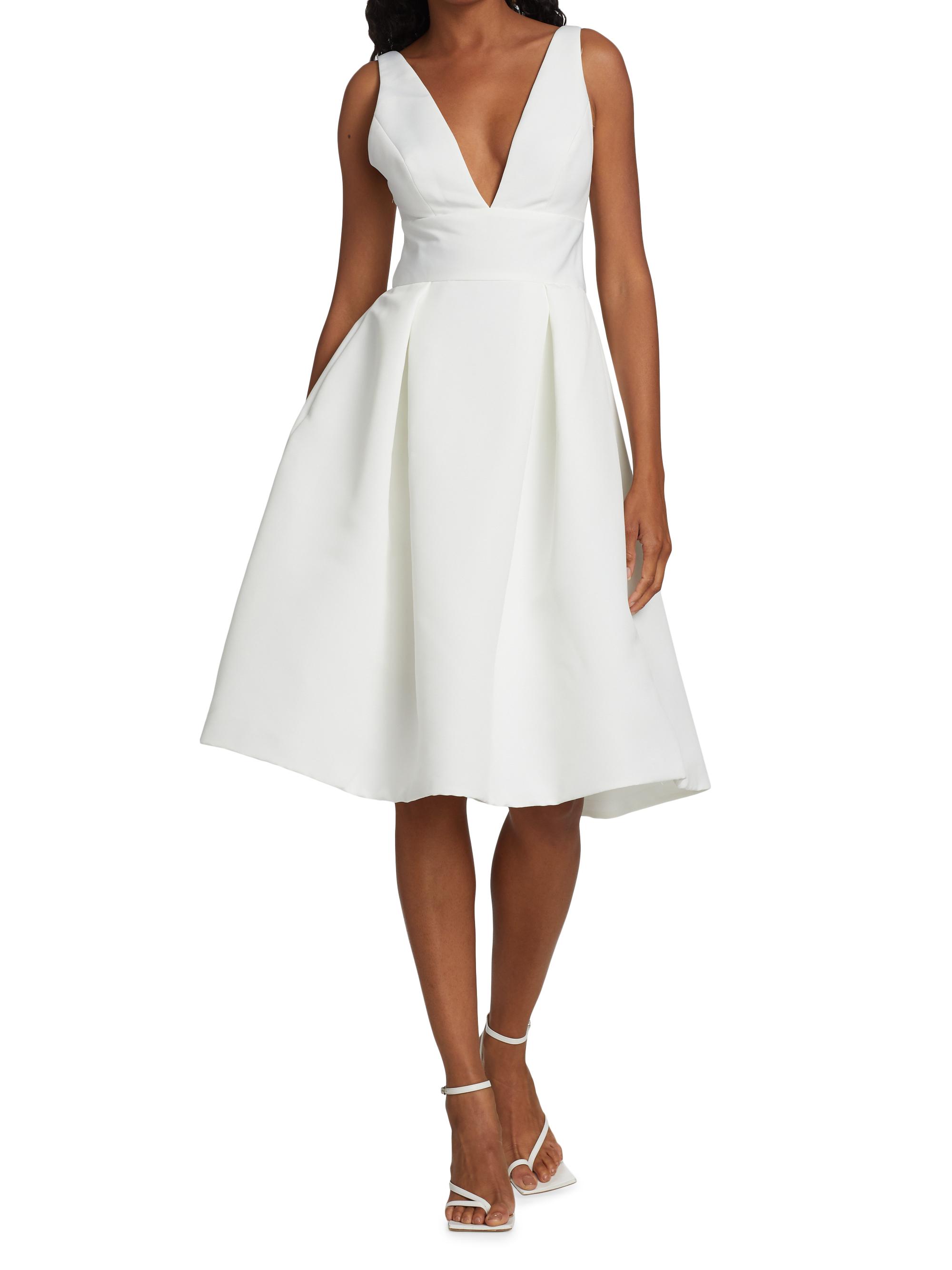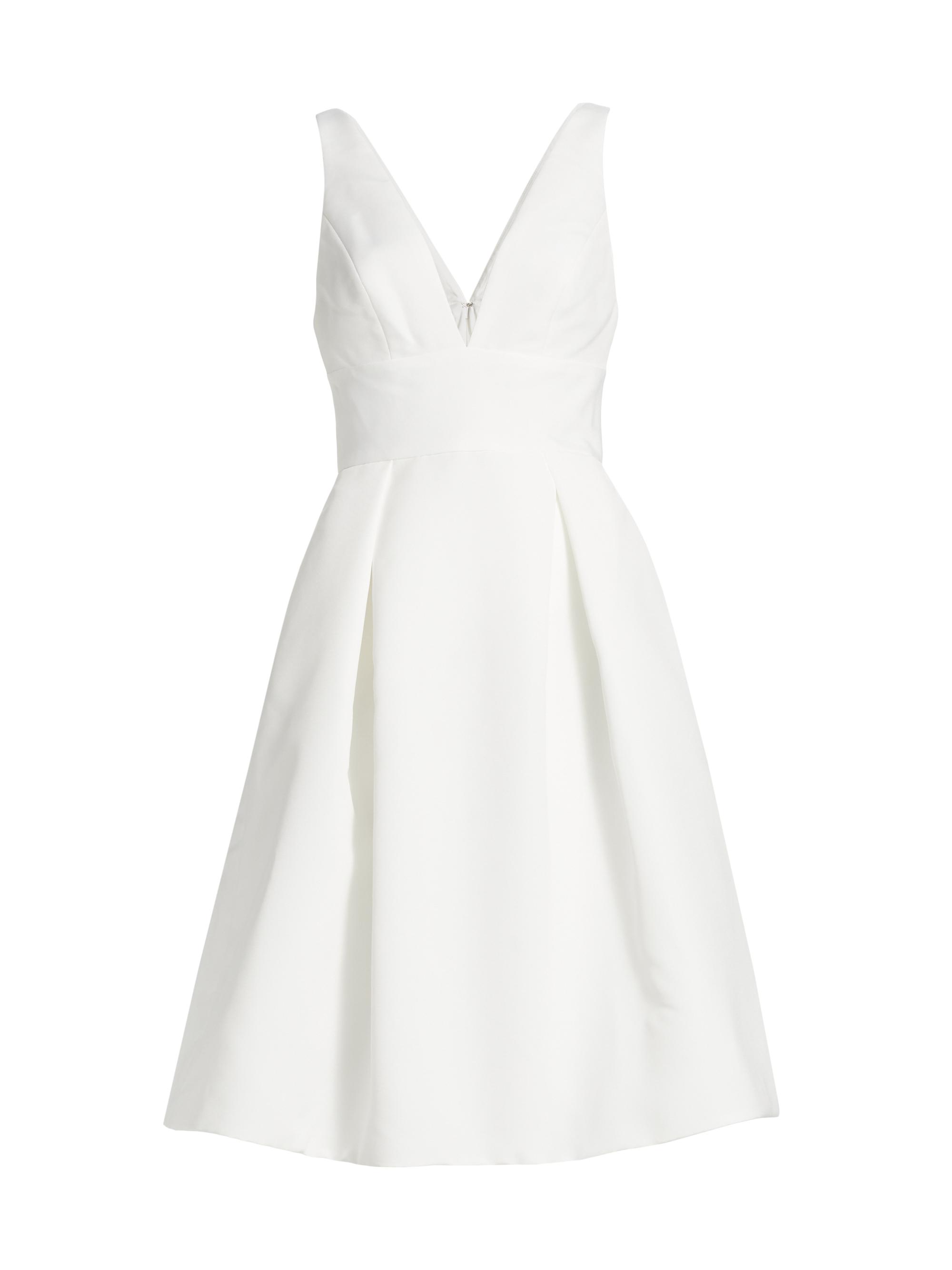 Amsale Faille Deep V-Neck Dress SILK WHITE