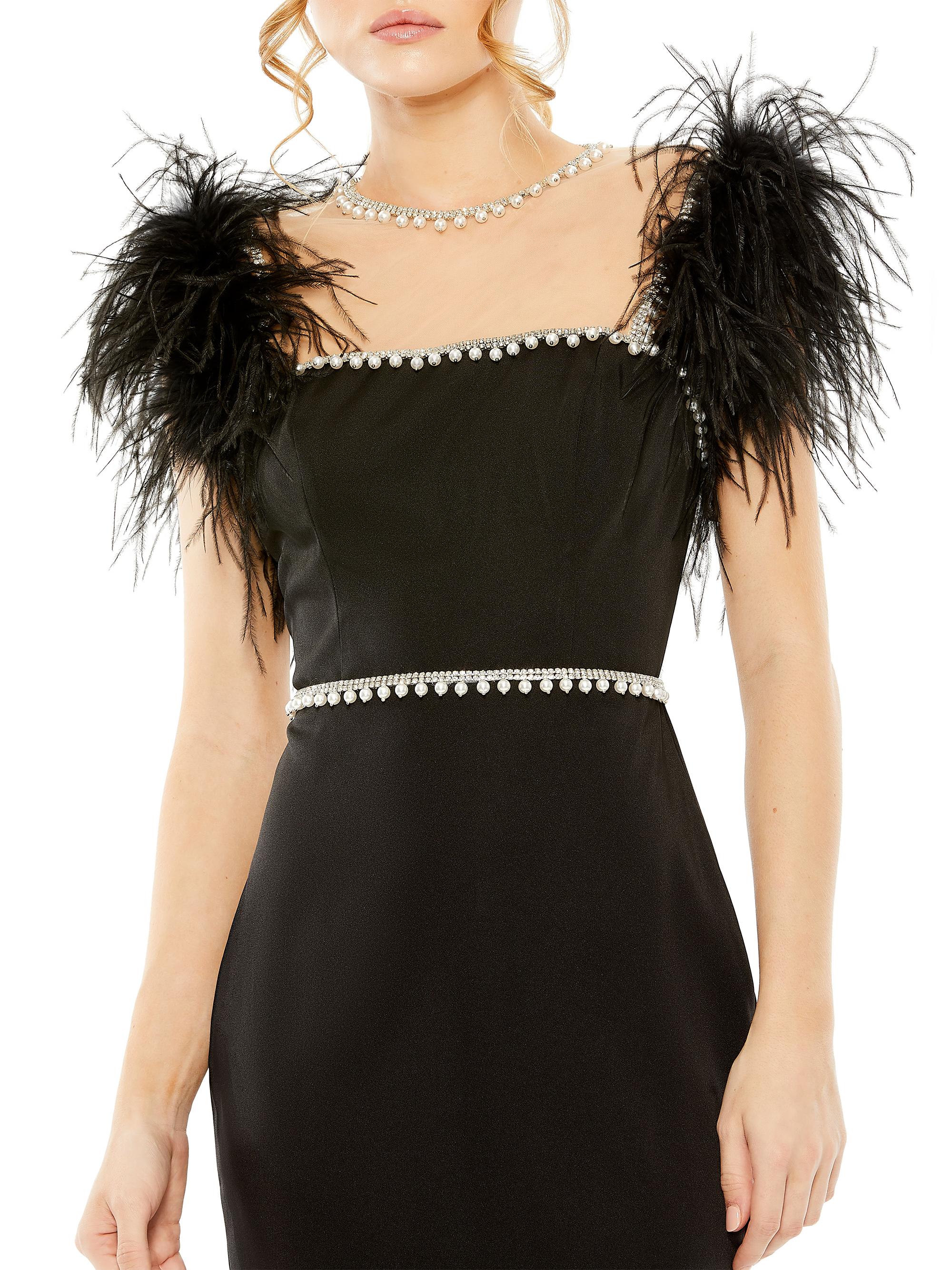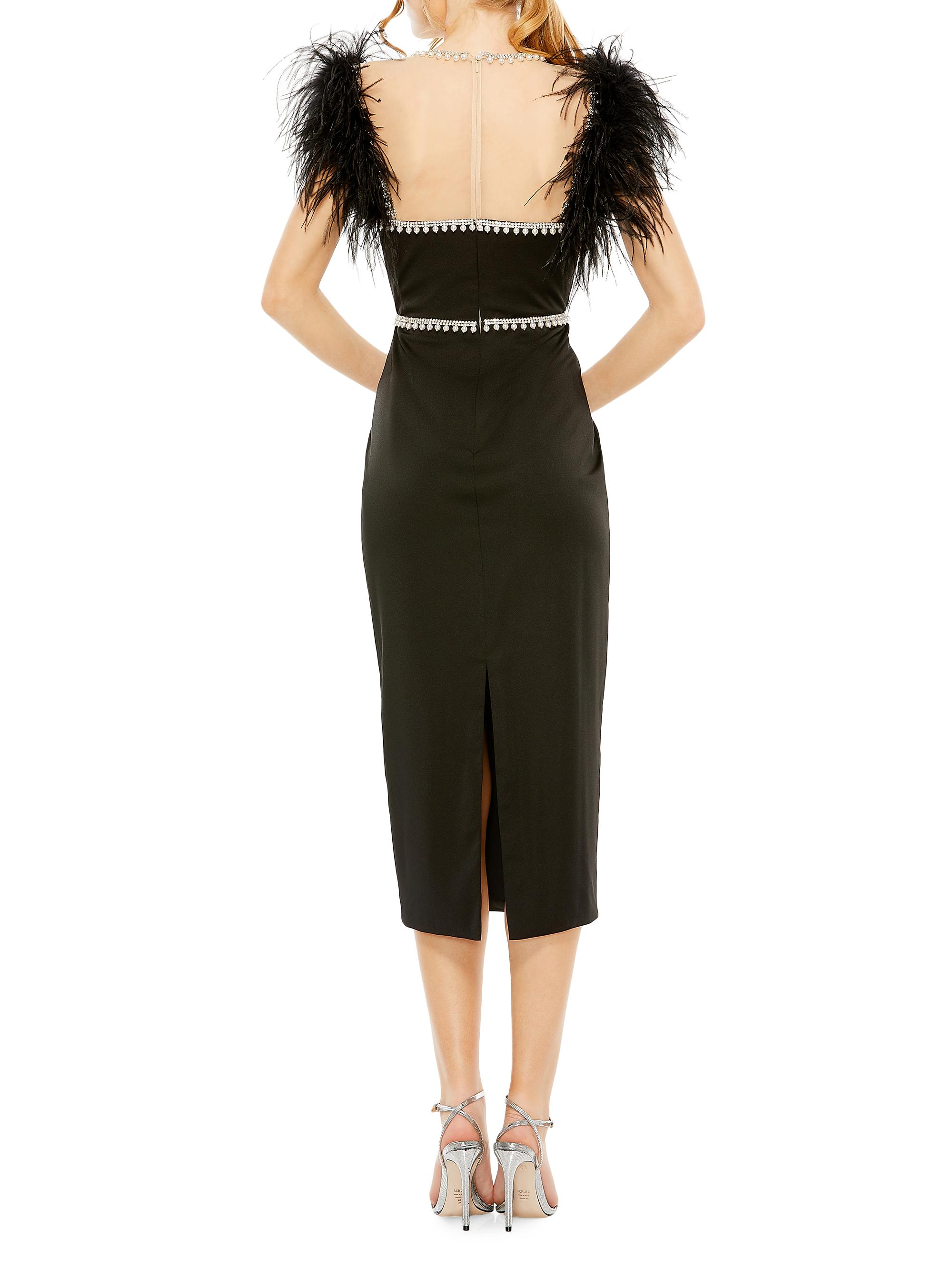 Mac Duggal Feather & Pearl-Embellished Midi-Dress BLACK