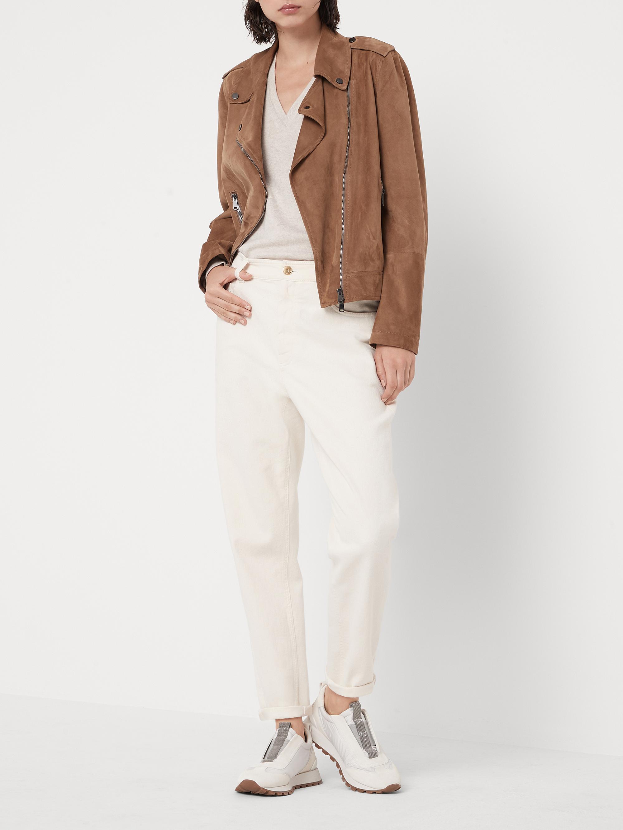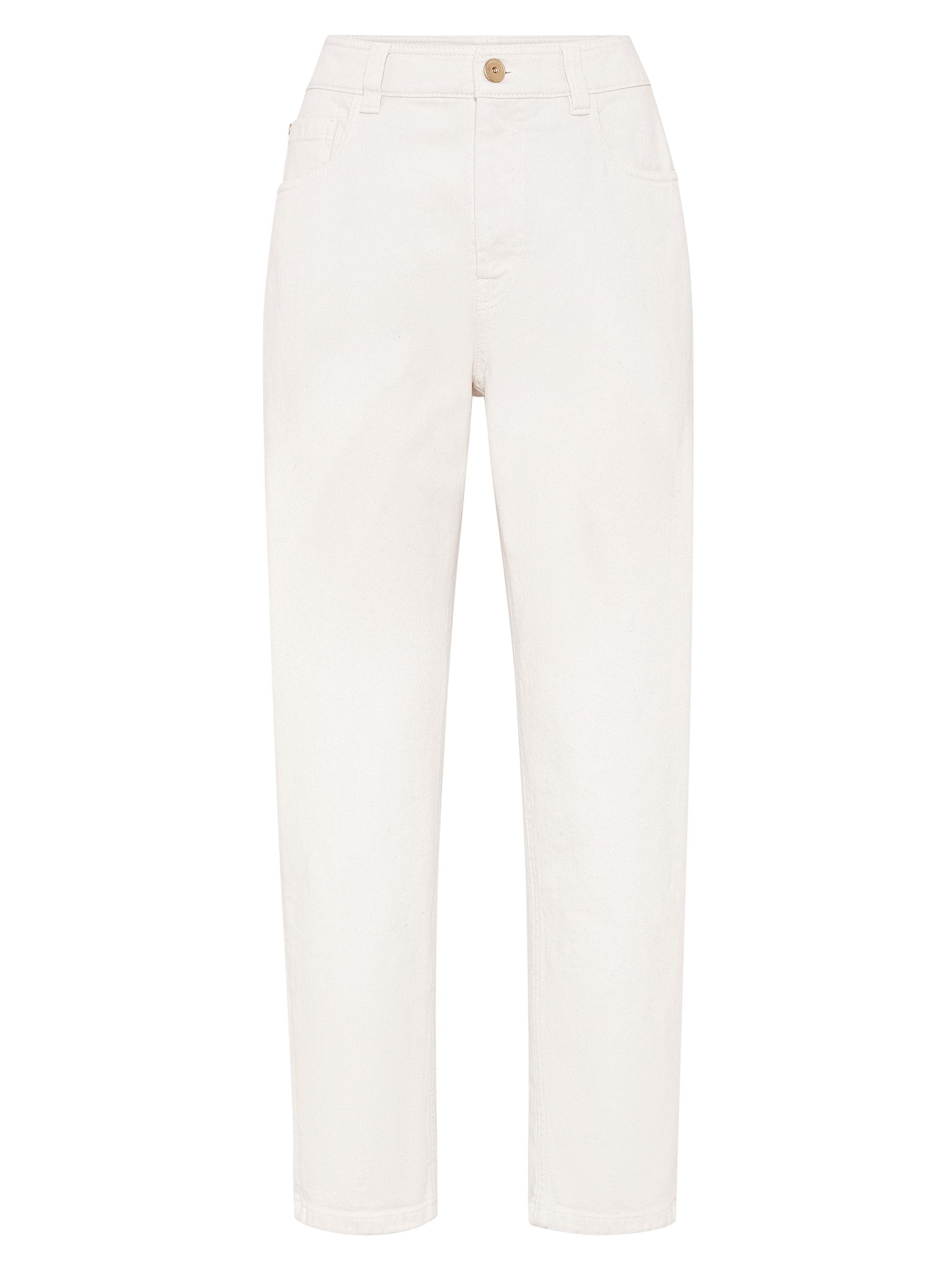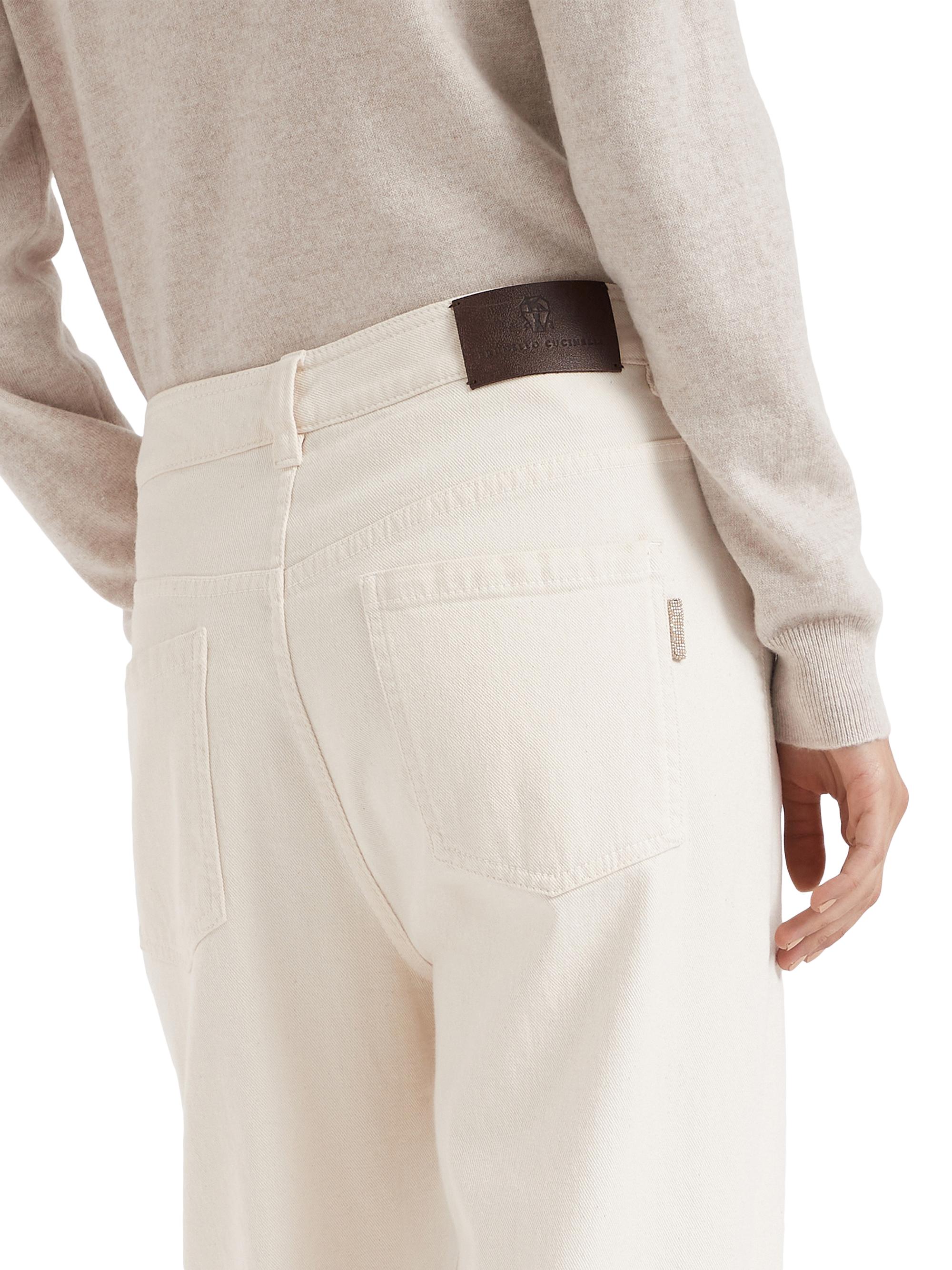 Brunello Cucinelli Garment Dyed Comfort Denim Baggy Jeans With Shiny Tab ECRU