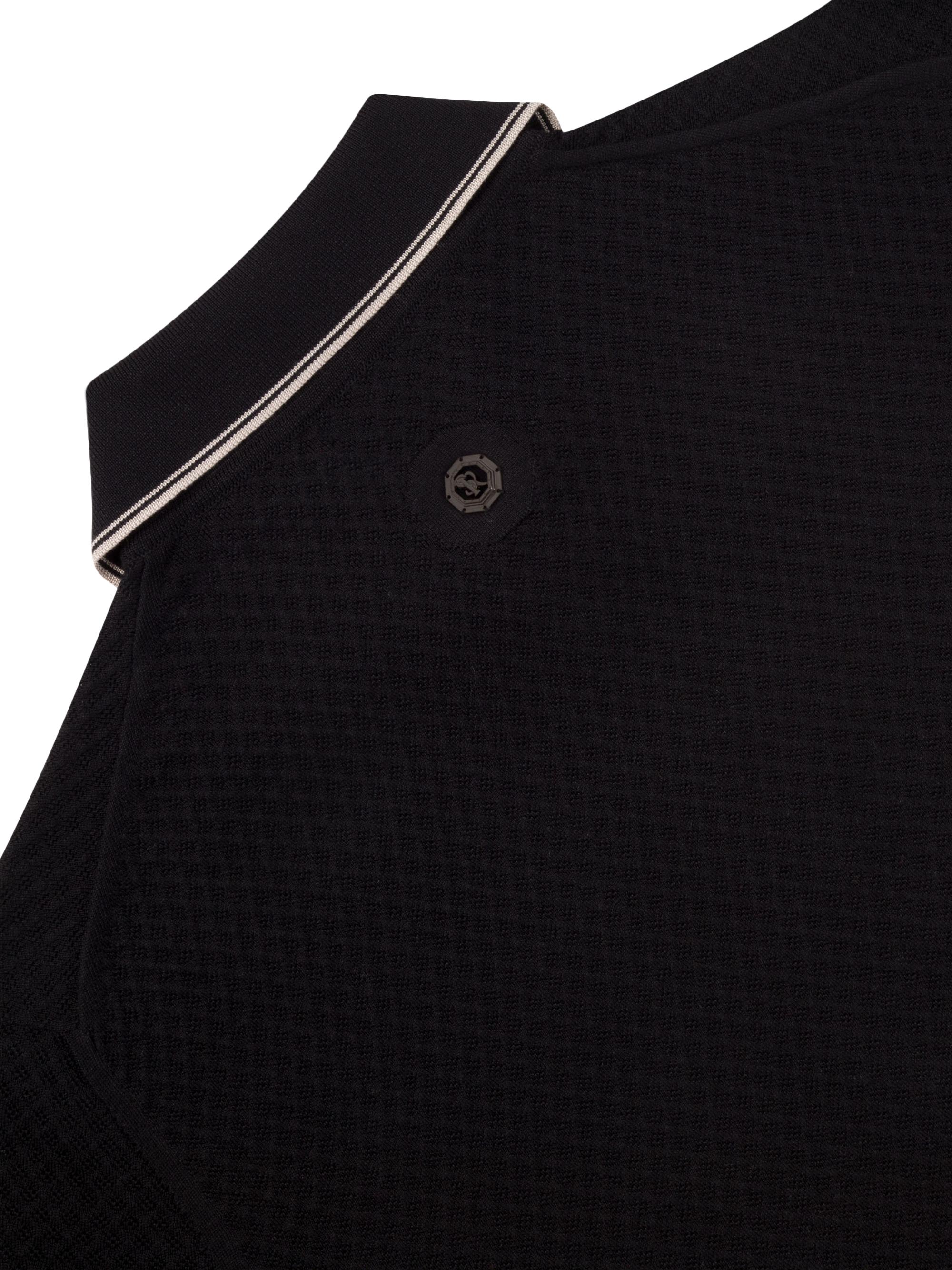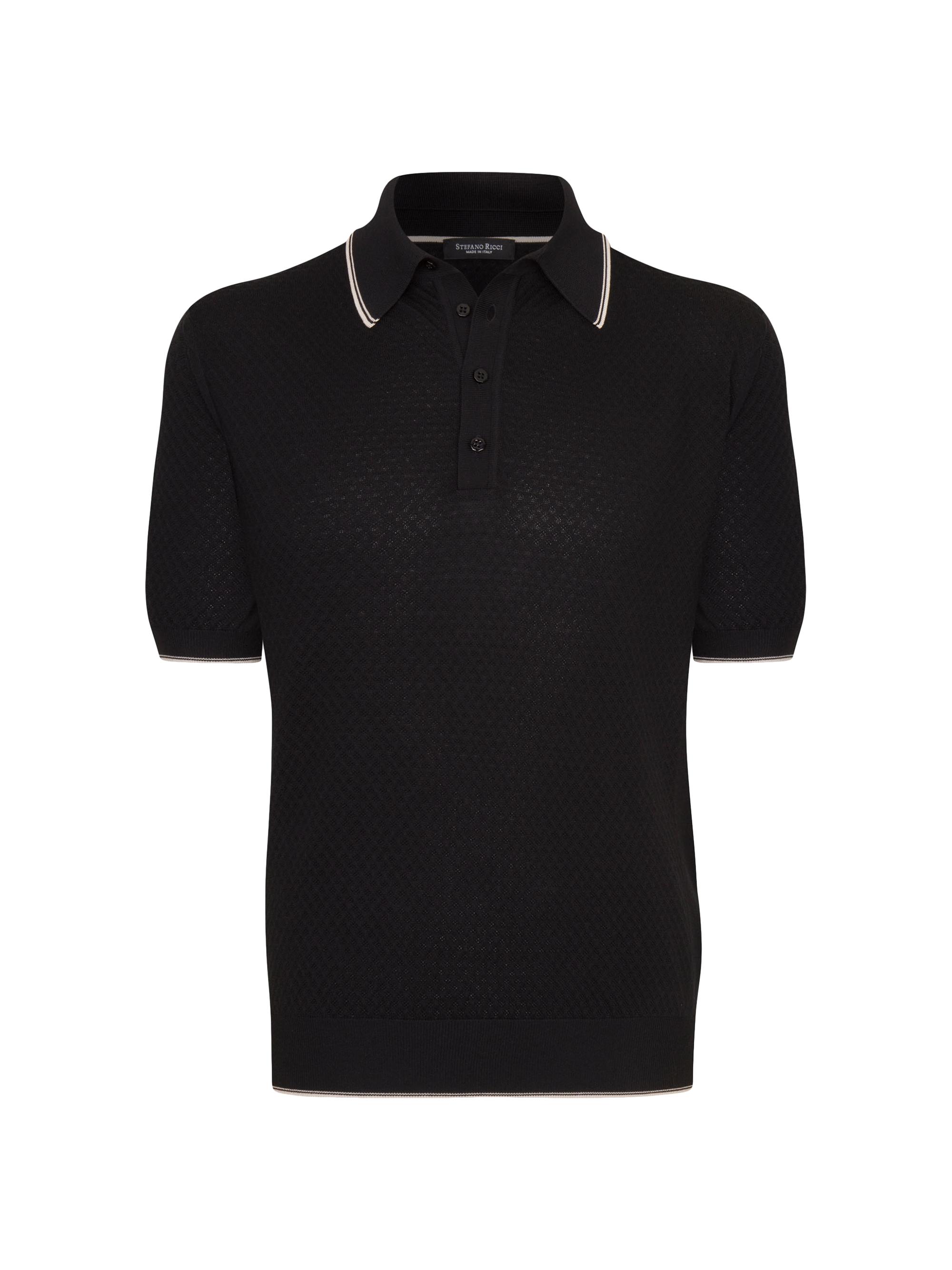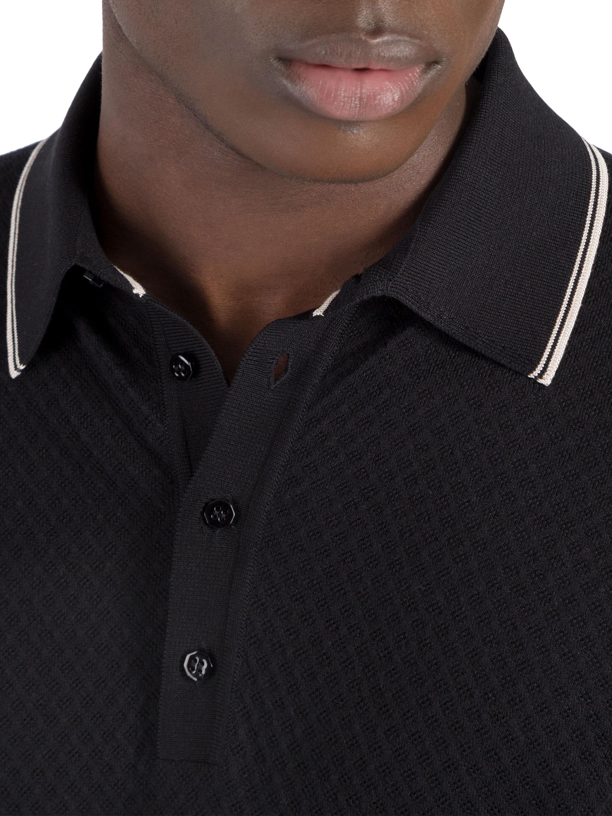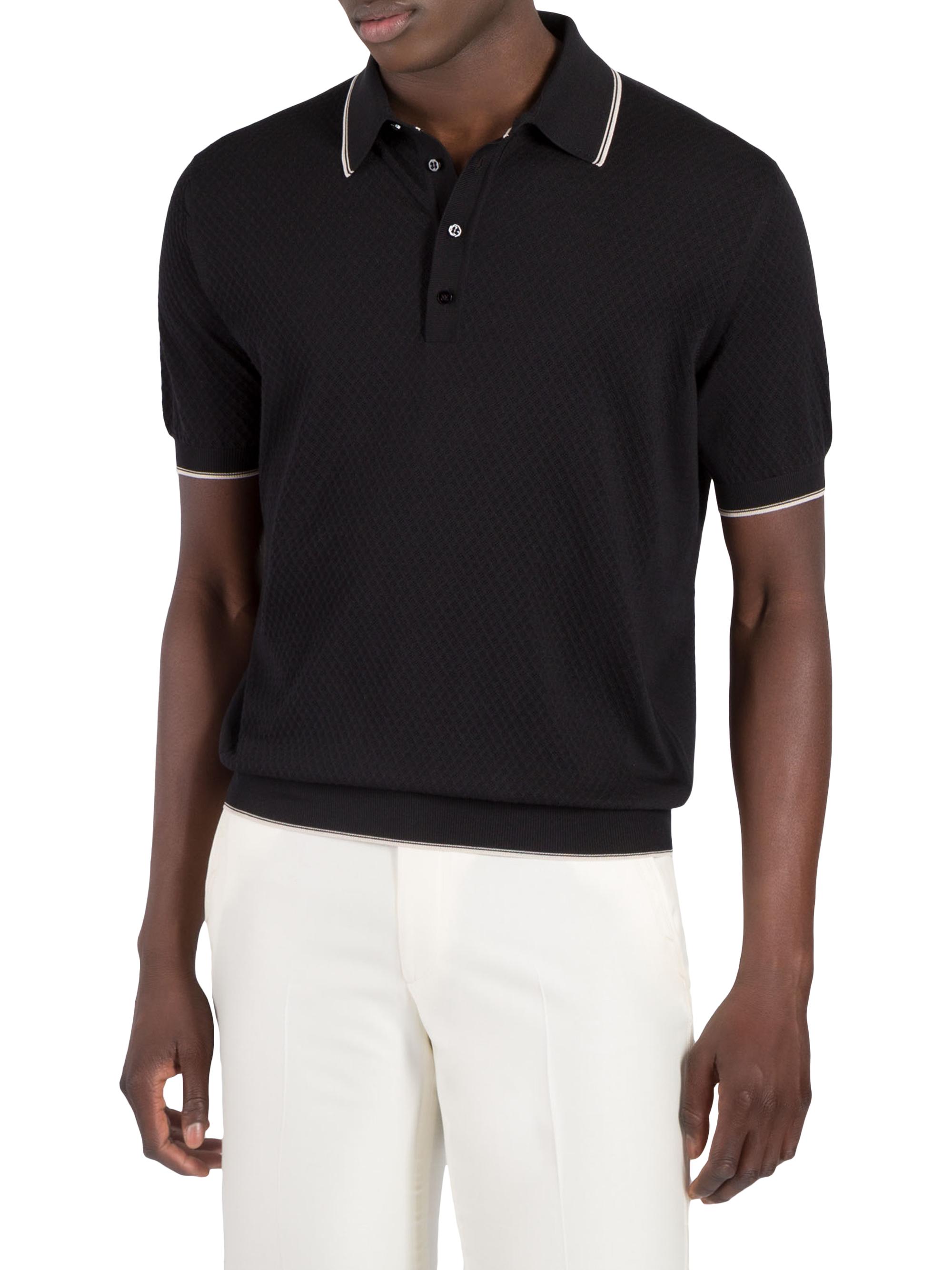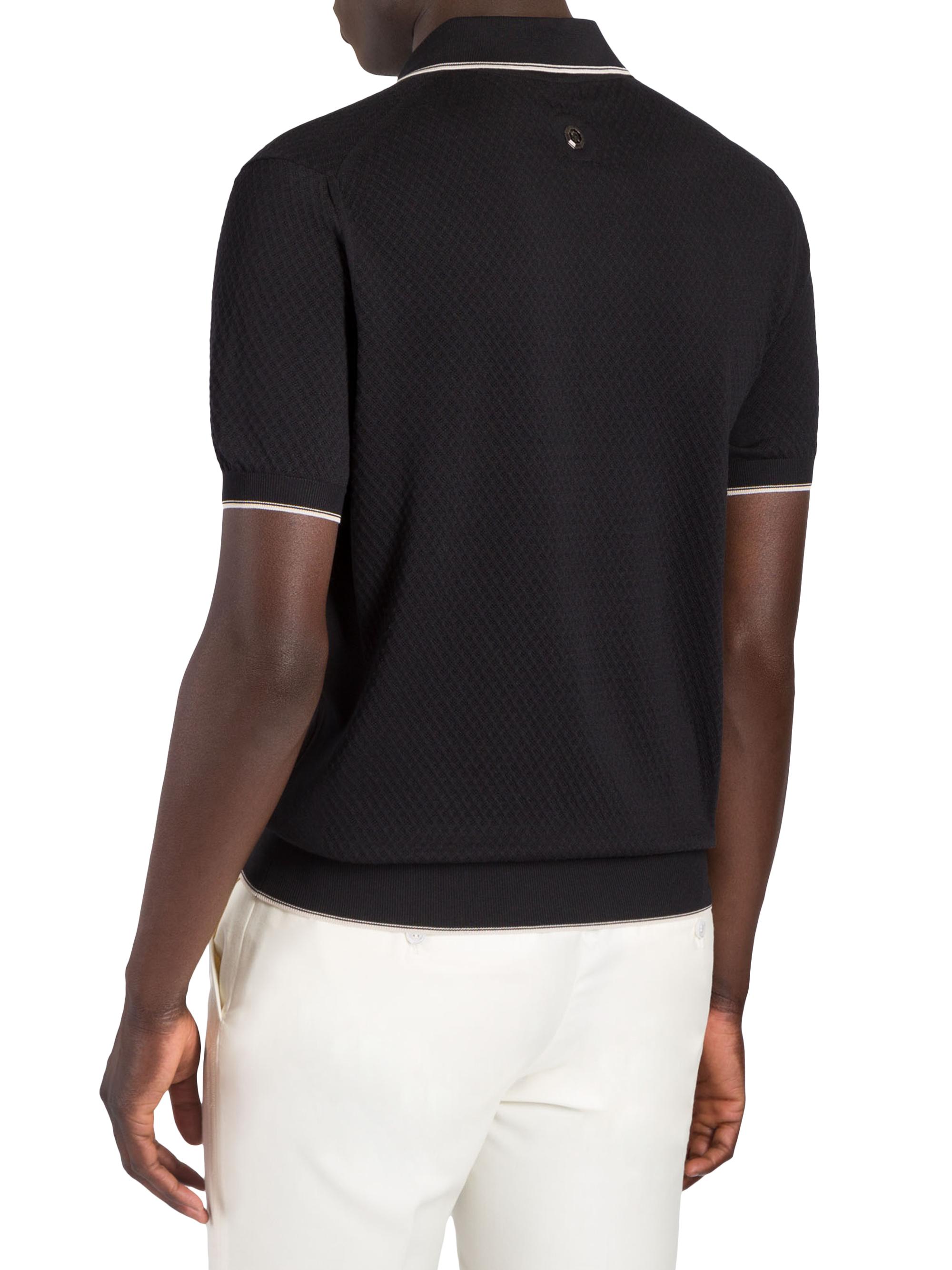 Stefano Ricci Knit Short Sleeve Four-Button Polo Shirt BLACK