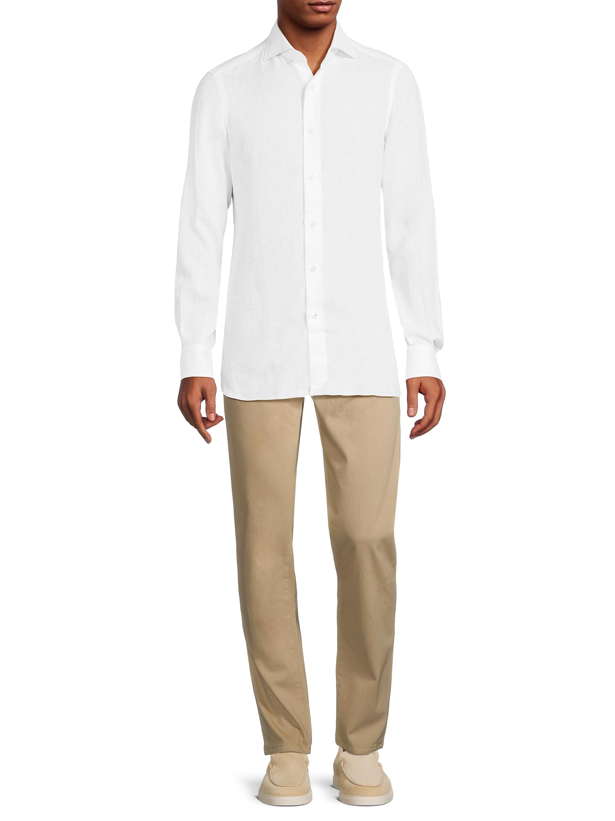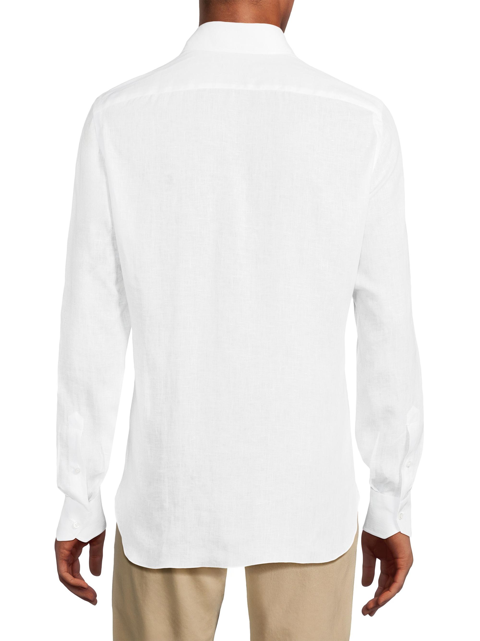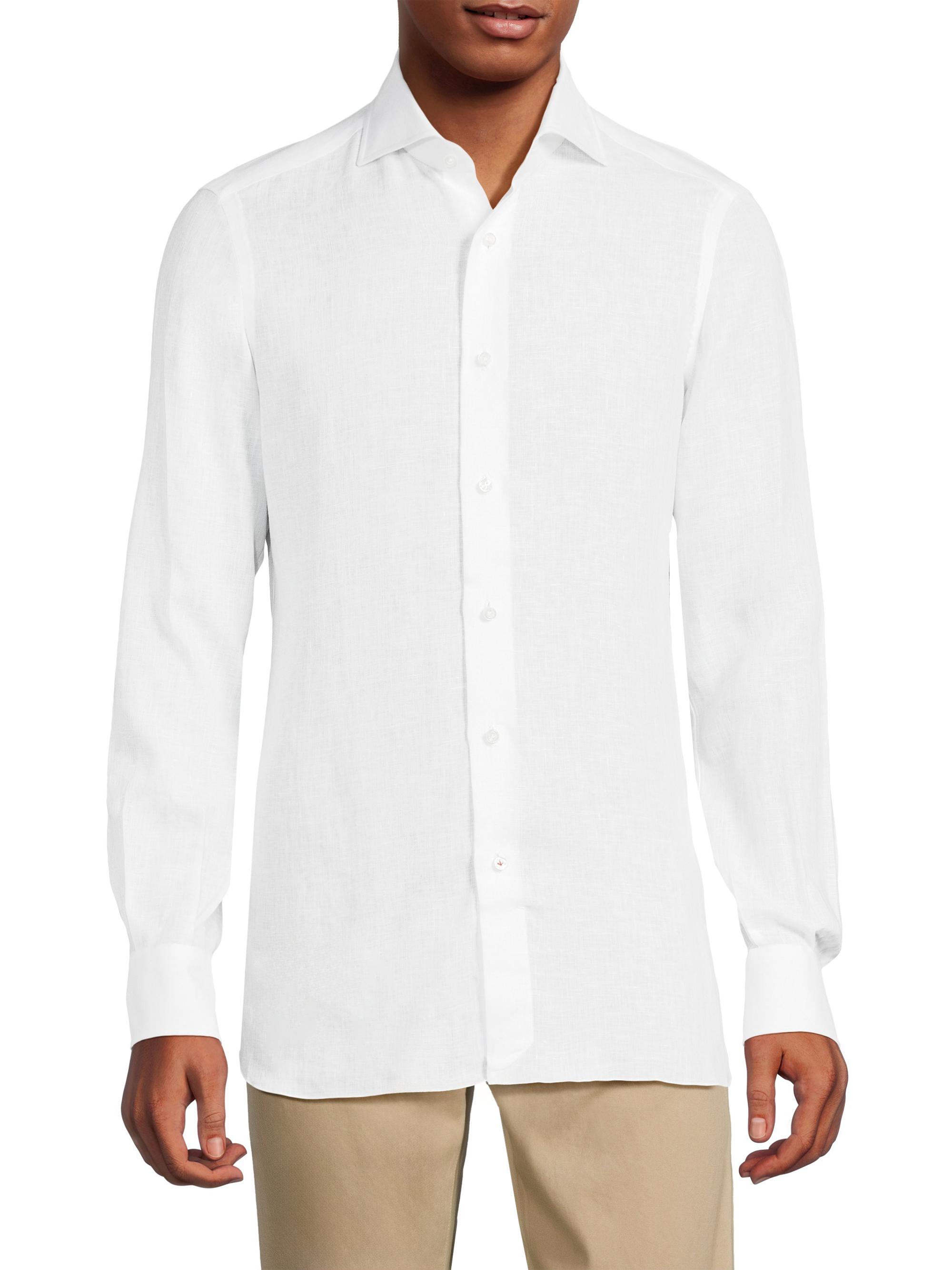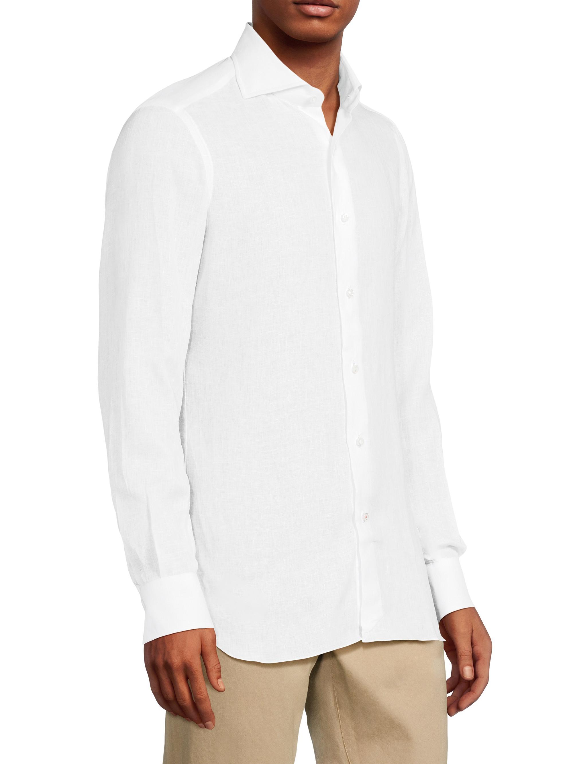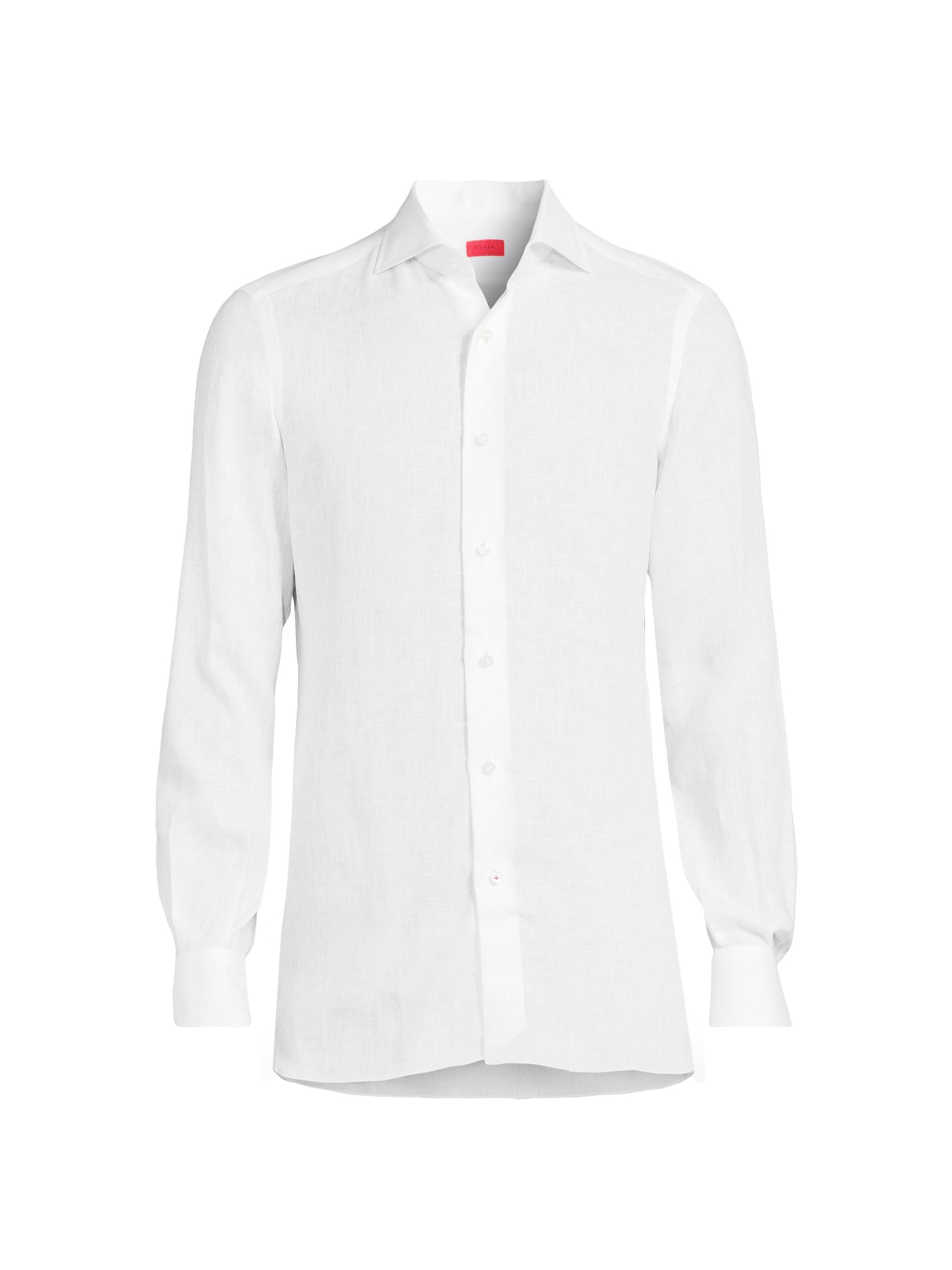 Isaia Superlino Linen Button-Up Shirt WHITE