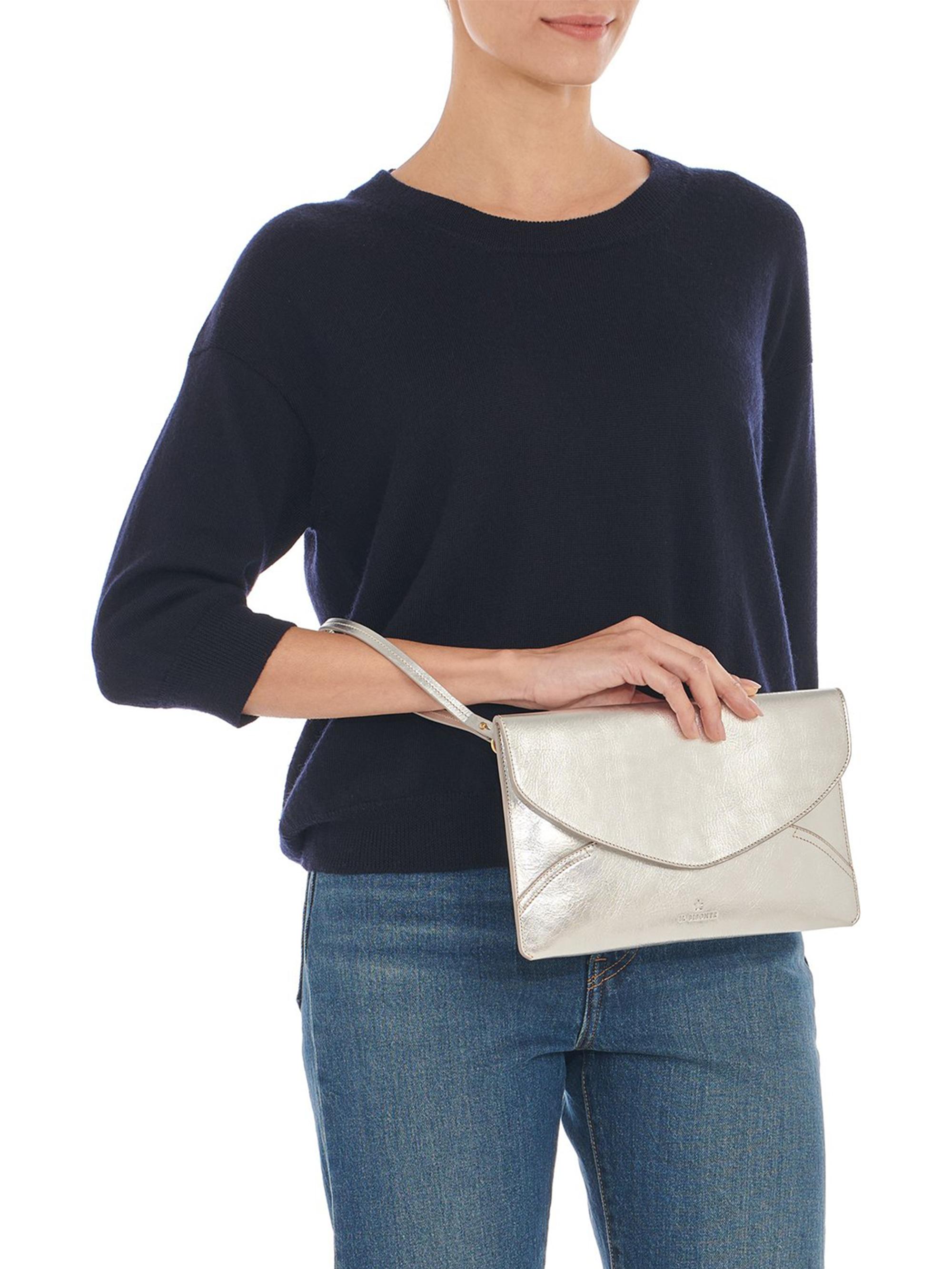 Il Bisonte Esperia Medium Leather Clutch SILVER