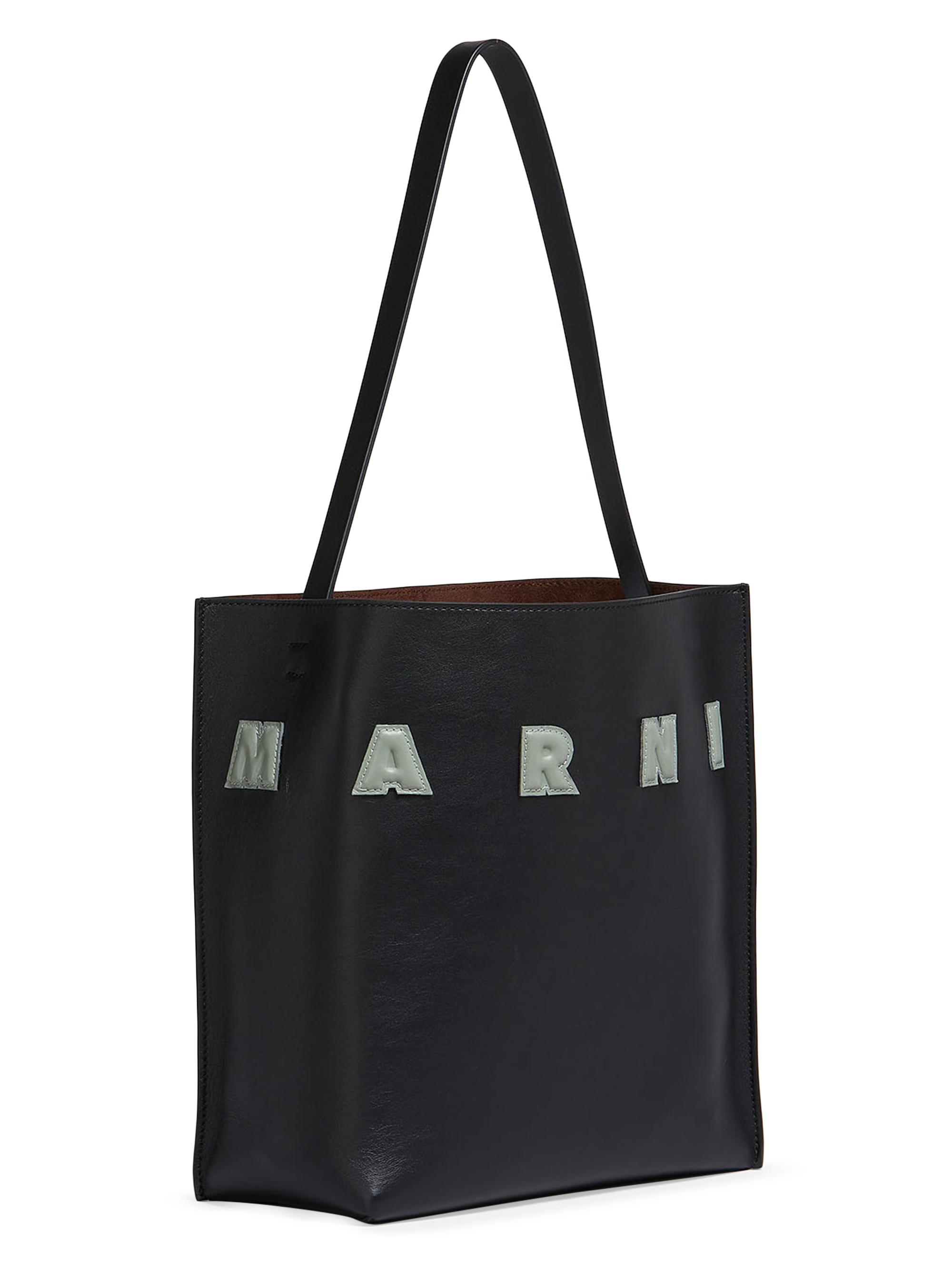 Marni Museo Logo Small Leather Hobo Bag BLACK