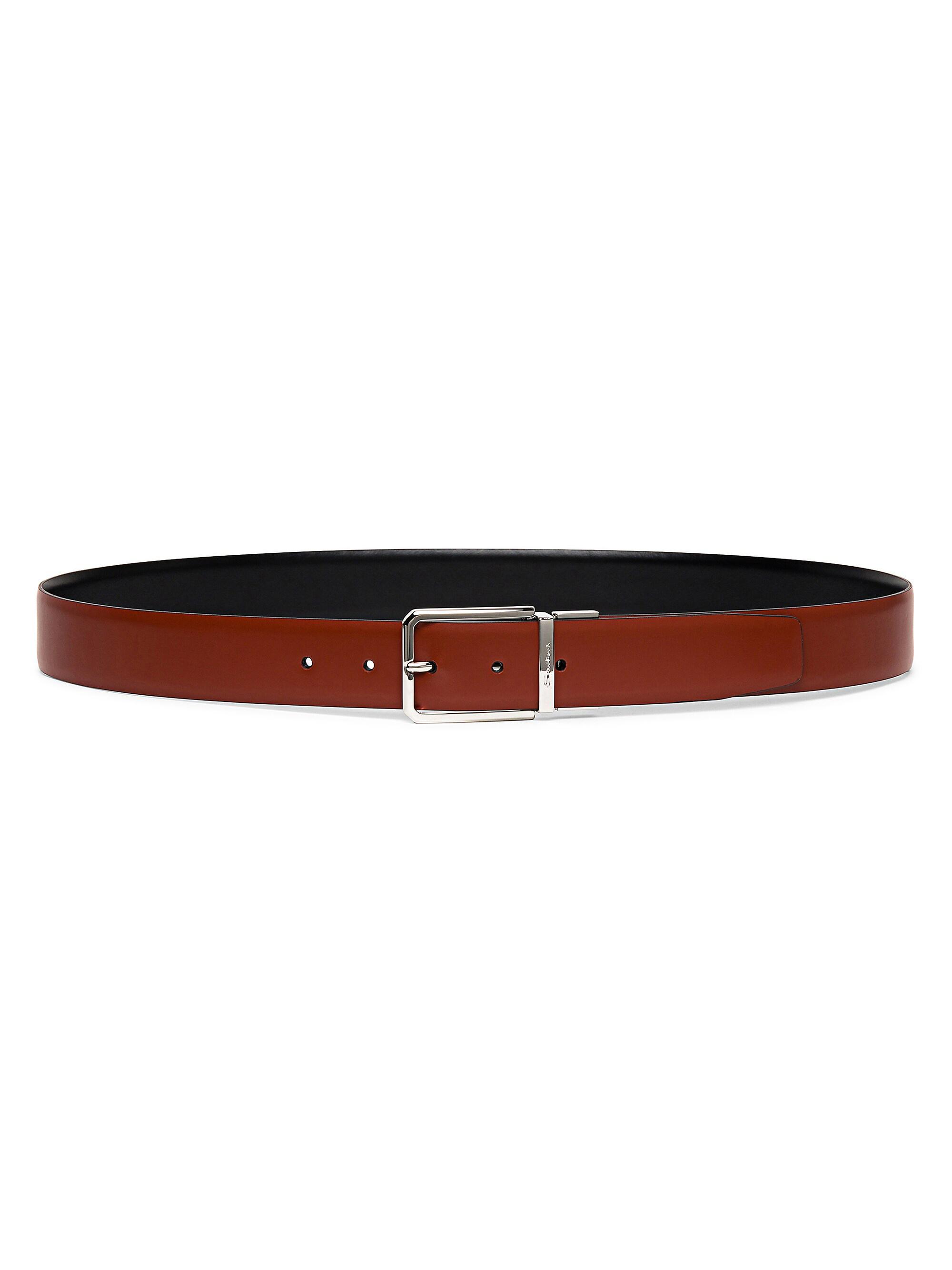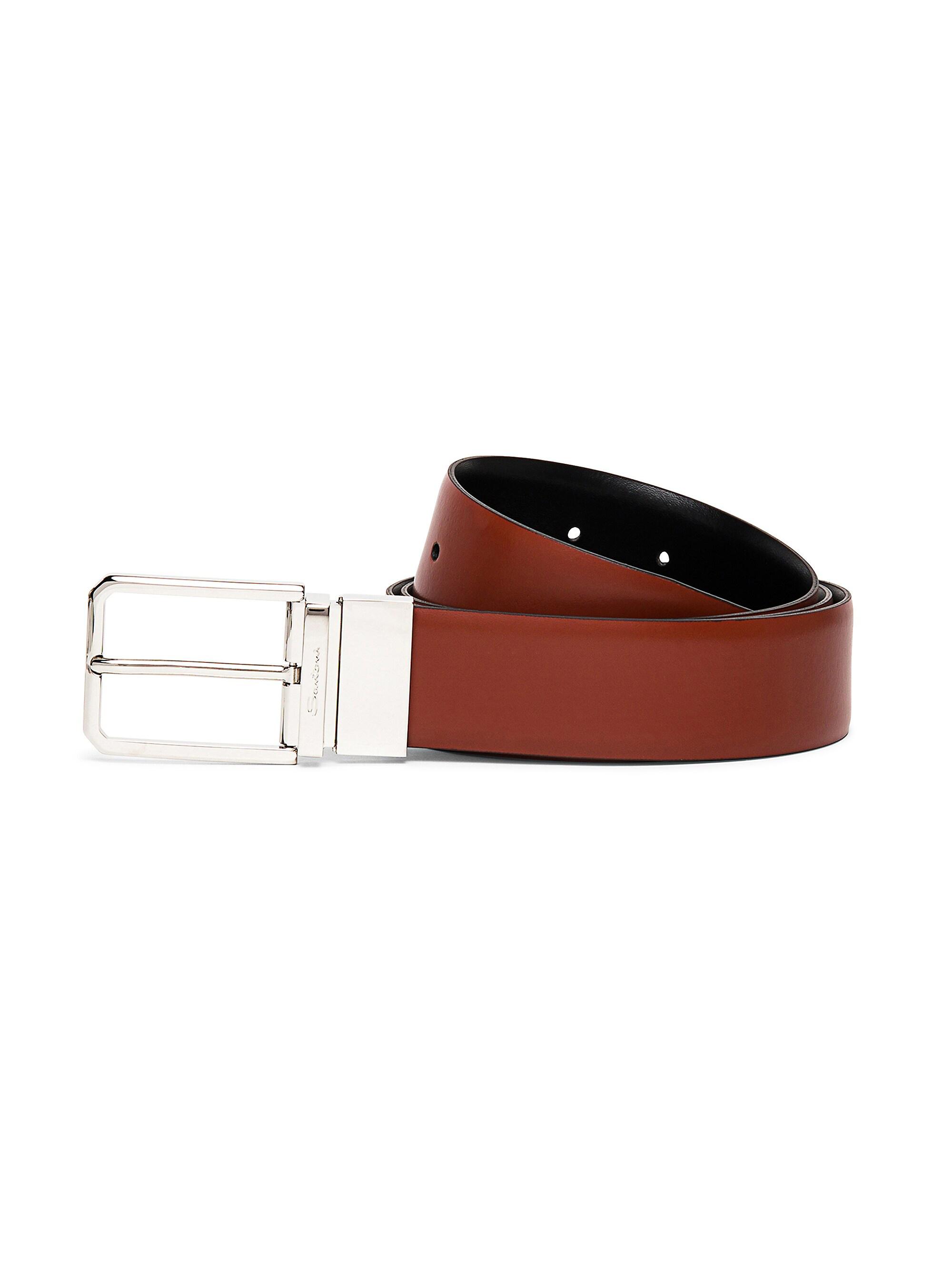 Santoni Reversible Leather Dress Belt TAN