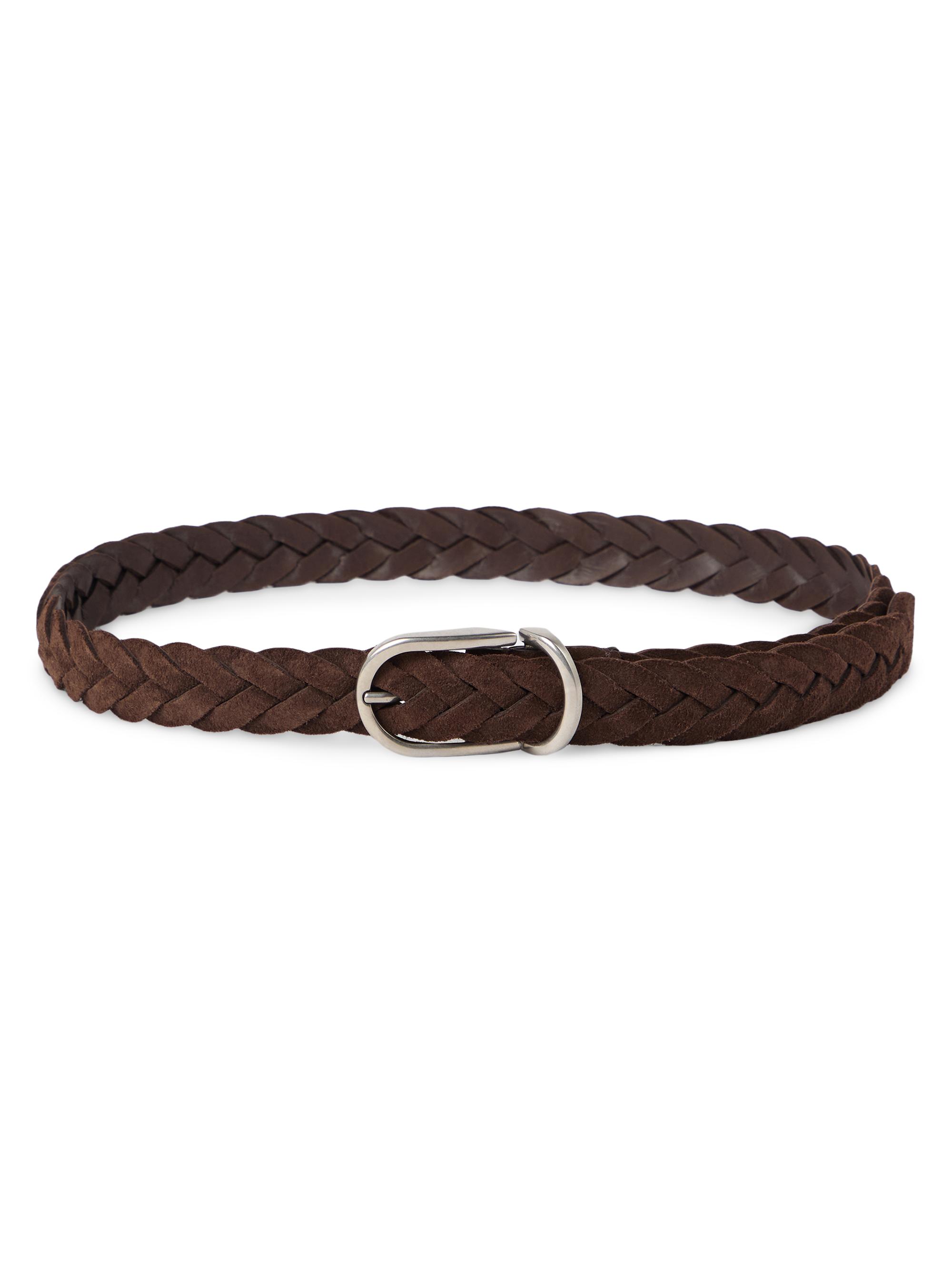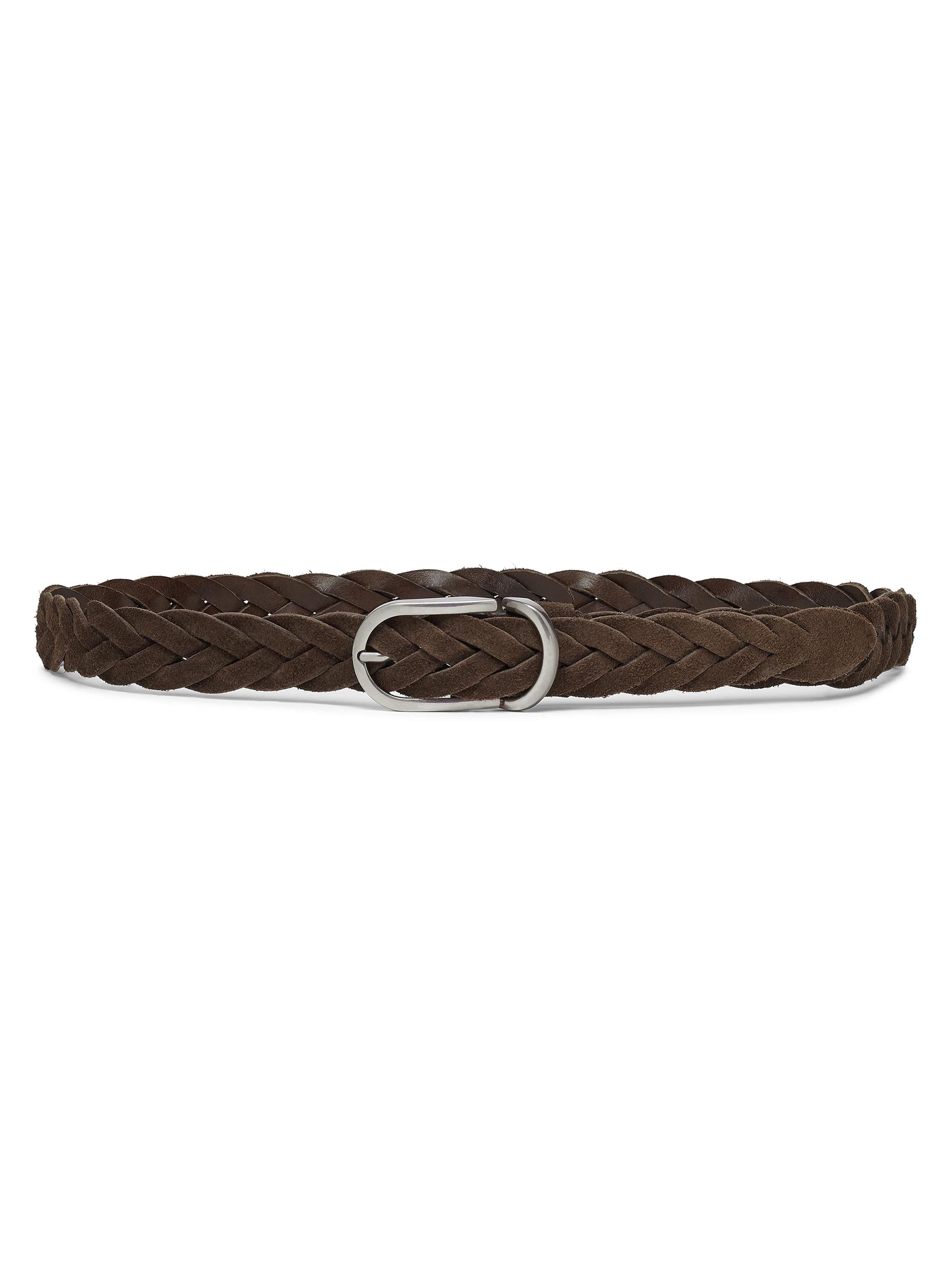 Brunello Cucinelli Braided Suede Calfskin Belt with Rounded Buckle