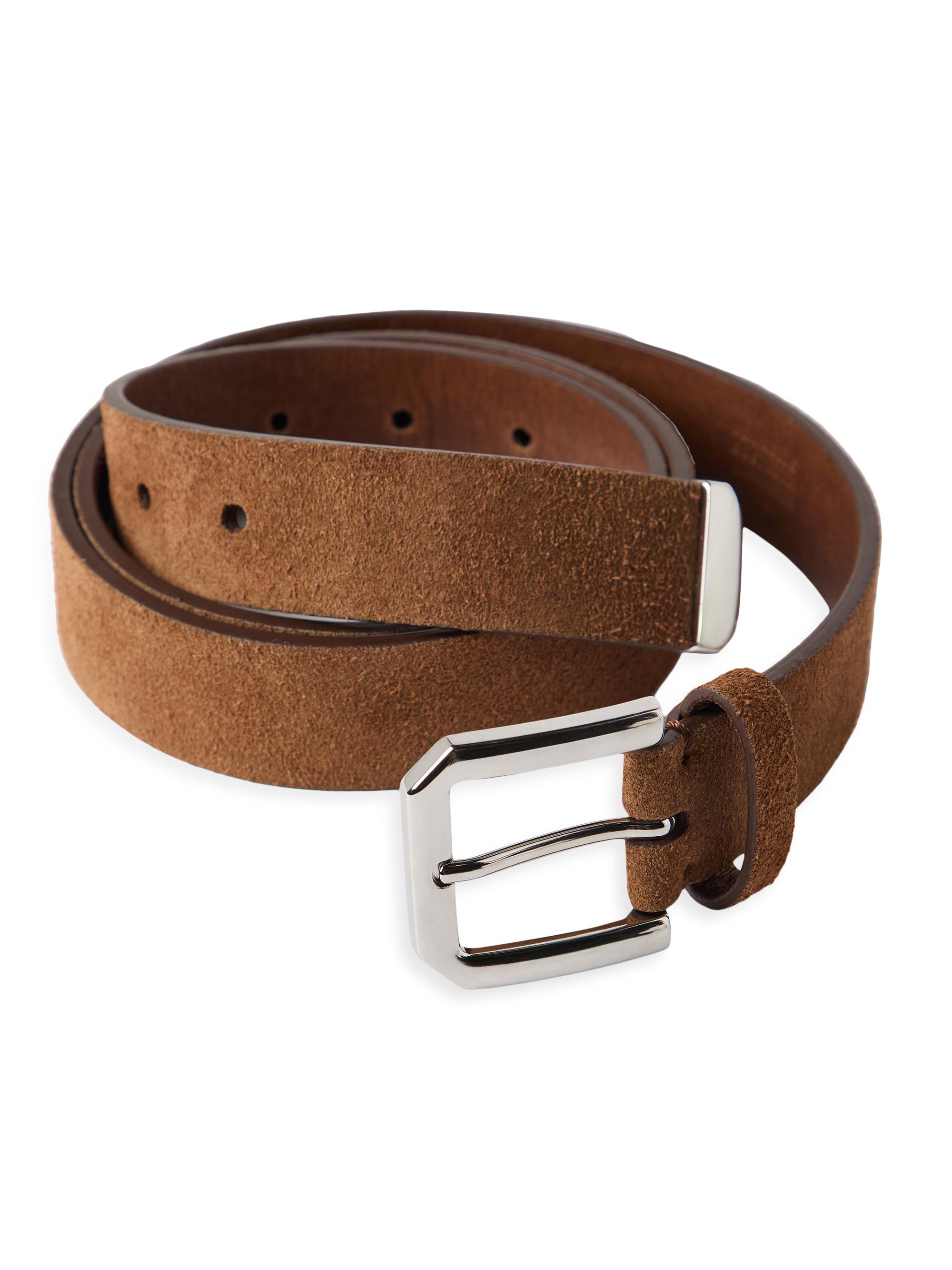 Brunello Cucinelli Reversed Leather Belt with Square Buckle and Tip