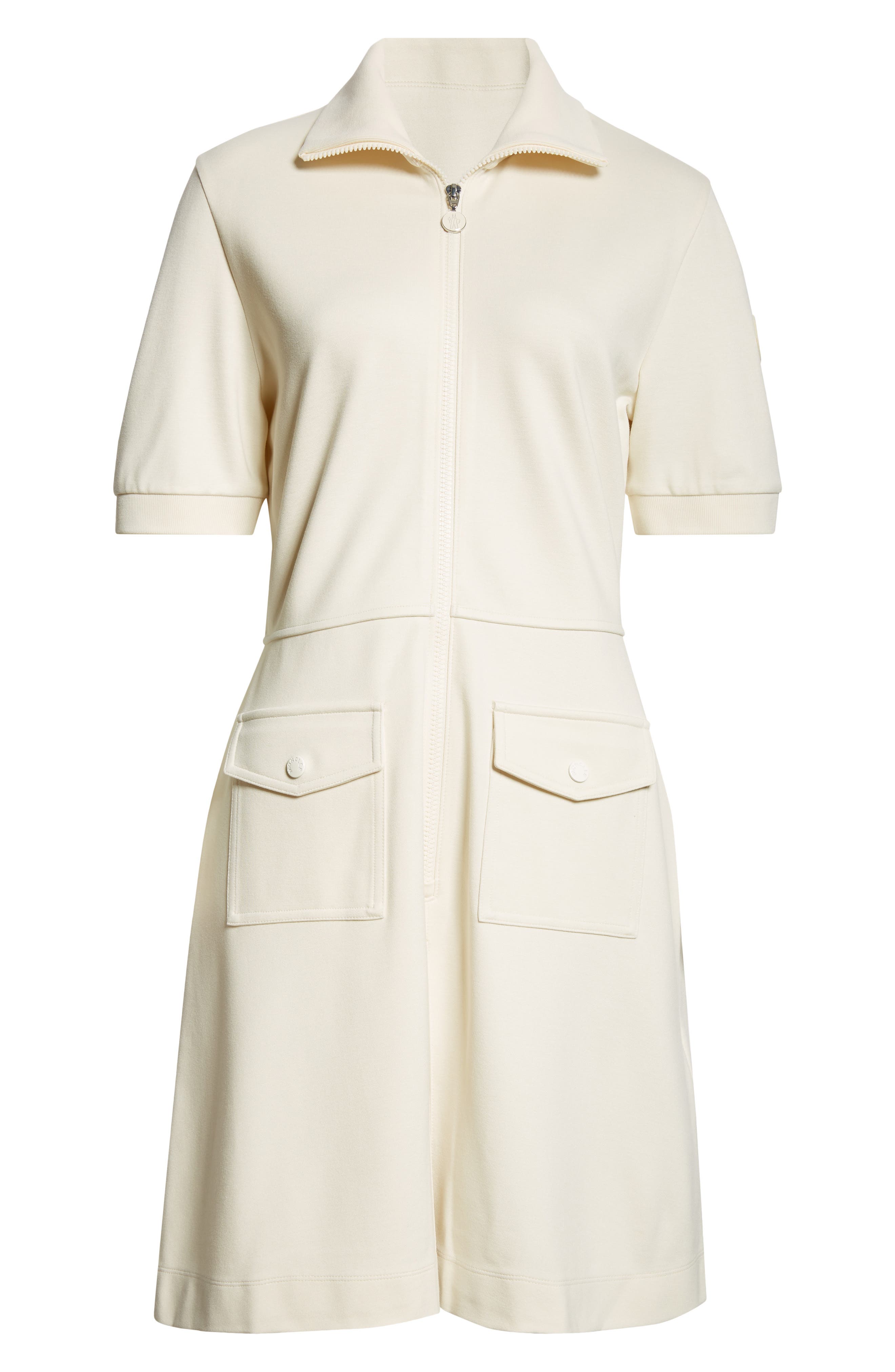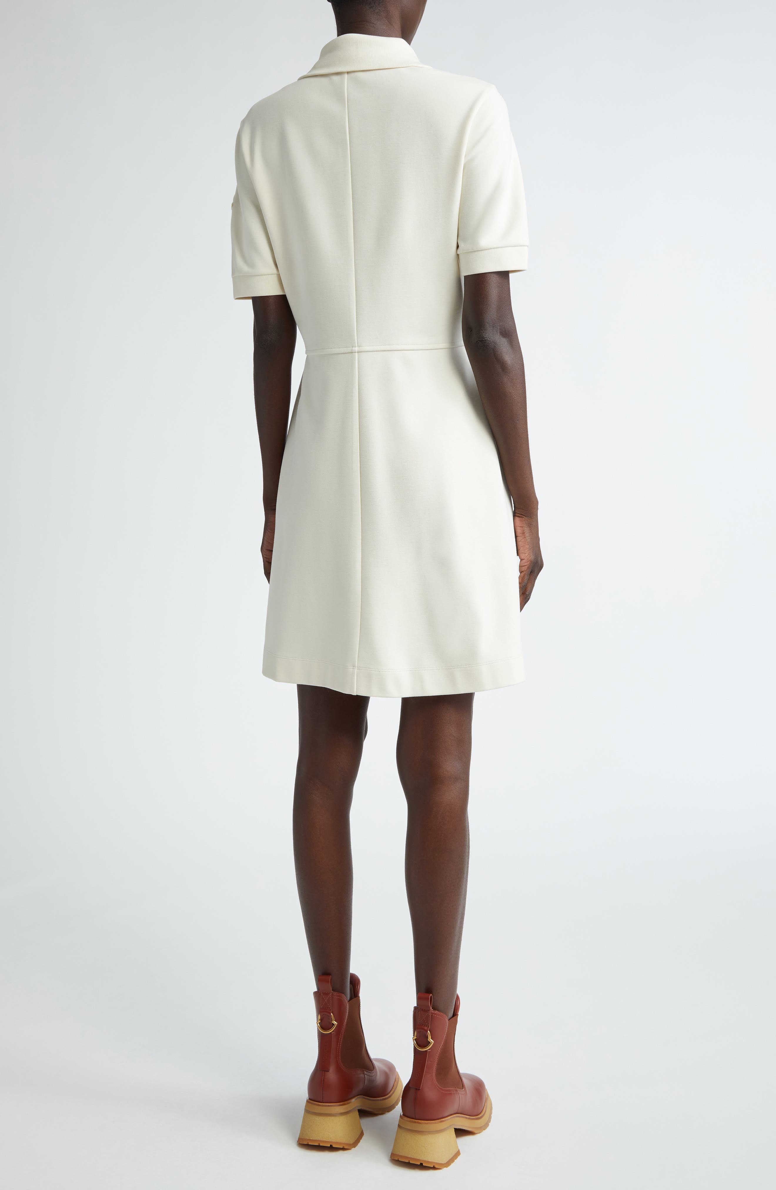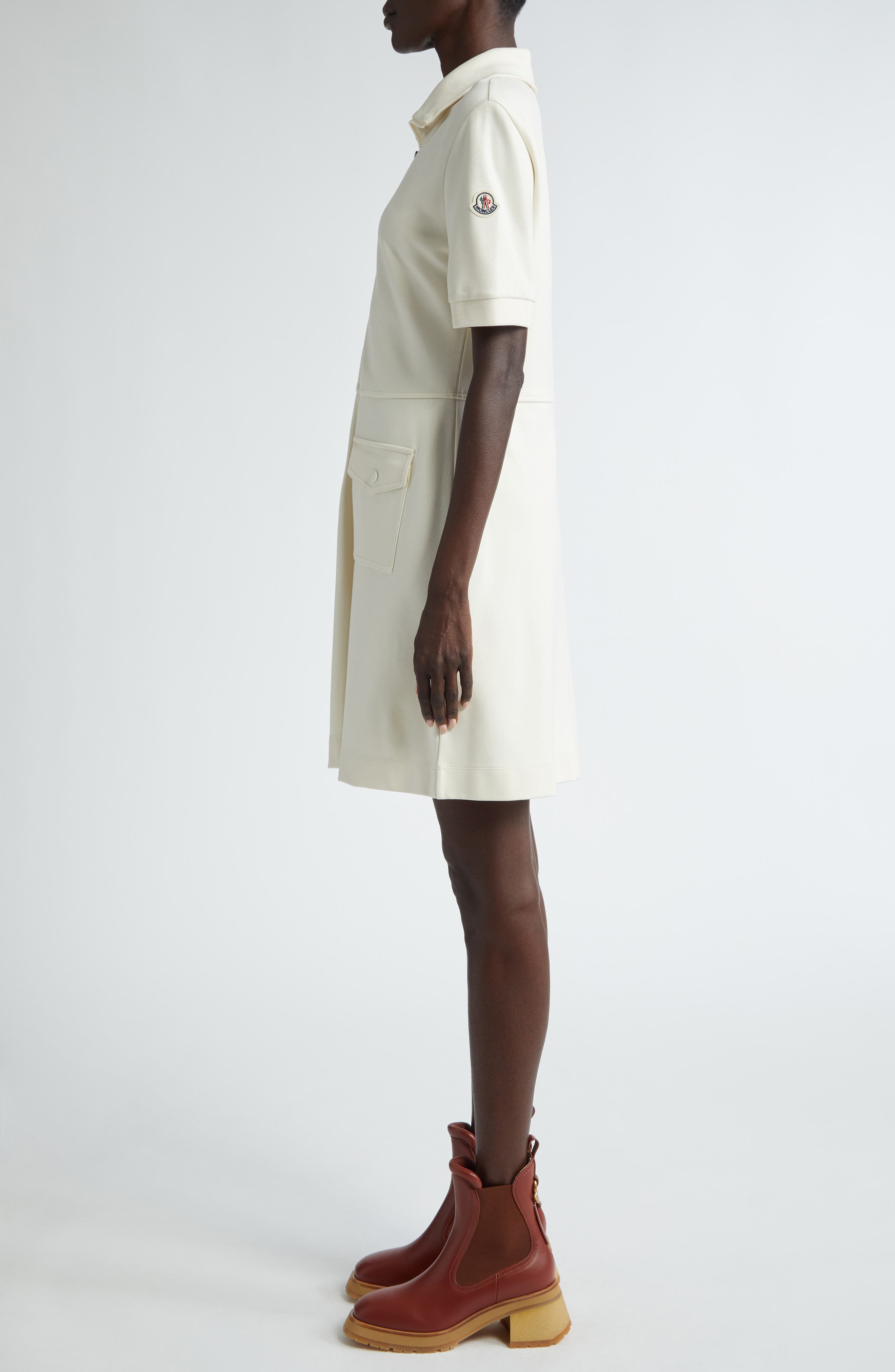 Moncler Zip Front Pique Knit Polo Dress_Silk White