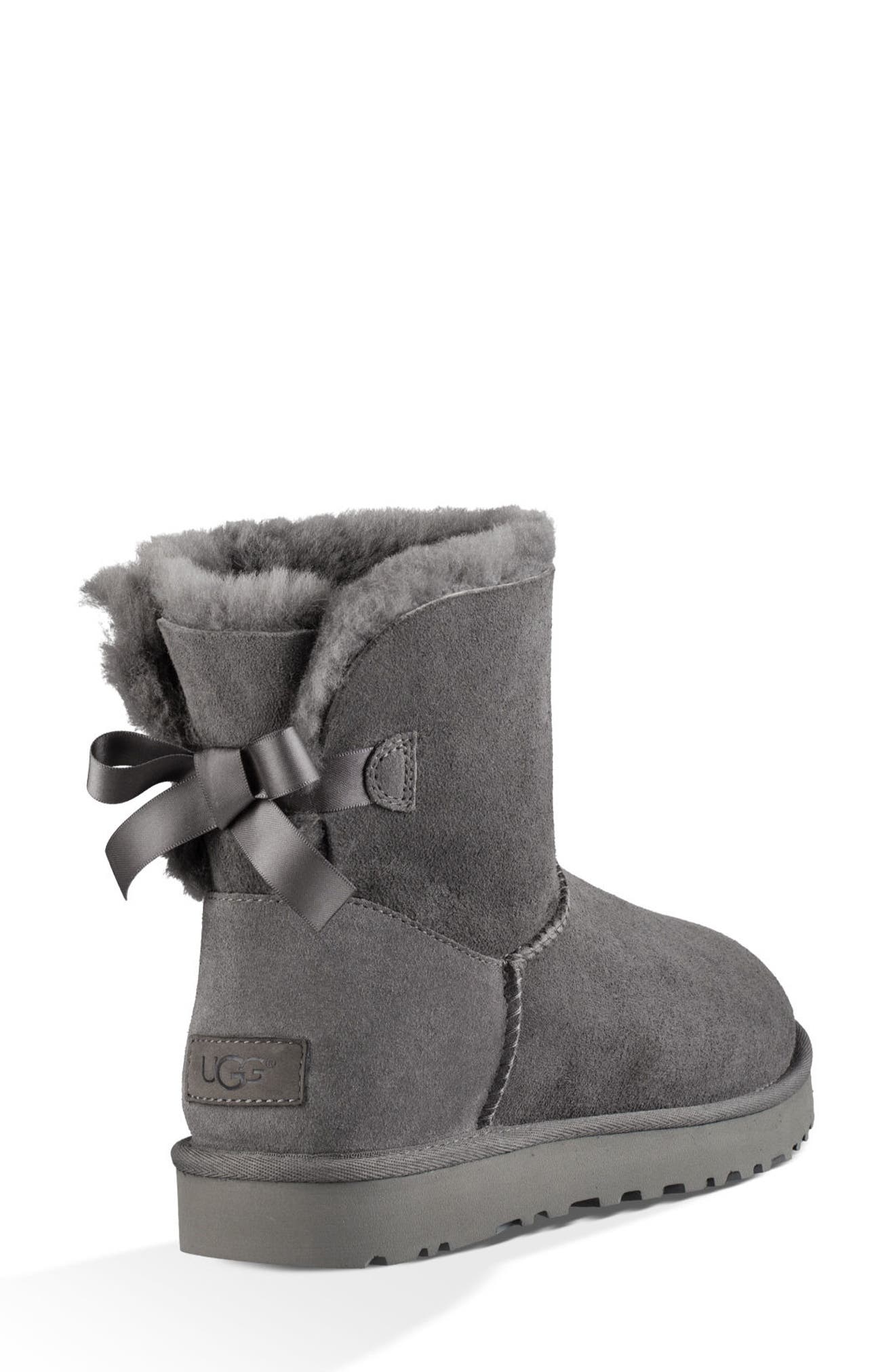 UGG Mini Bailey Bow II Genuine Shearling Bootie_Grey Suede