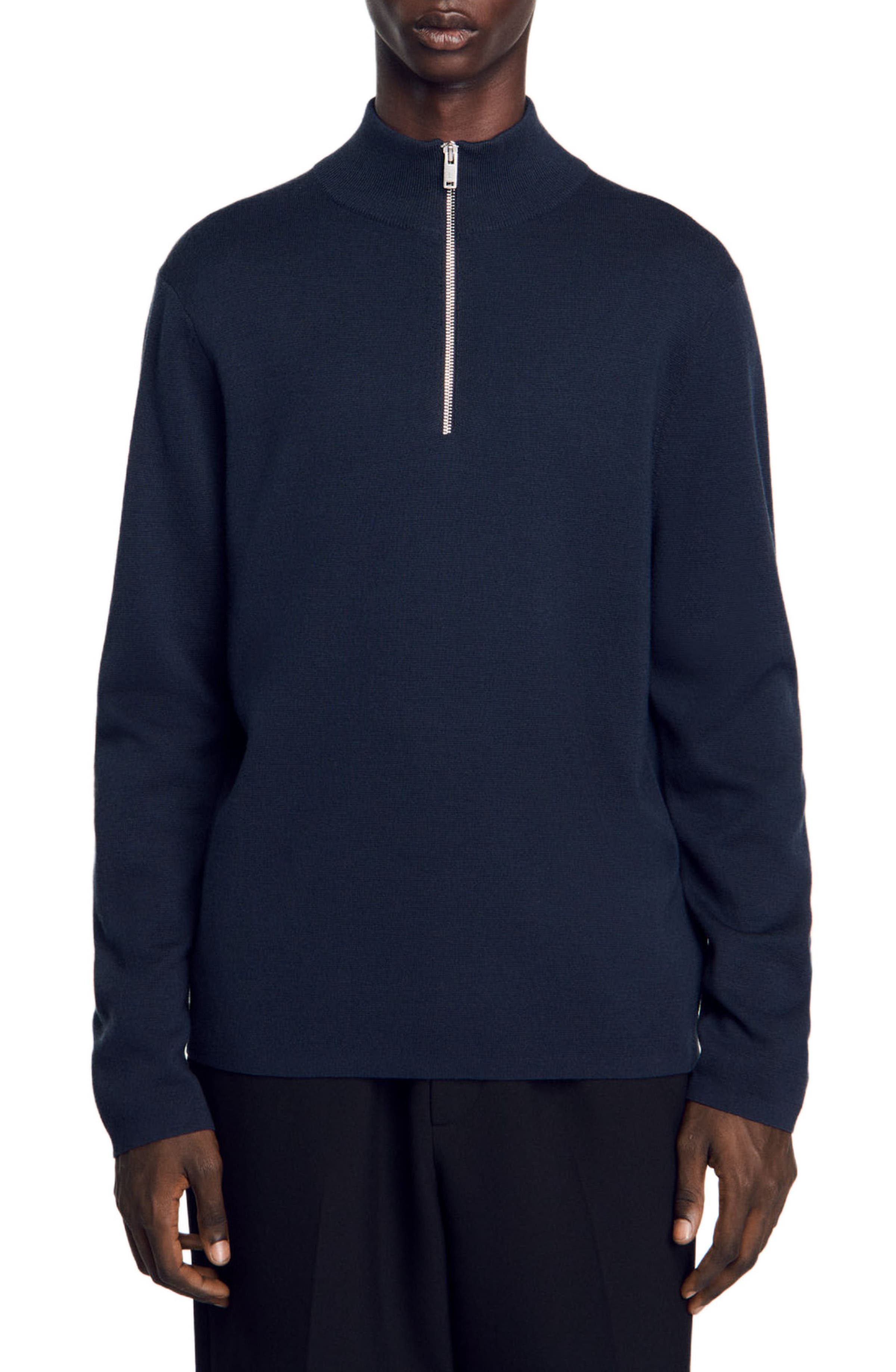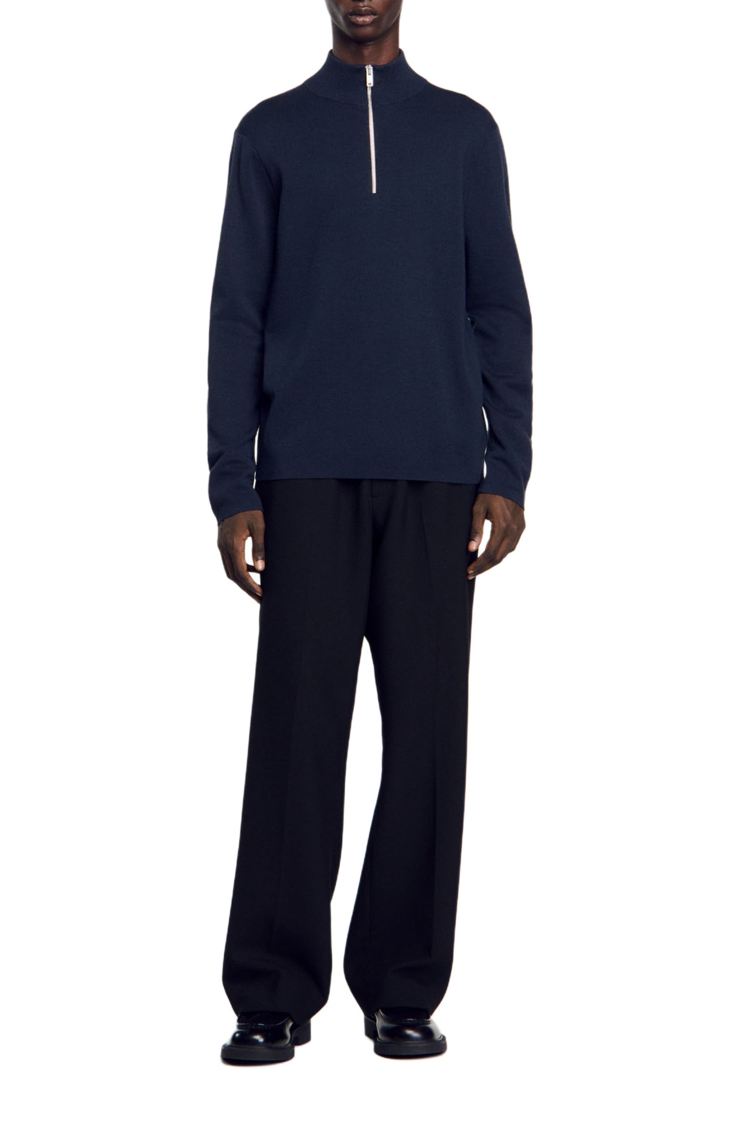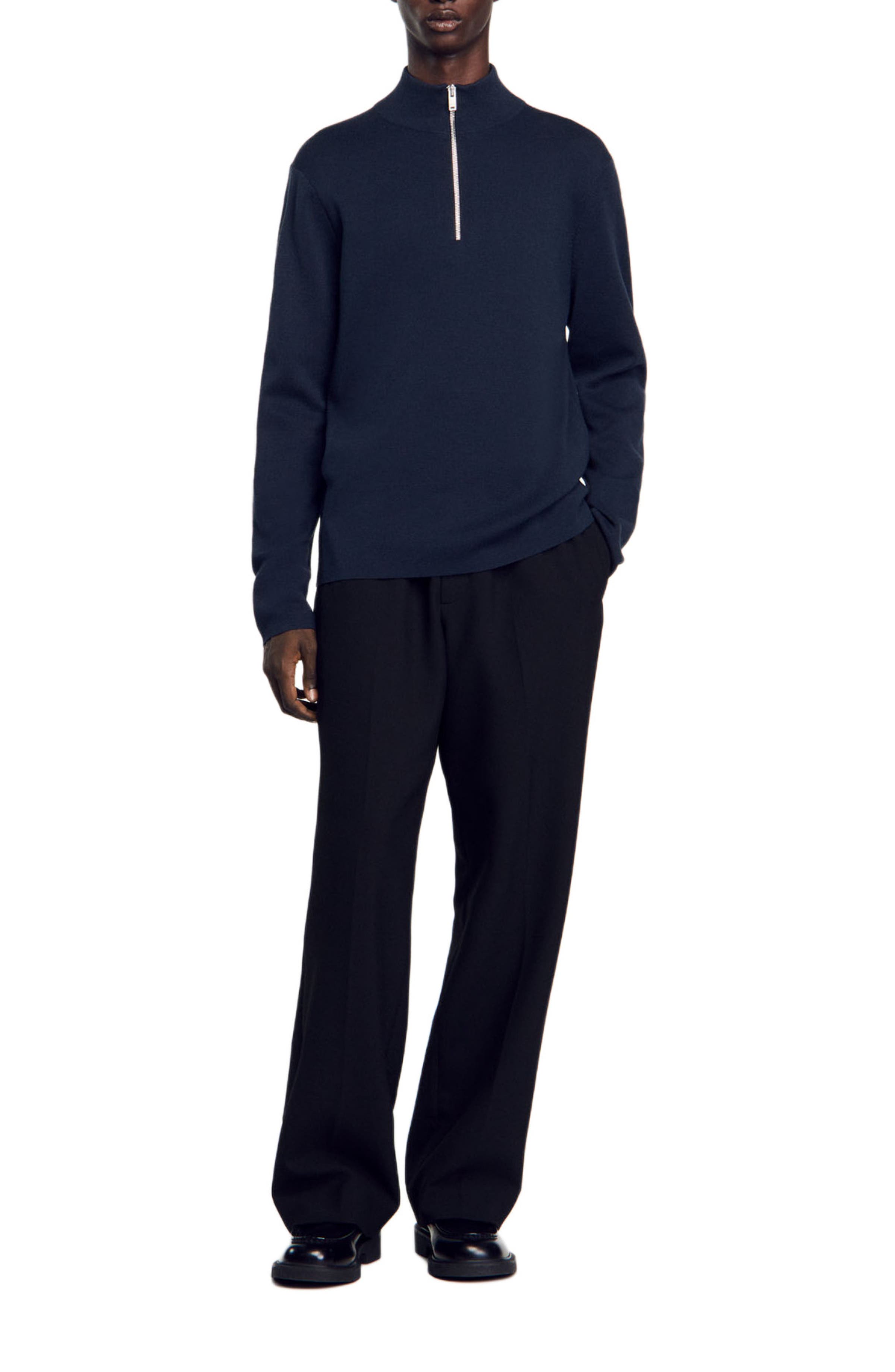 SANDRO Wool sweater with zip collar_Blue Prusse