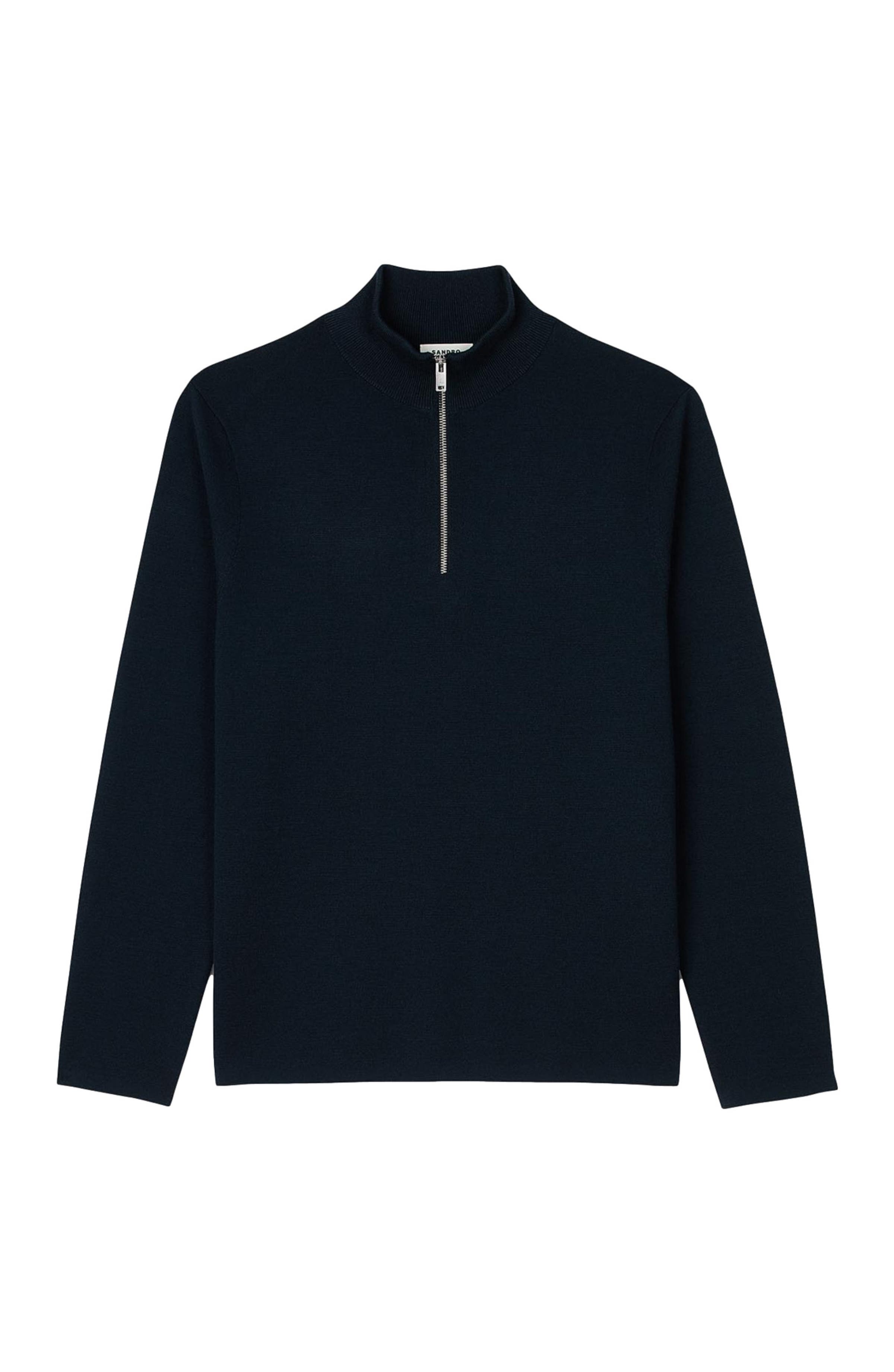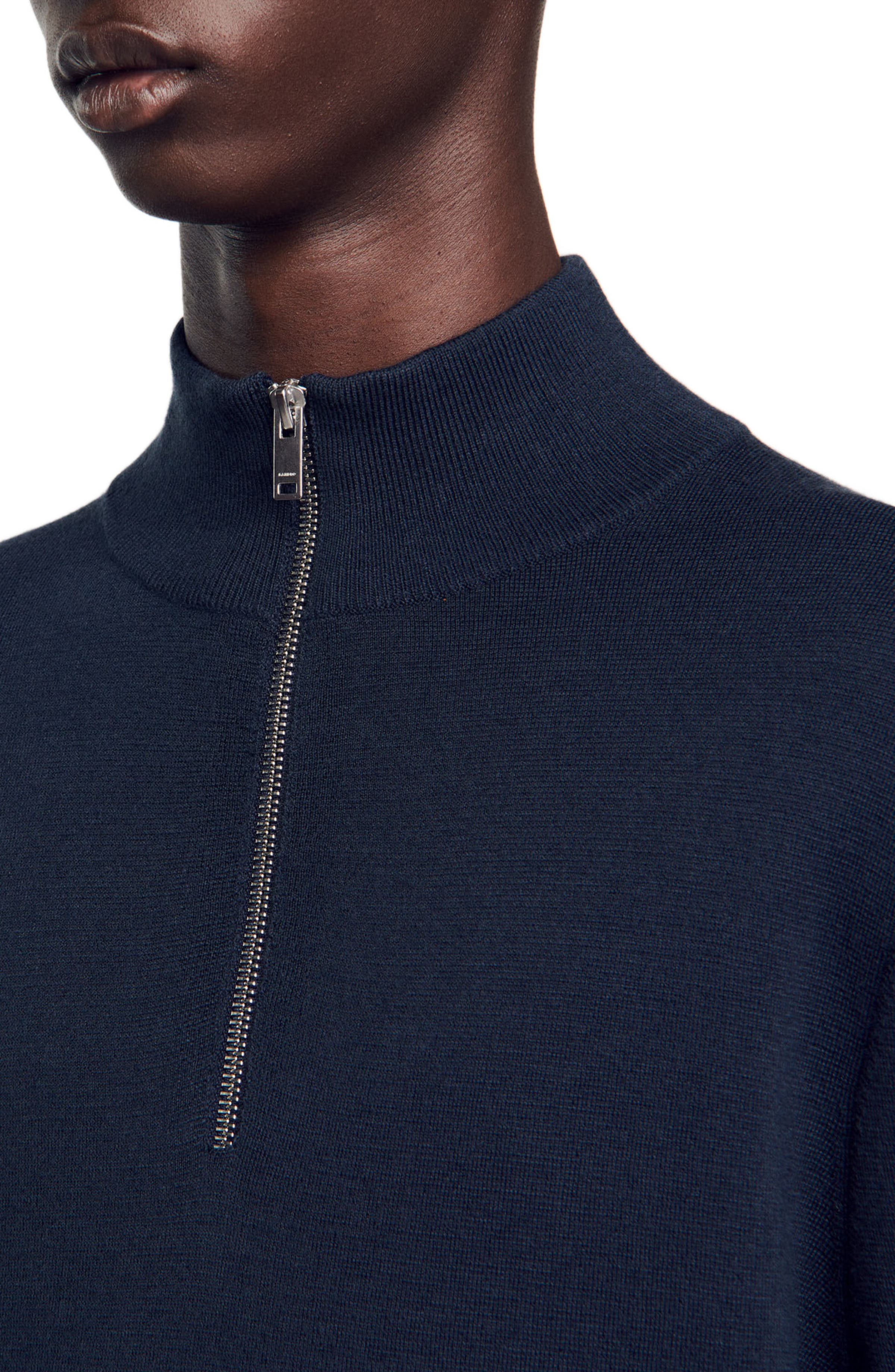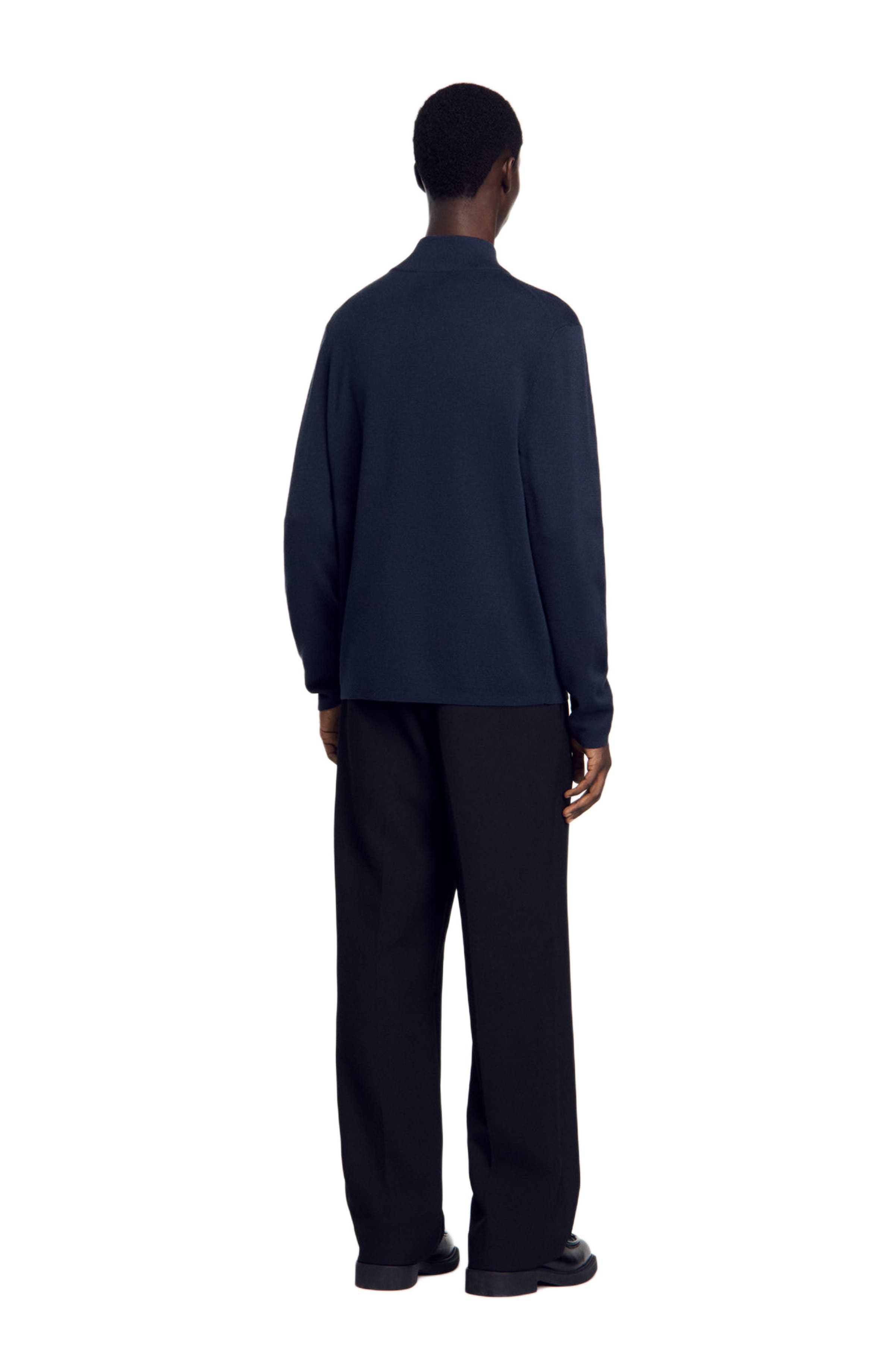 SANDRO Wool sweater with zip collar_Blue Prusse