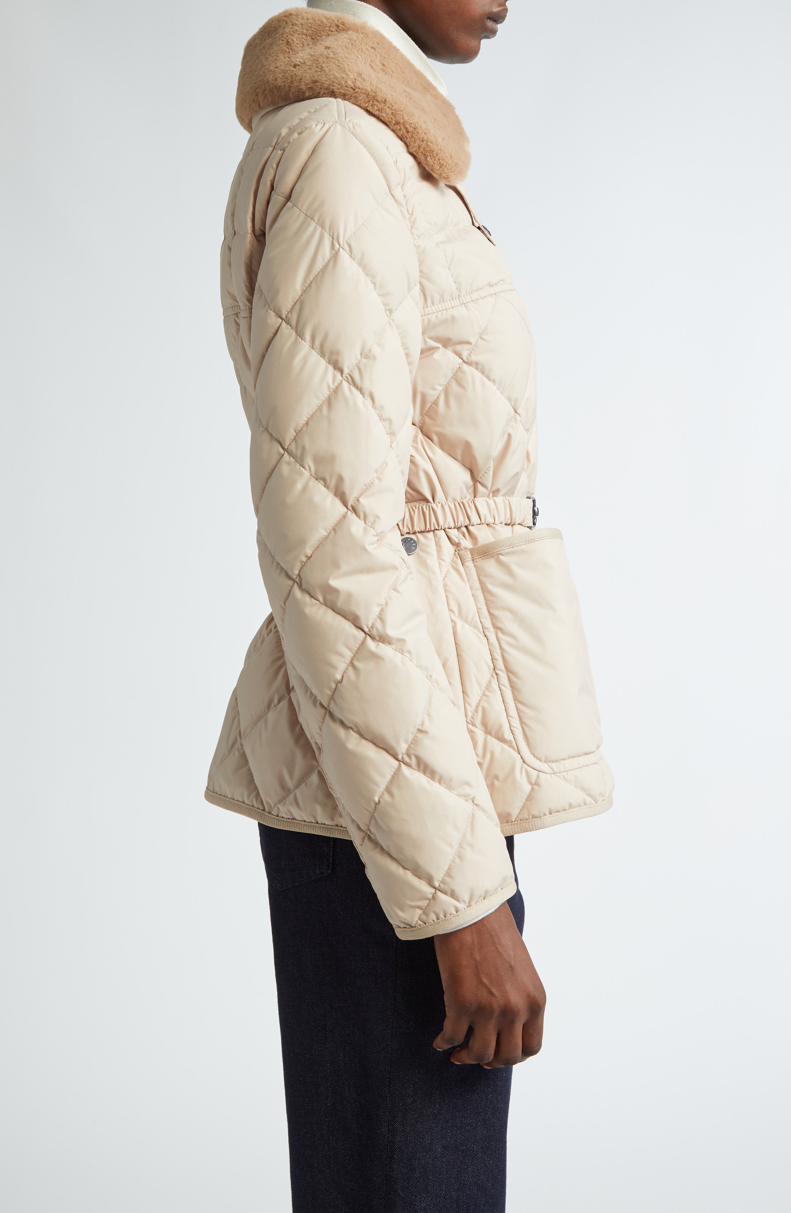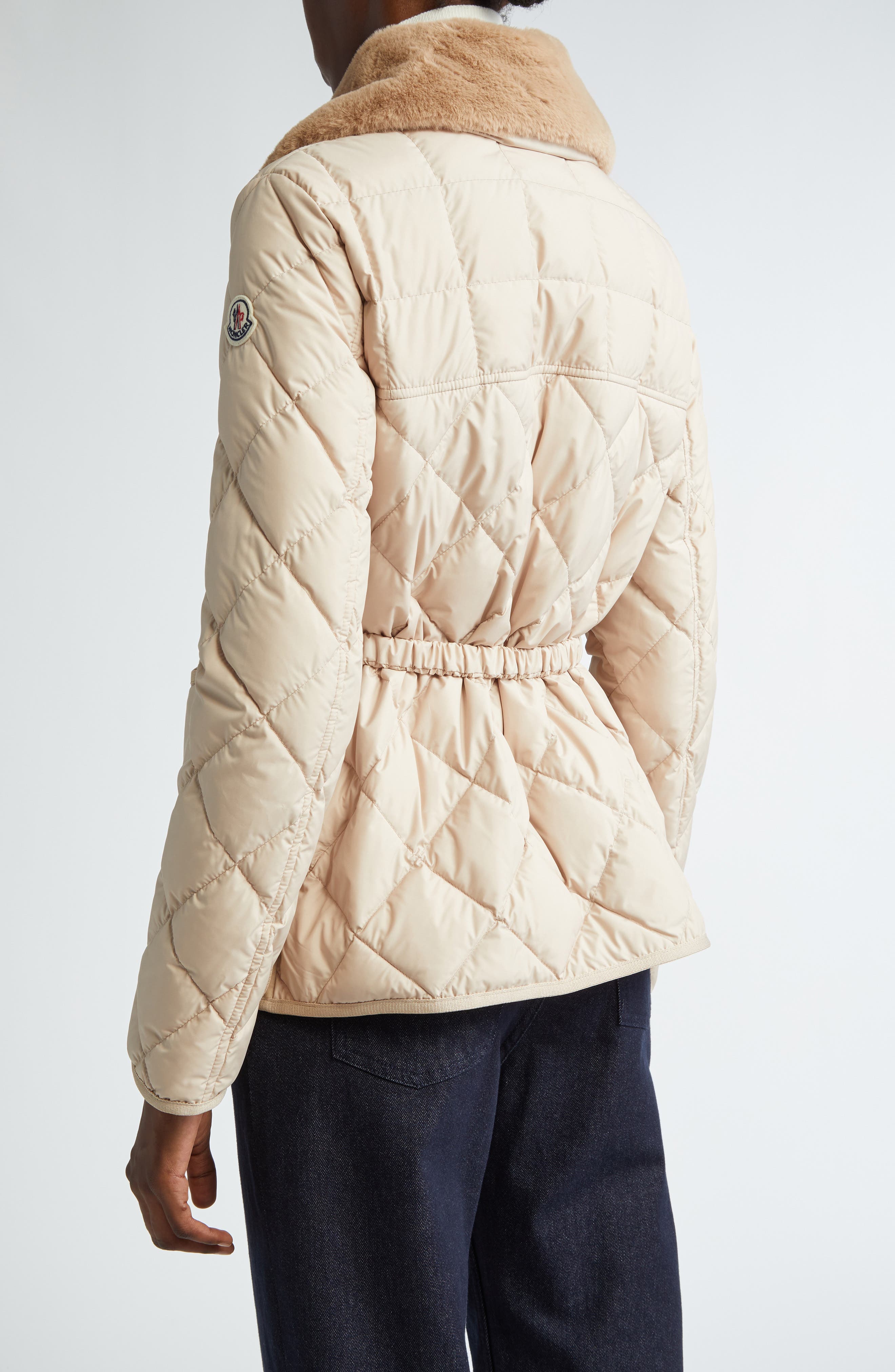 Moncler Cygne Belted Down Puffer Jacket with Removable Faux Fur Collar_Beige