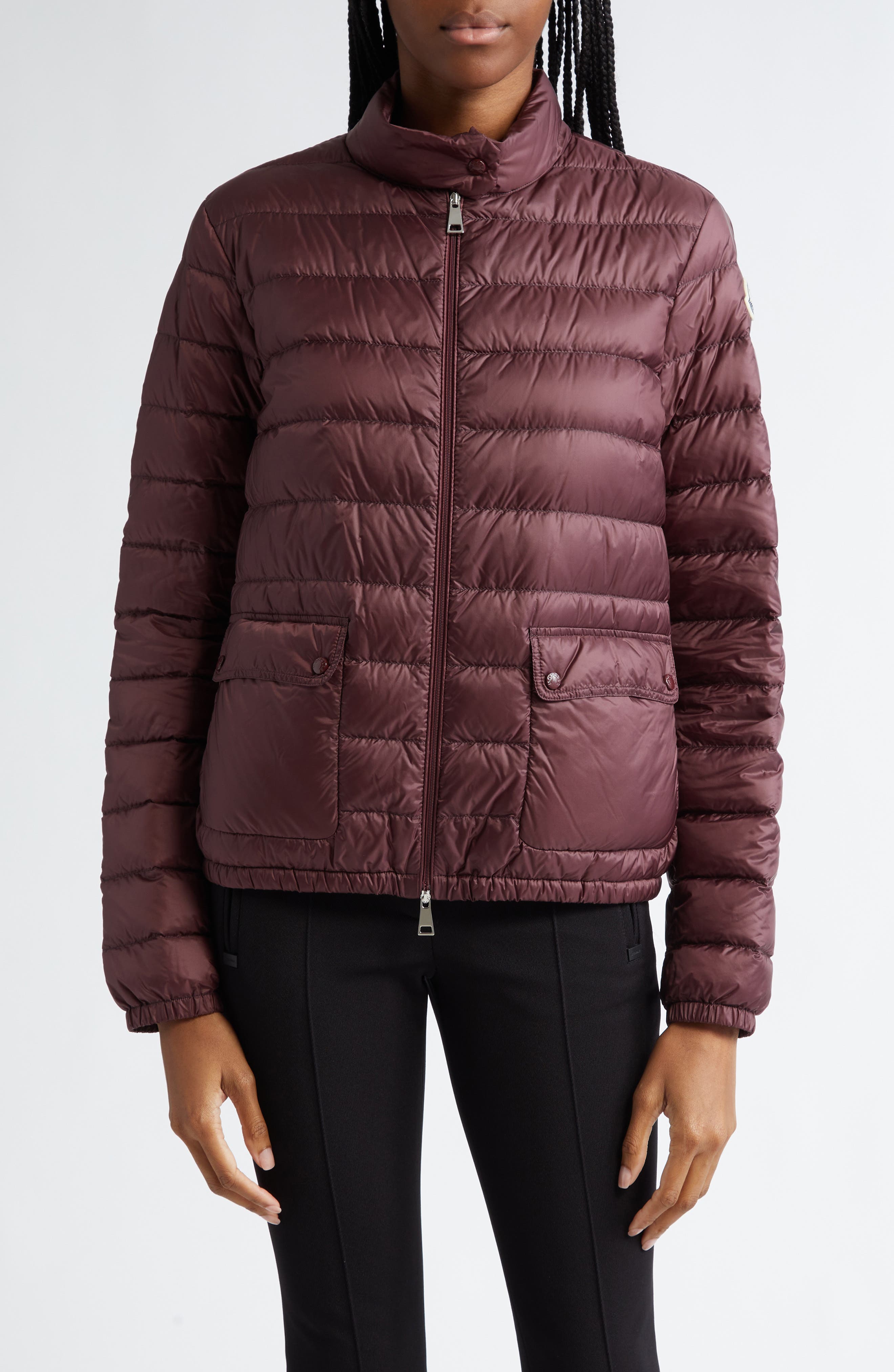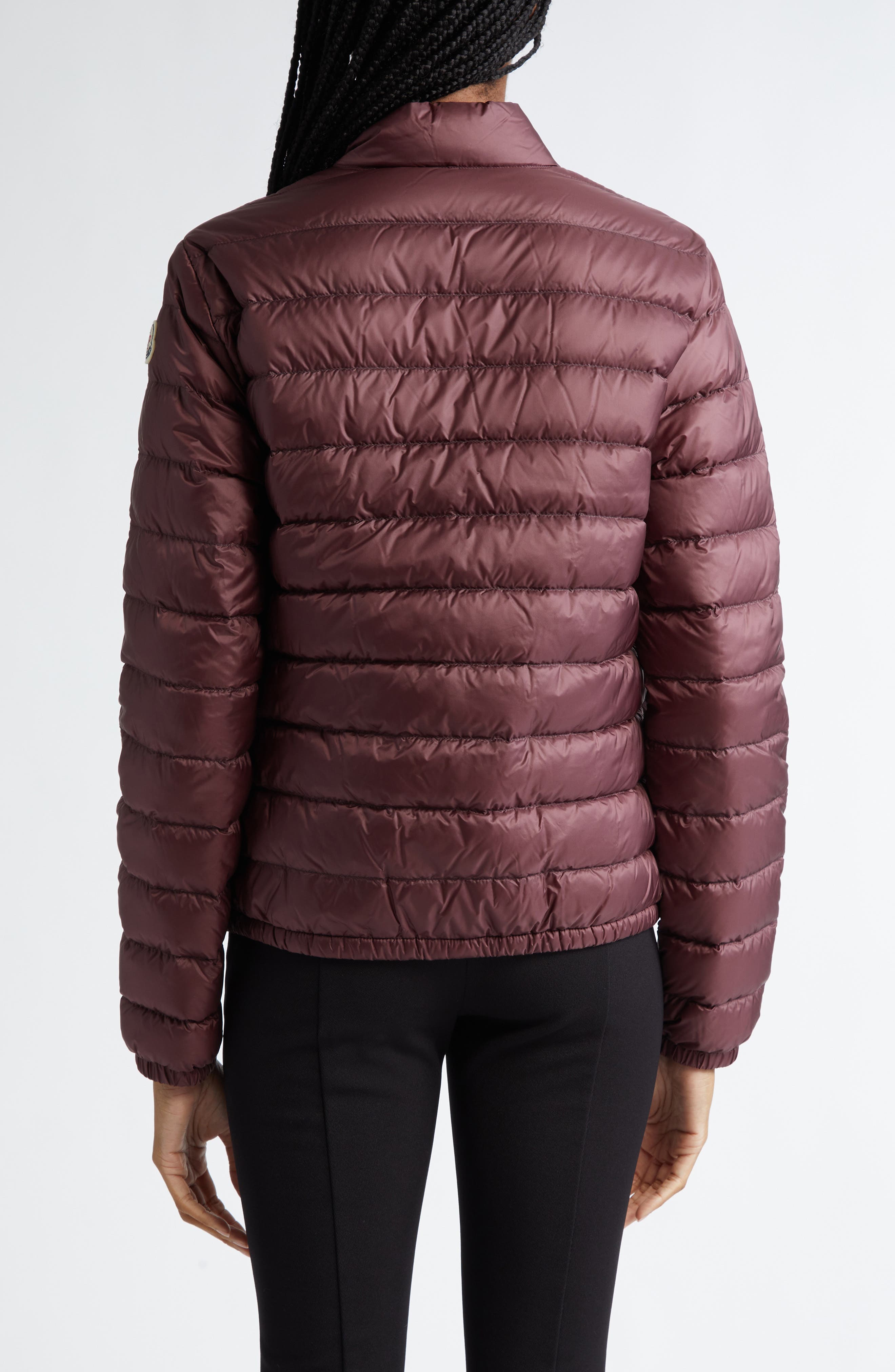 Moncler Lans Channel Quilted Down Moto Jacket_Dark Mahogany