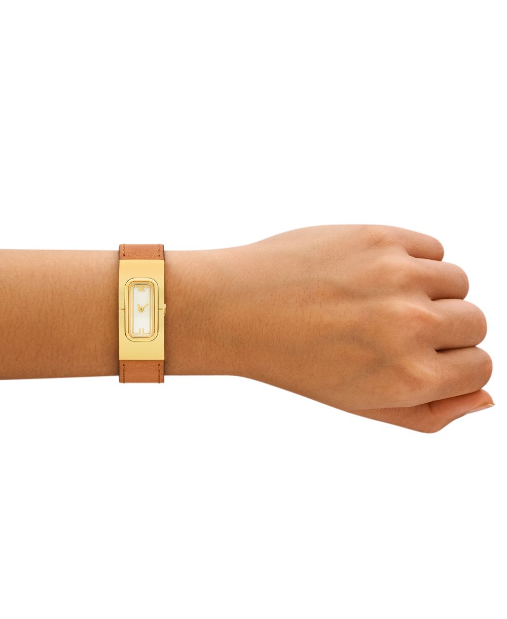 Tory Burch Womens The T Watch Brown Leather Strap Watch 18mm