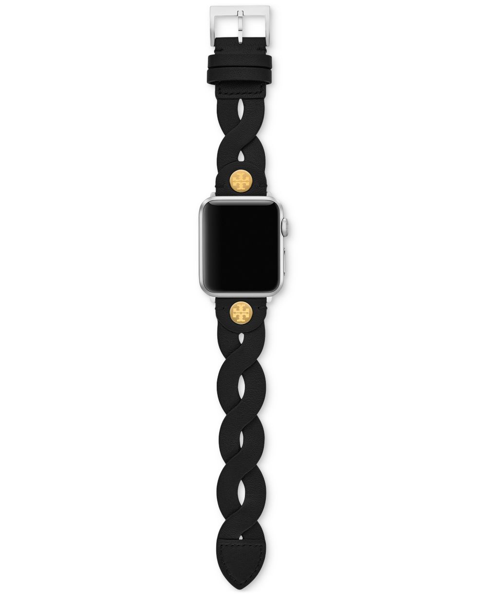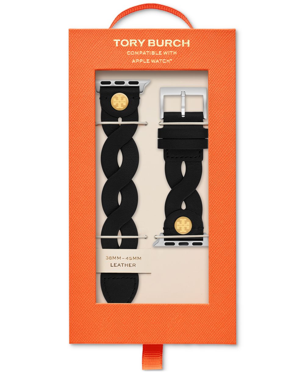 Tory Burch Womens Black Braided Leather Band for Apple Watch 38 45mm