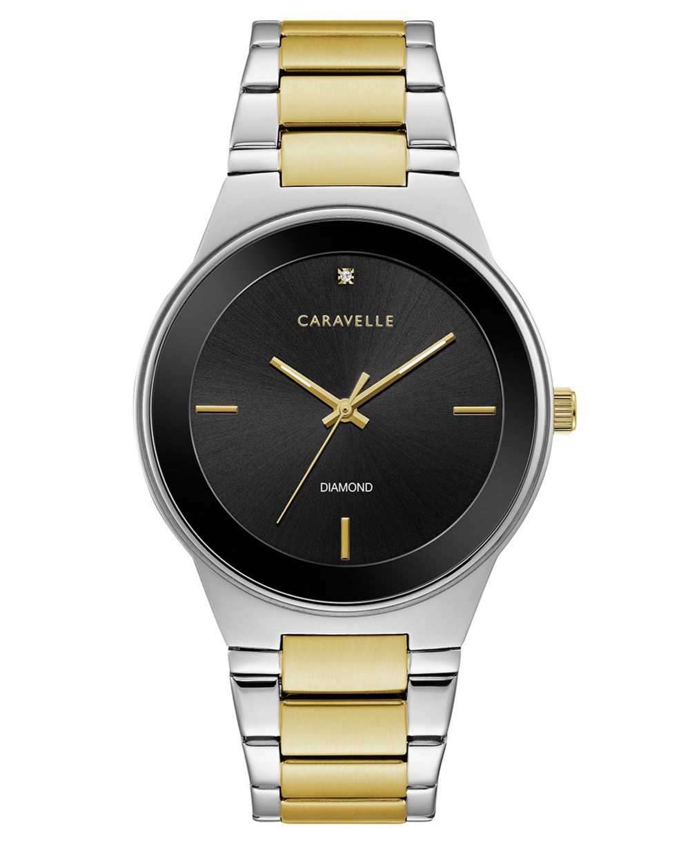 Caravelle Mens Diamond Accent Two Tone Stainless Steel Bracelet Watch 40mm