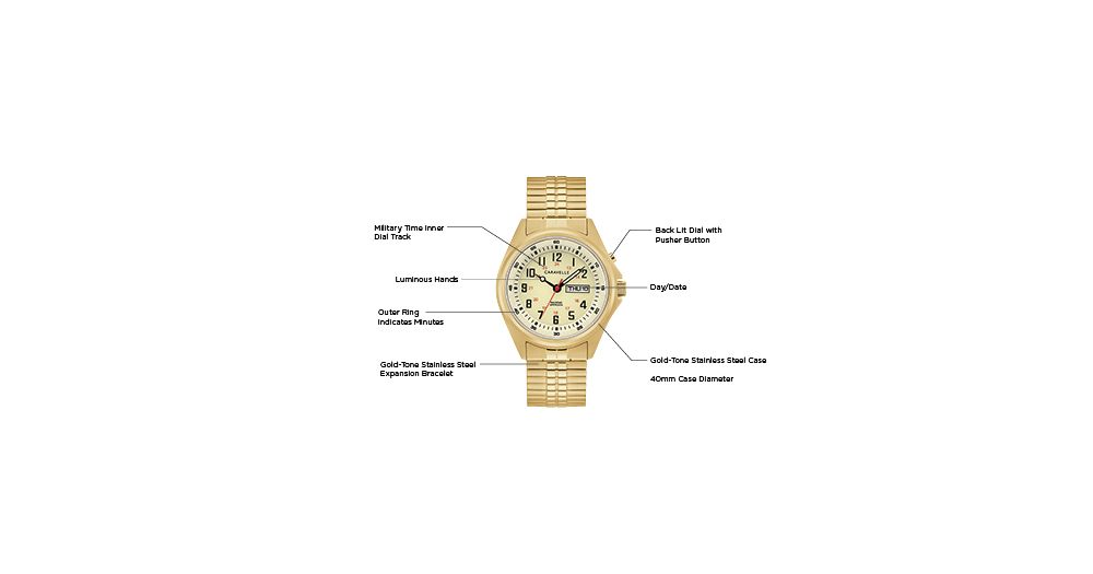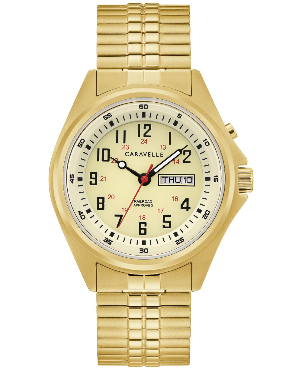 Caravelle Mens Traditional Gold Tone Stainless Steel Expansion Bracelet Watch 40mm