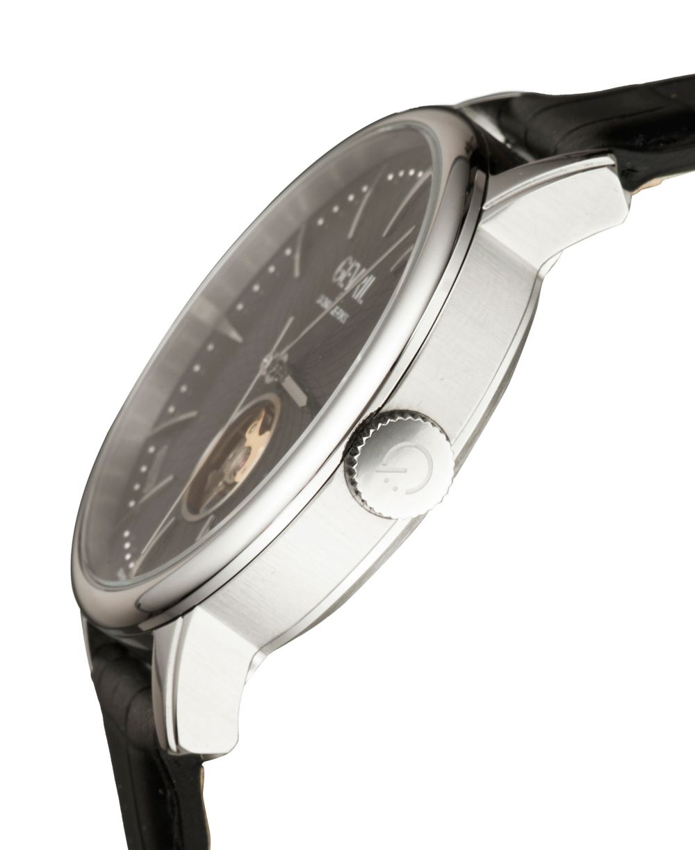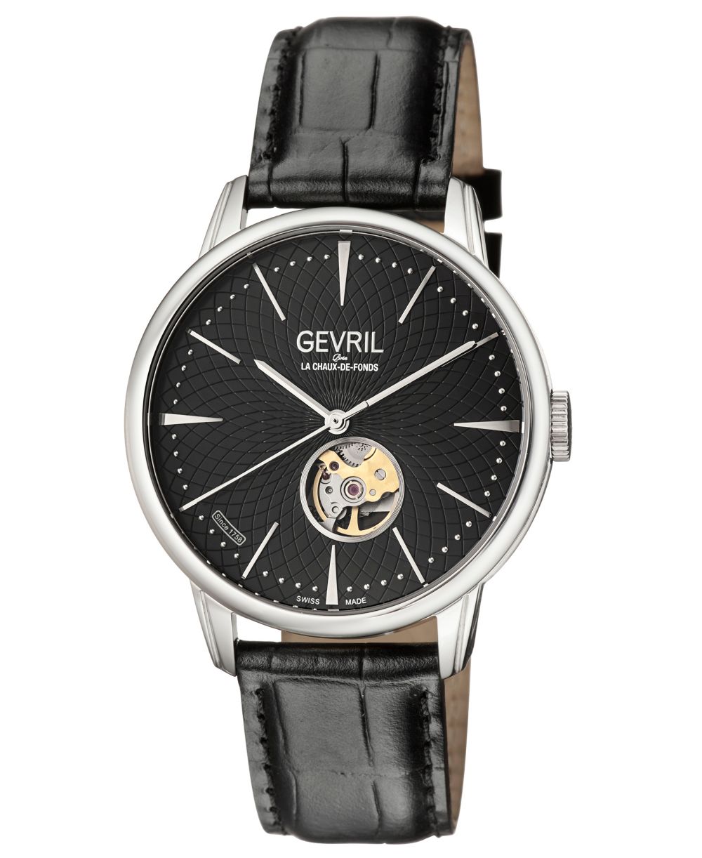 Gevril Mens Mulberry Swiss Automatic Black Leather Watch 42mm