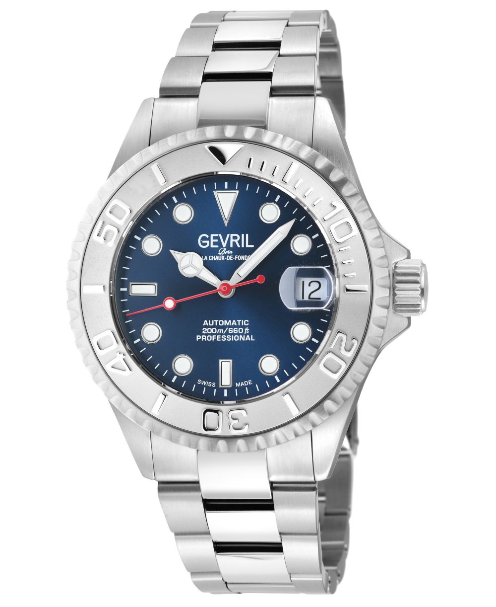 Gevril Mens Wall Street Swiss Automatic Silver Tone Stainless Steel Watch 39mm