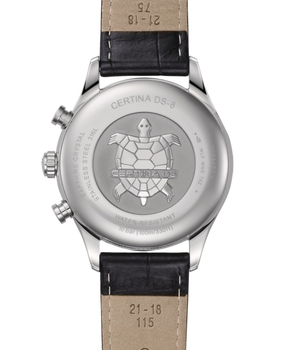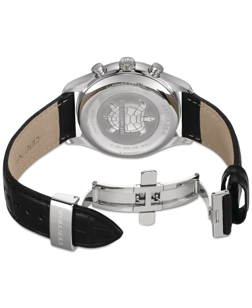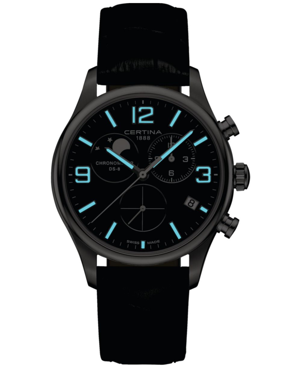 Certina Mens Swiss Chronograph DS 8 Moon Phase Black Leather Strap Watch 42mm