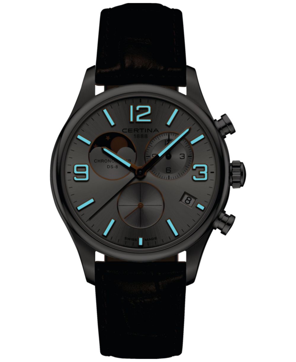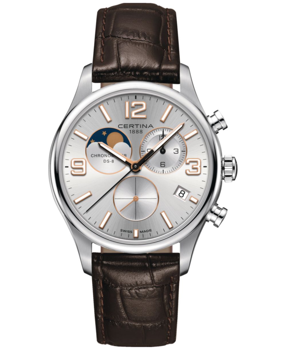 Certina Mens Swiss Chronograph DS 8 Moon Phase Brown Leather Strap Watch 42mm