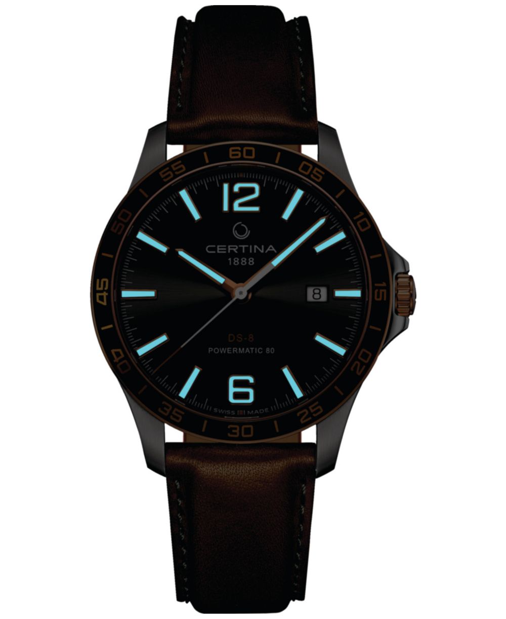 Certina Mens Swiss Automatic DS 8 Brown Leather Strap Watch 41mm