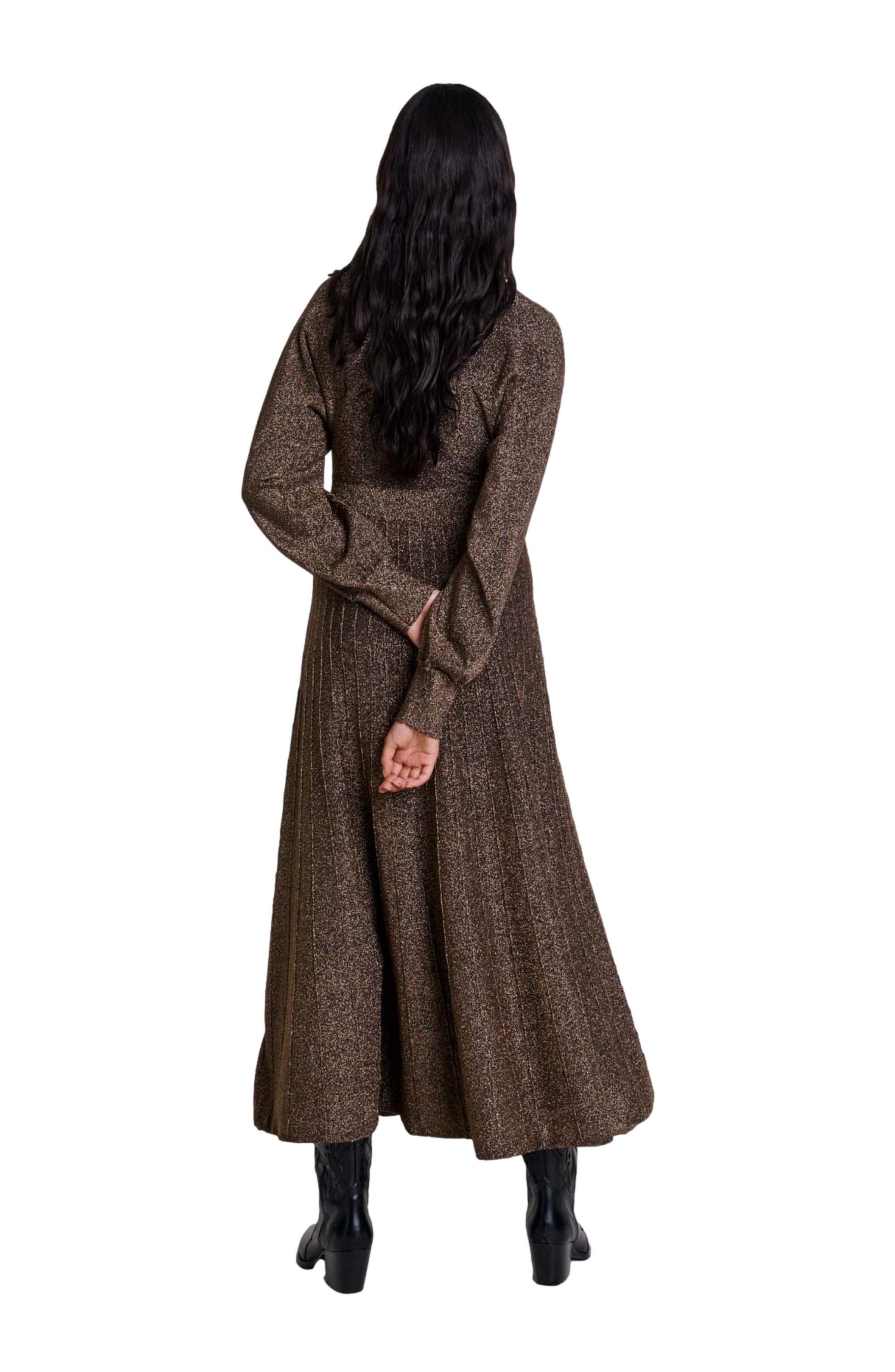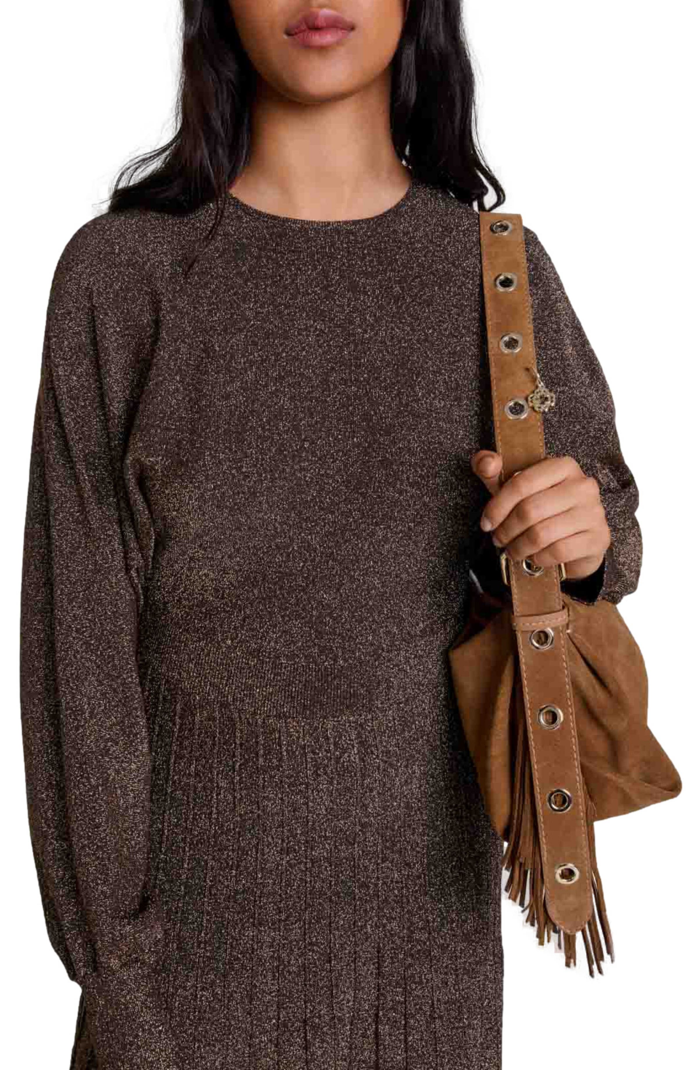 maje Shiny knit maxi dress_Gold