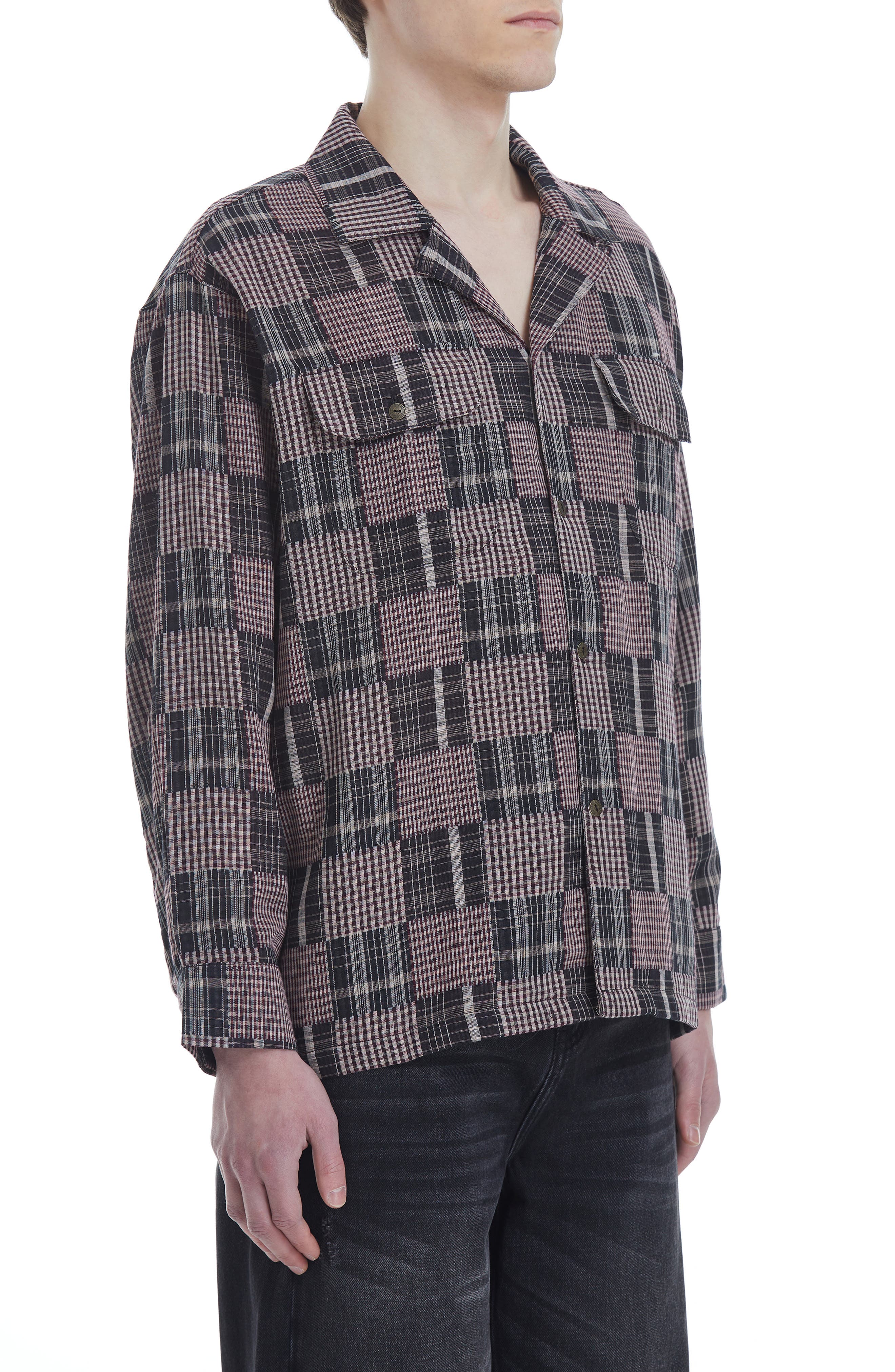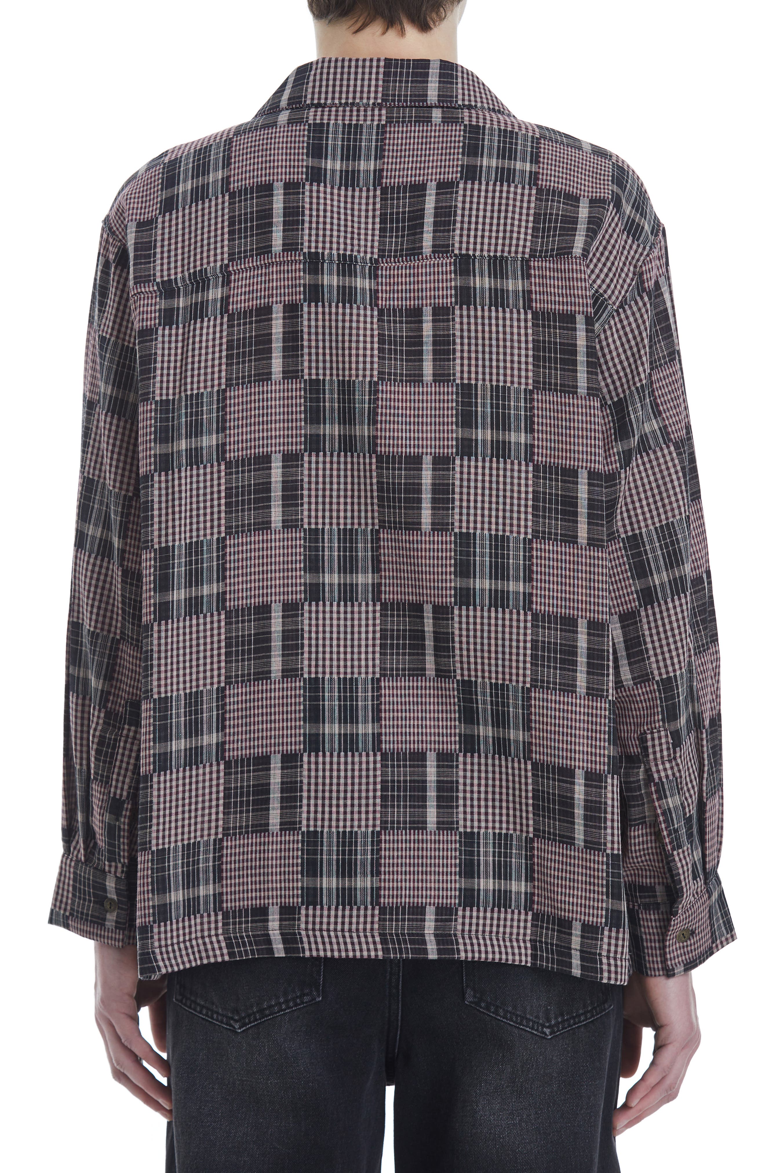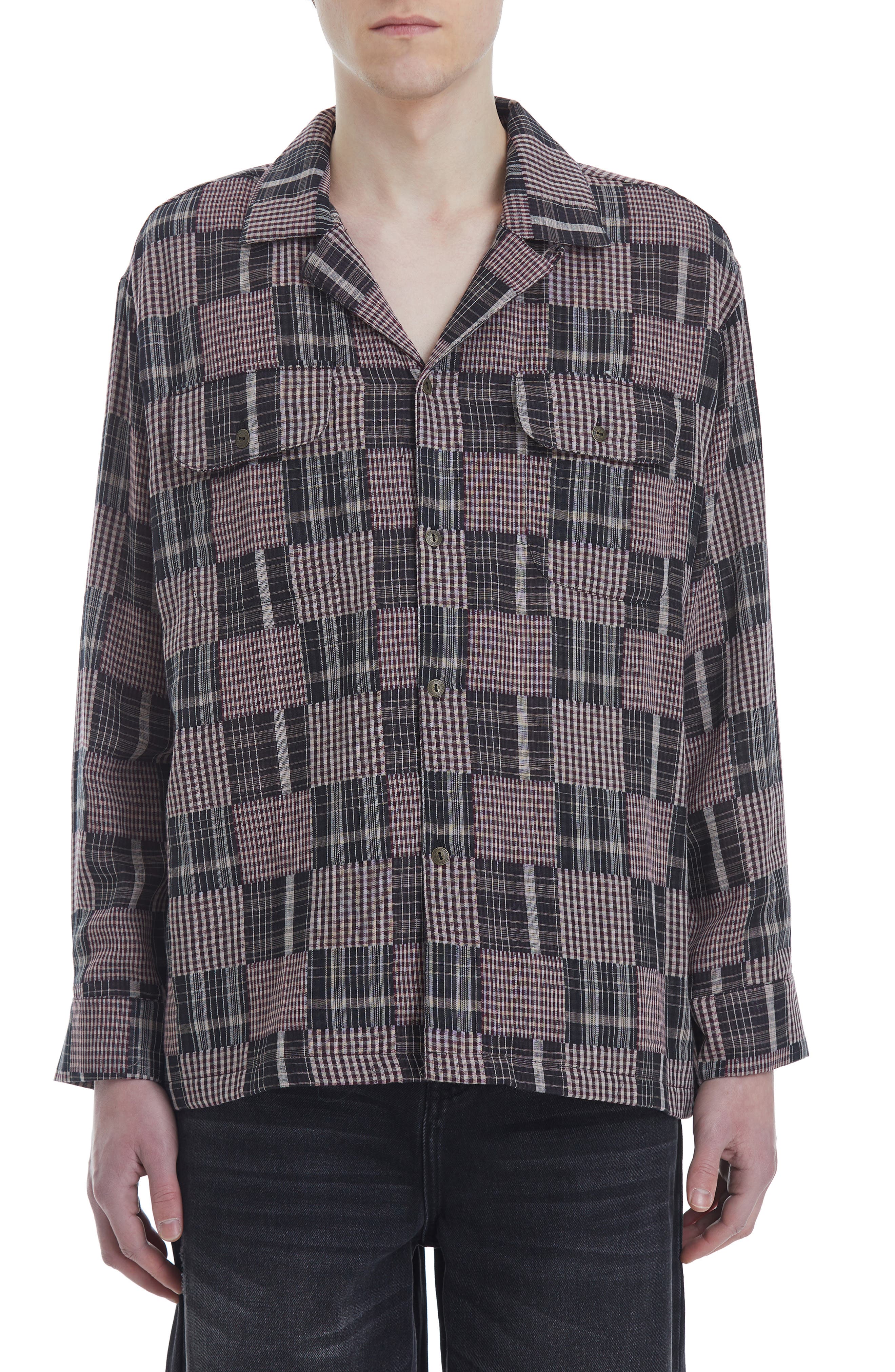 FOUND Patchwork Cotton Flannel Button-Up Shirt_Black Multi
