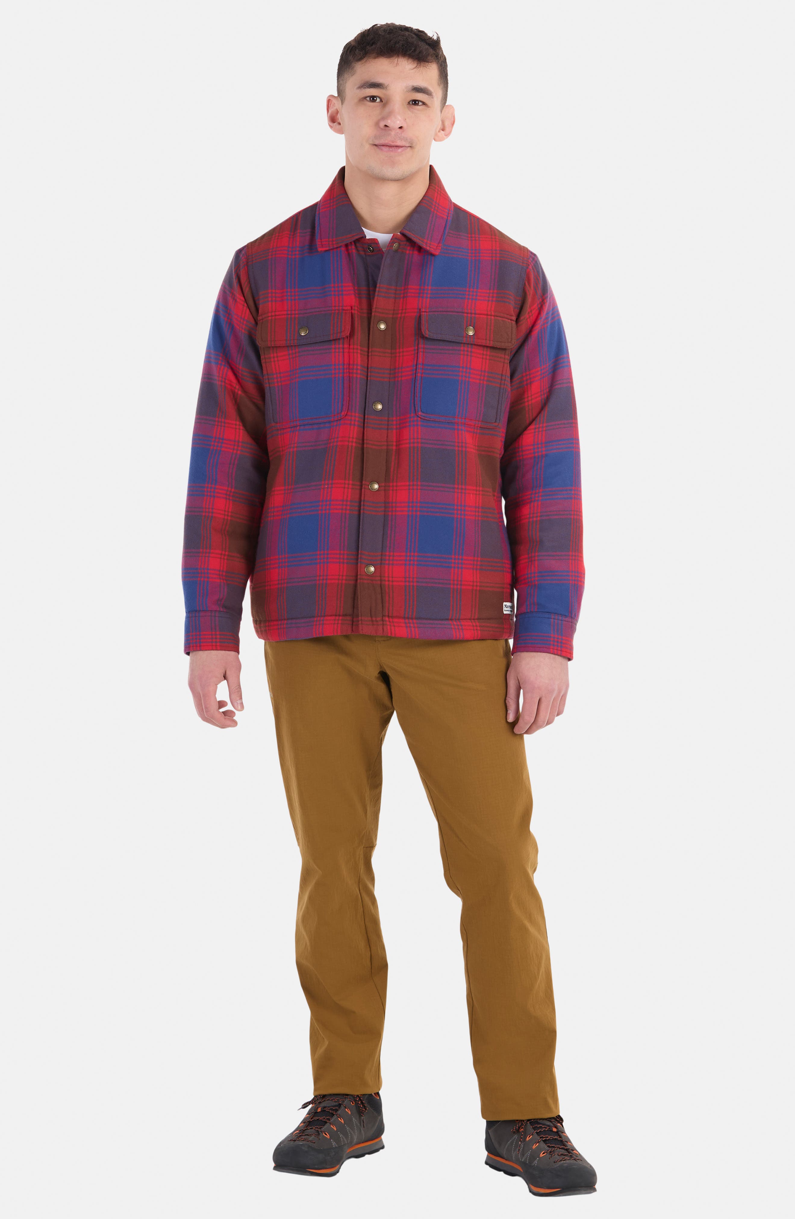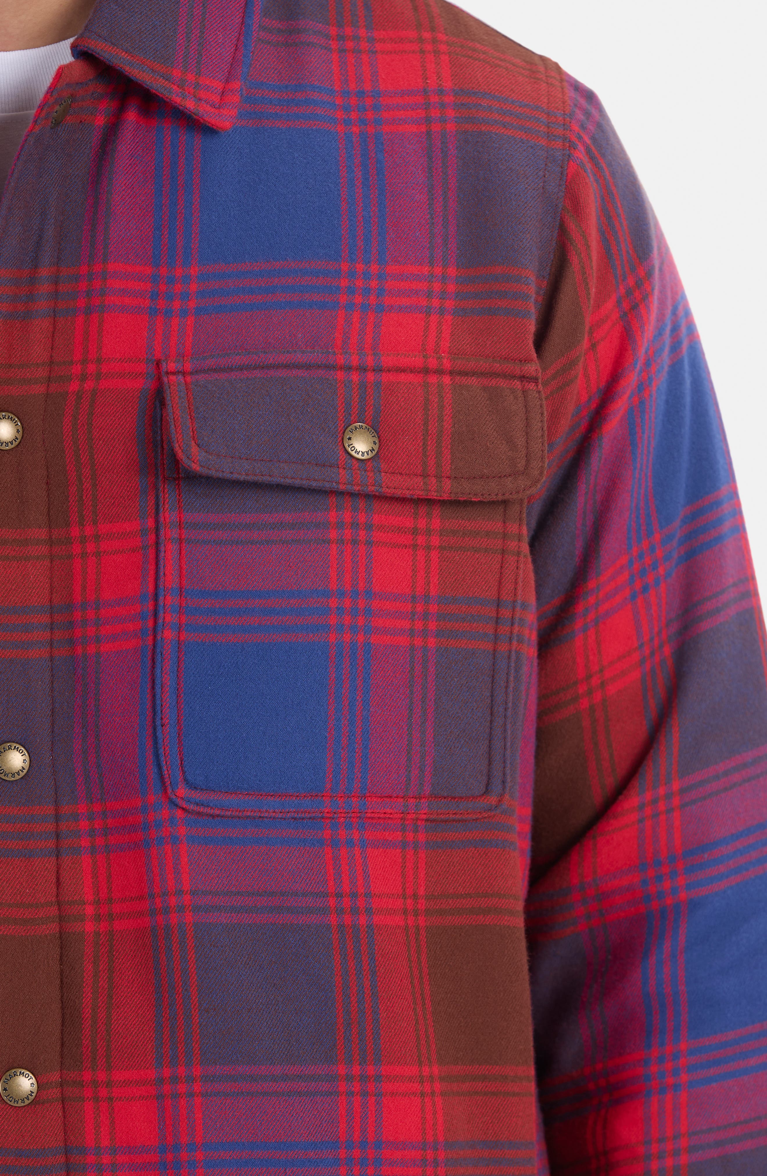 Marmot Ridgefield Fleece Lined Flannel Snap-Up Shirt Jacket_Team Red