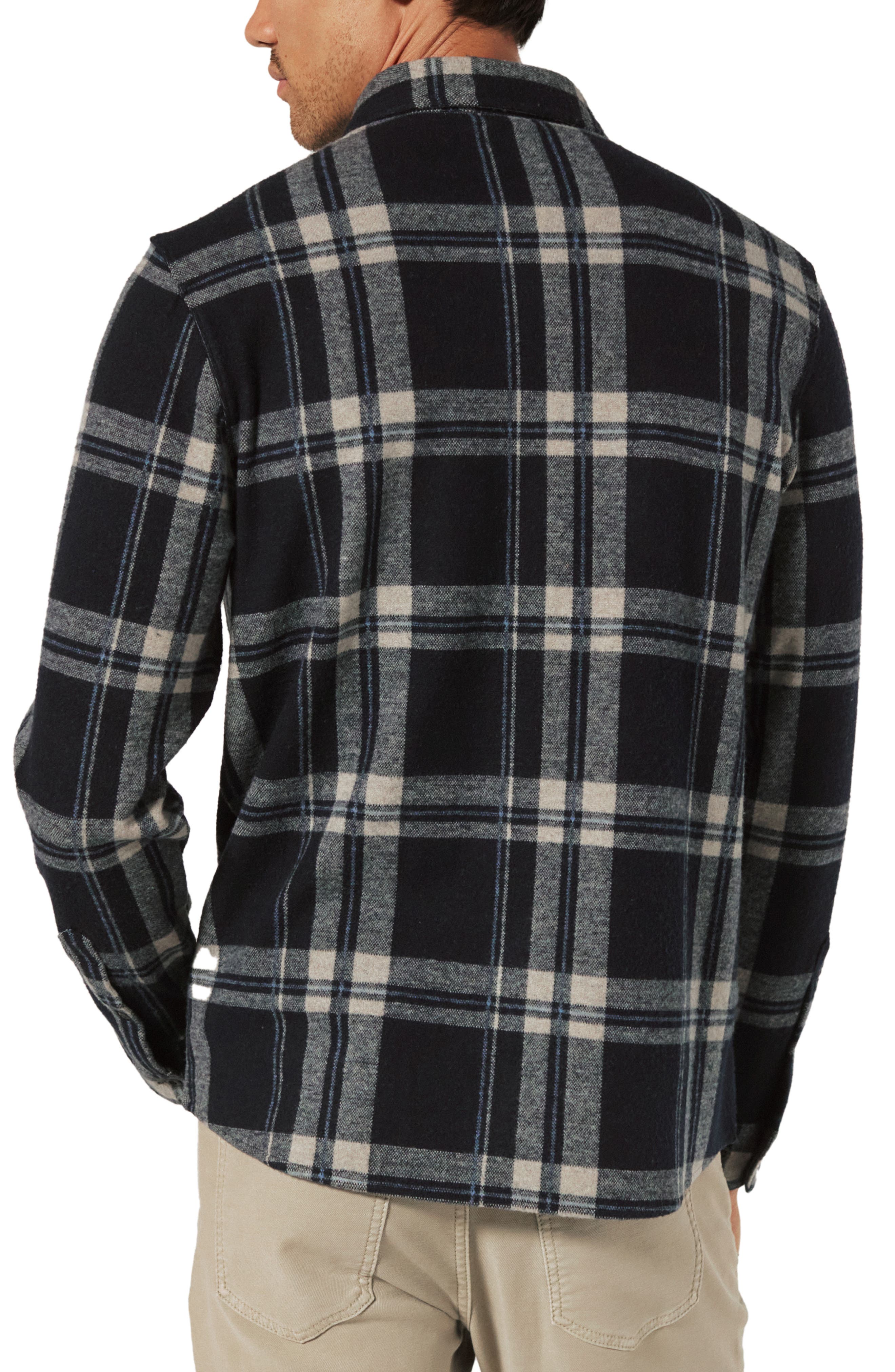 7 Diamonds Generation Plaid Stretch Flannel Button-Up Overshirt_Navy