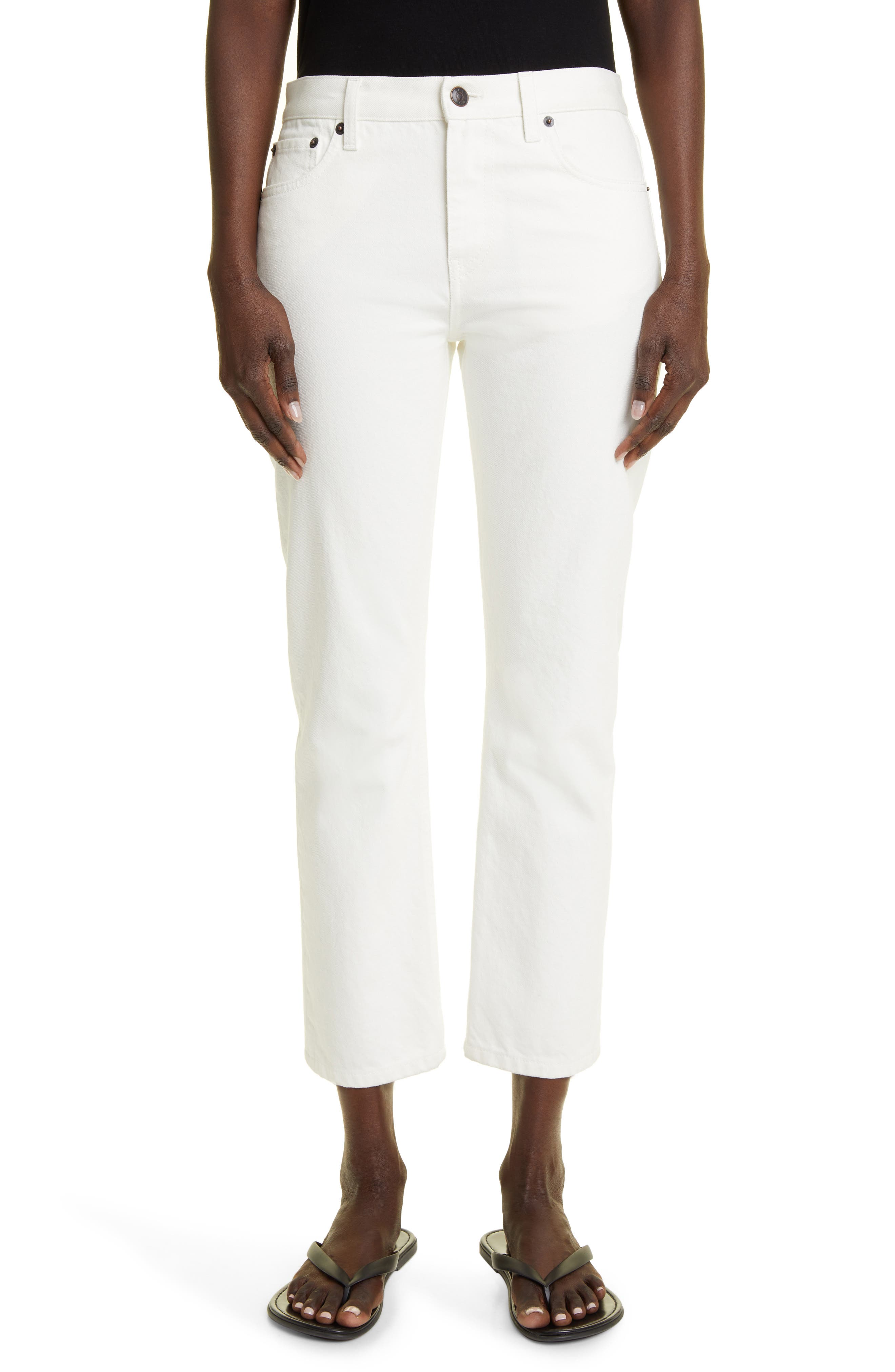 The Row Goldin Ankle Slim Straight Leg Jeans_White