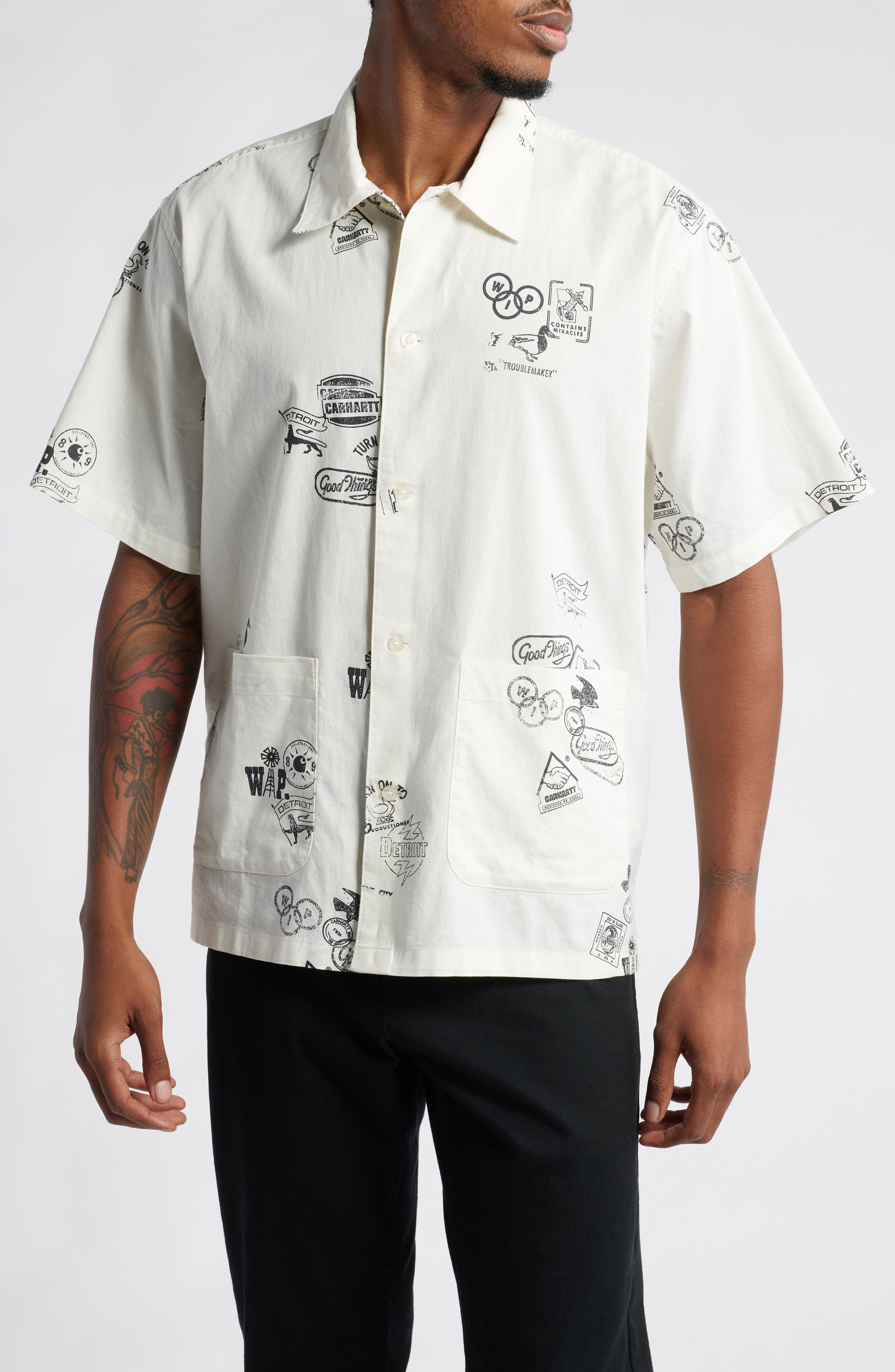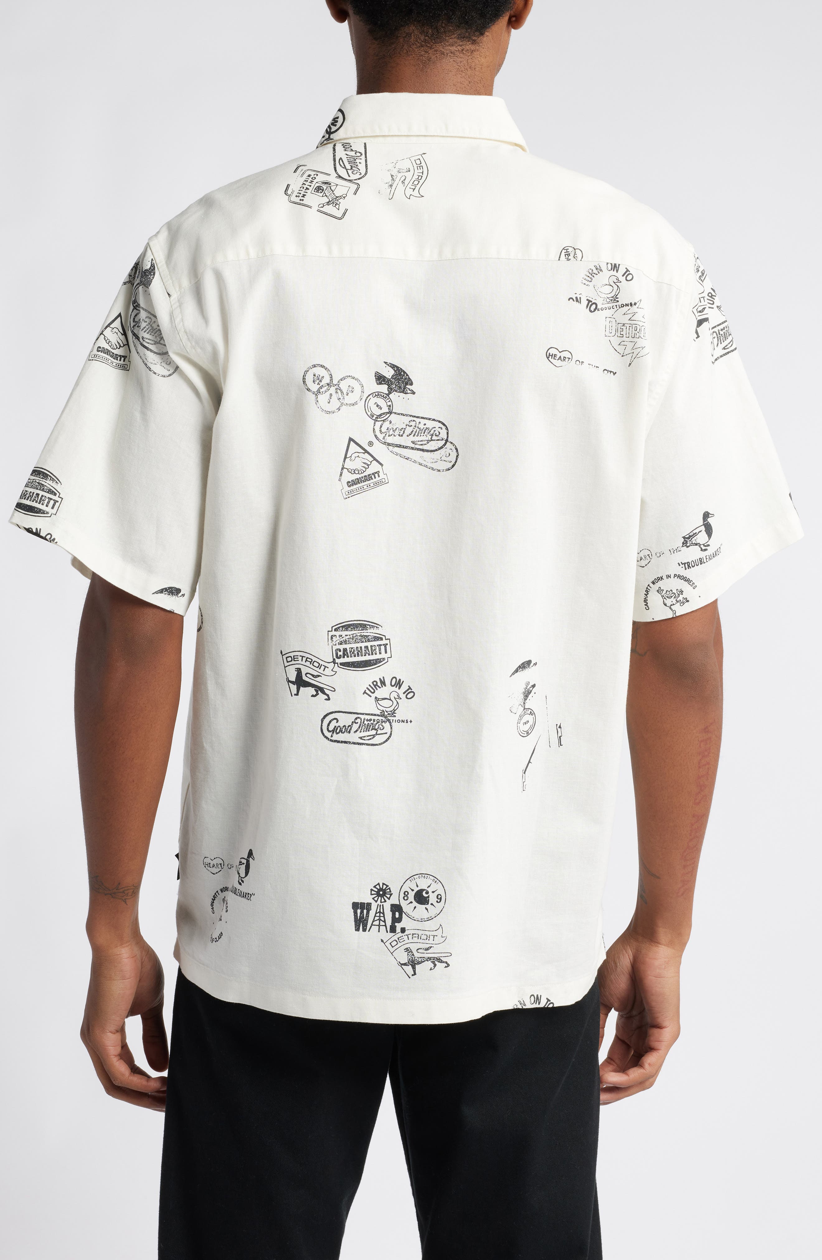 Carhartt Work In Progress Stamp Short Sleeve Cotton & Linen Button-Up Shirt_Stamp Print Wax