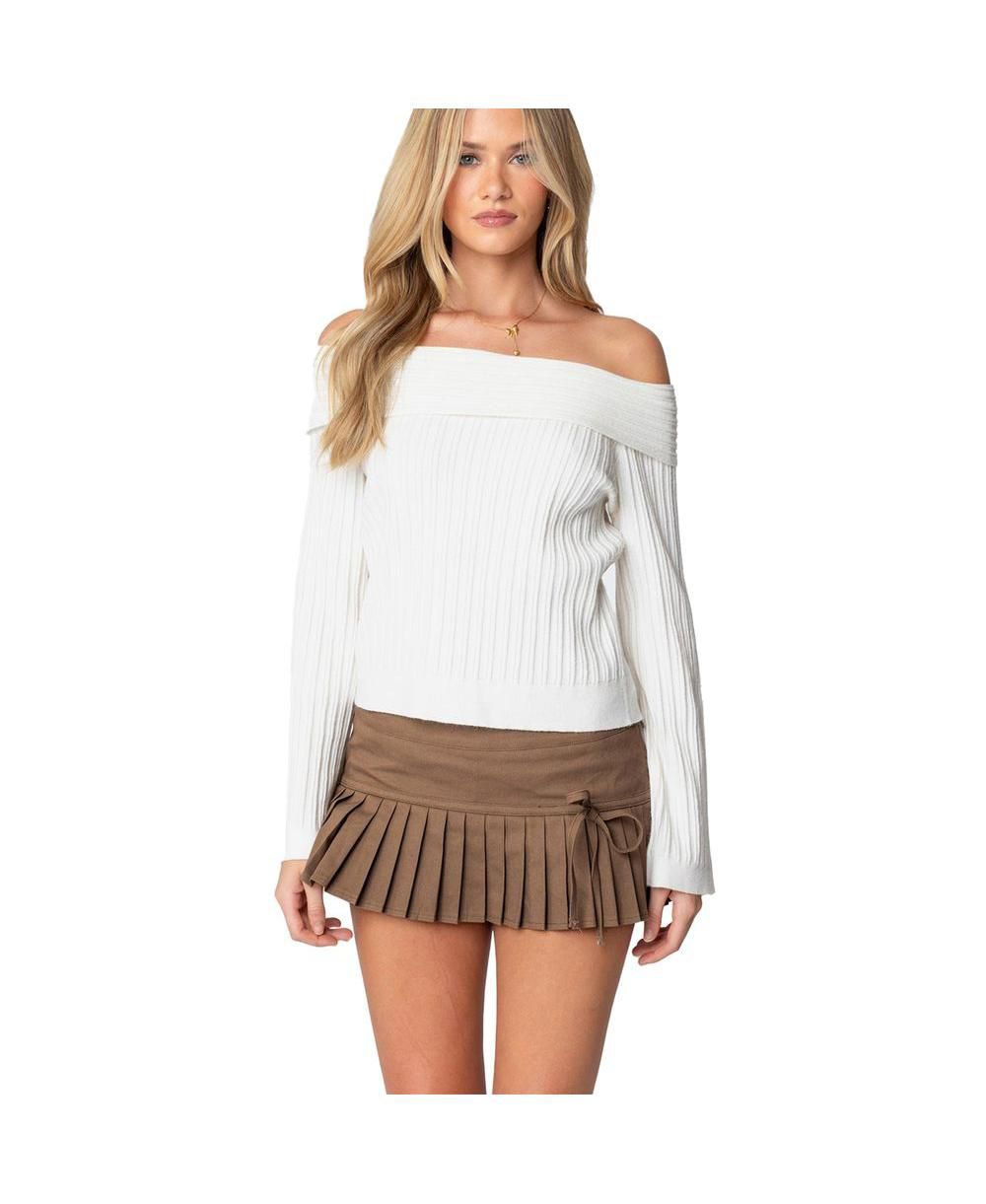 Edikted Womens Brandy Fold Over Ribbed Sweater