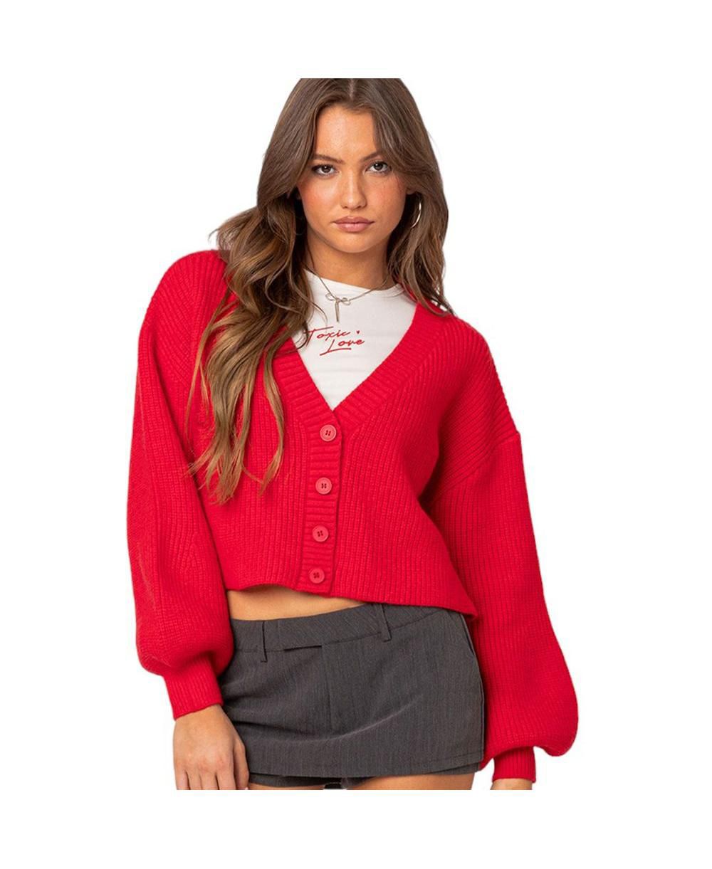 Edikted Womens Sabrina Chunky Knit Cropped Cardigan