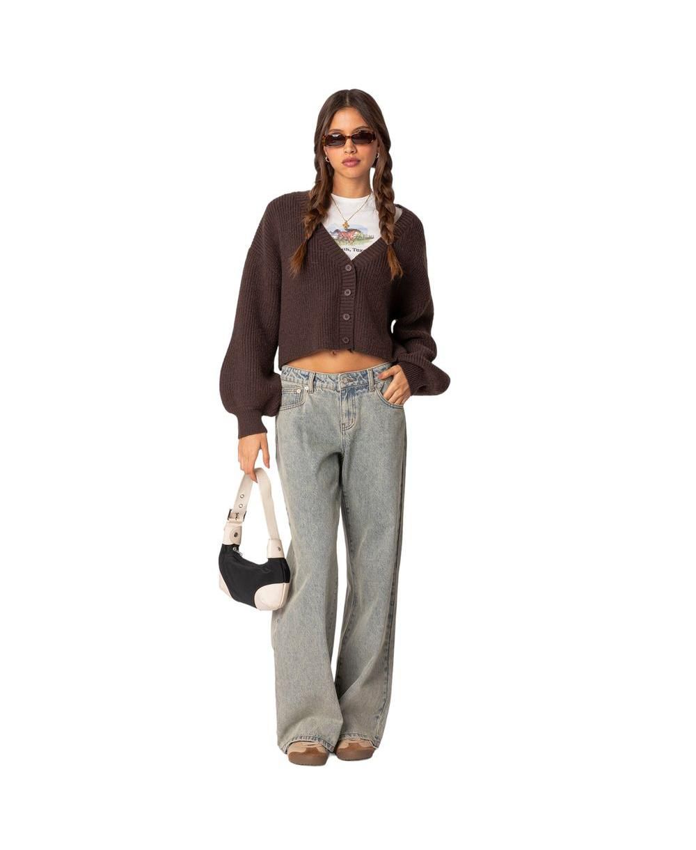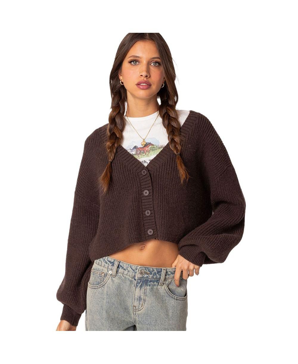 Edikted Womens Sabrina Chunky Knit Cropped Cardigan