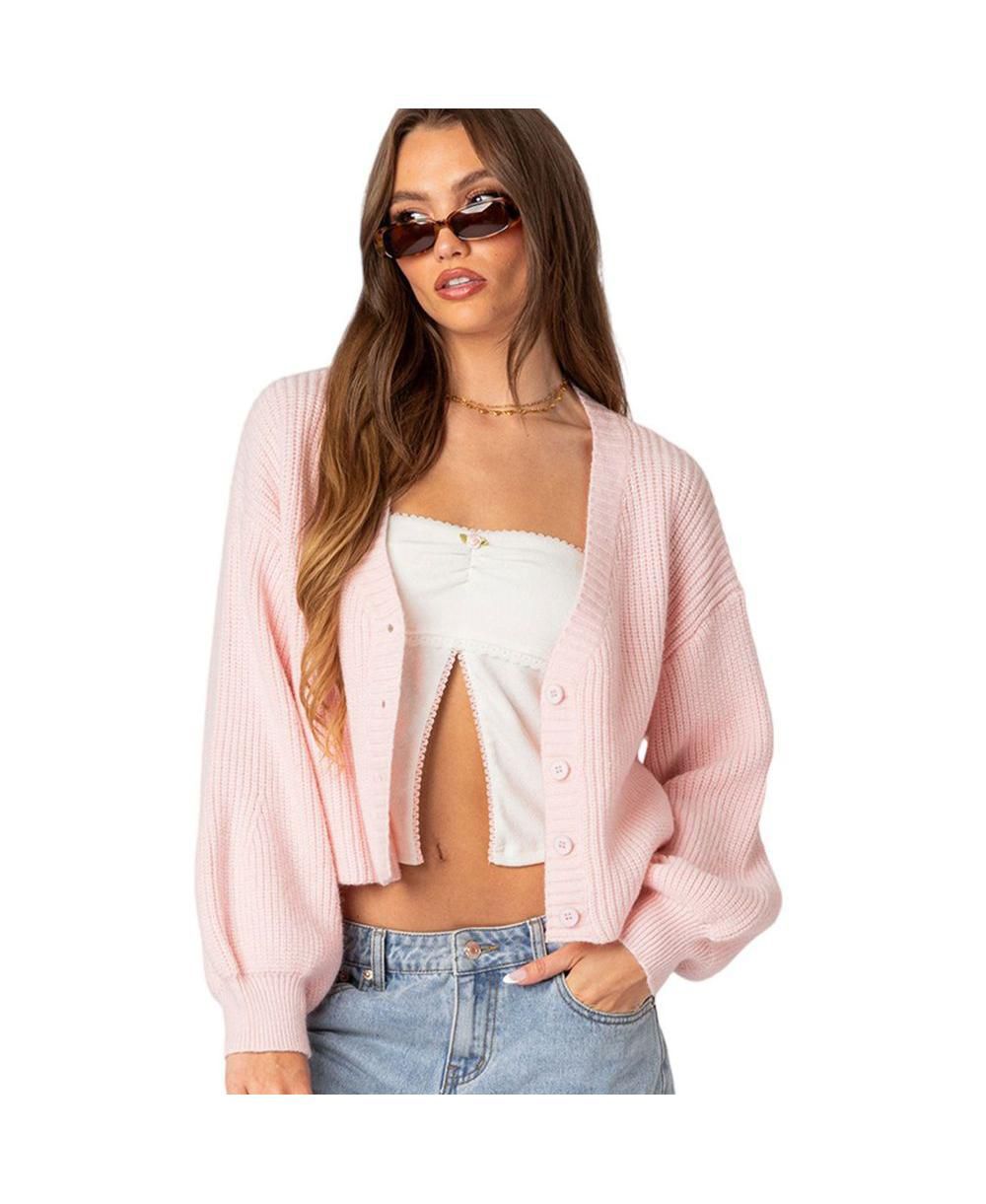 Edikted Womens Sabrina Chunky Knit Cropped Cardigan