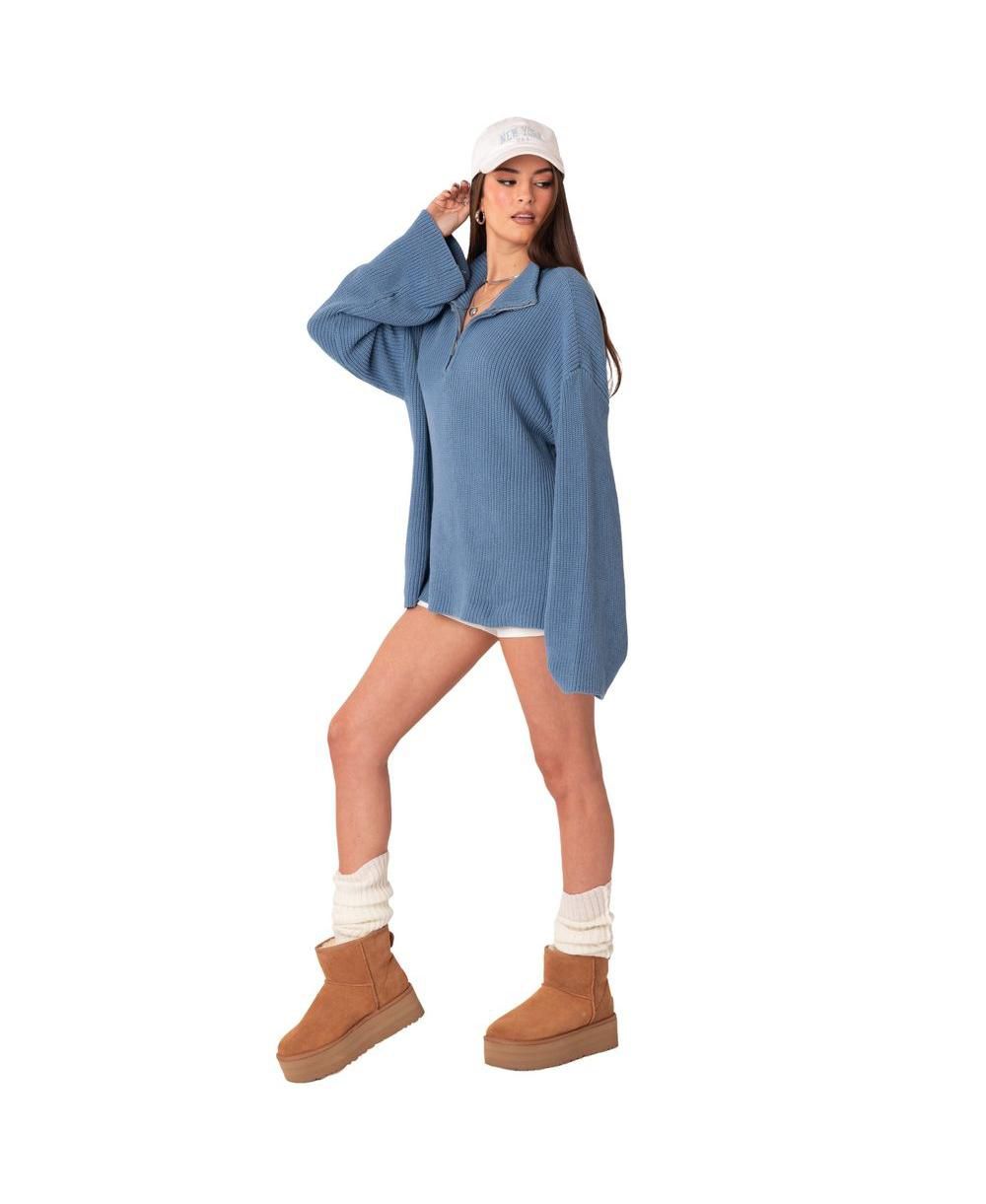 Edikted Womens Oversized Quarter Zip High Neck Rib Sweater