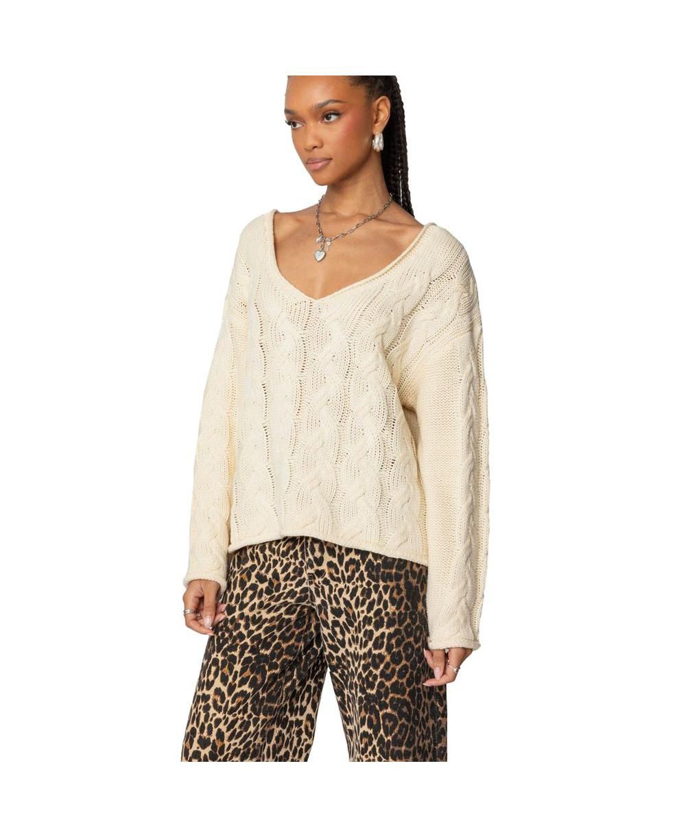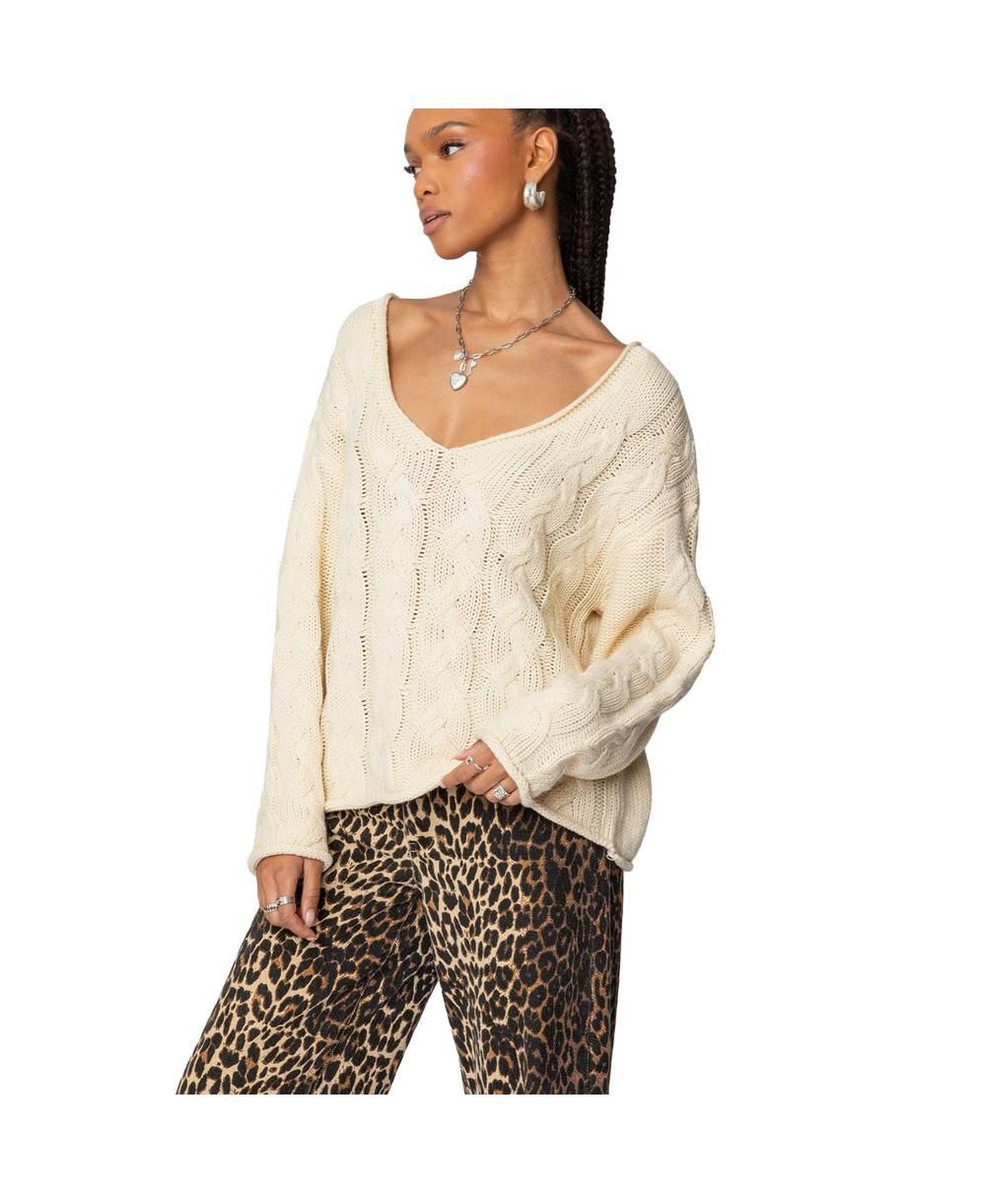 Edikted Womens Inga Oversized Cable Knit Sweater