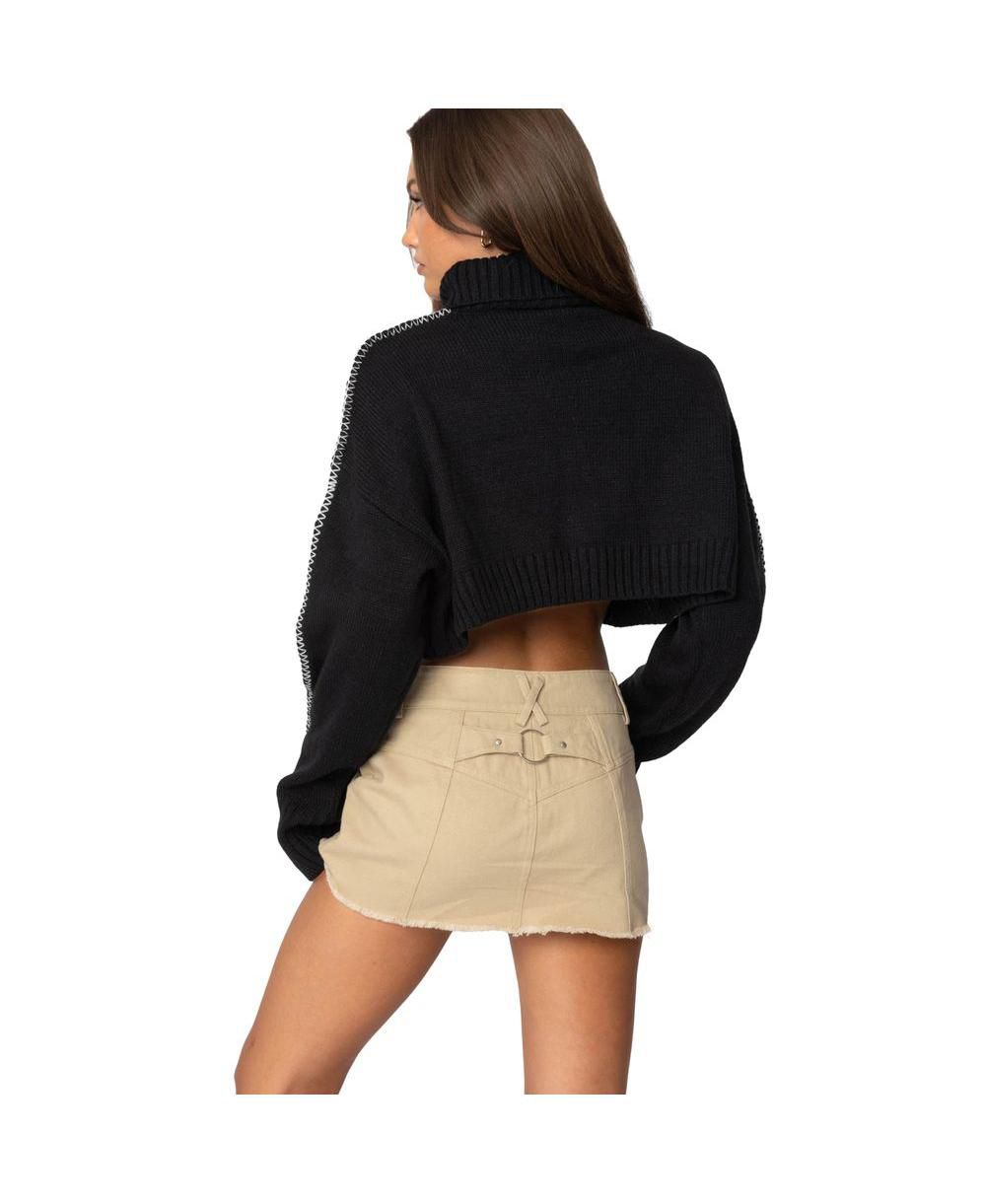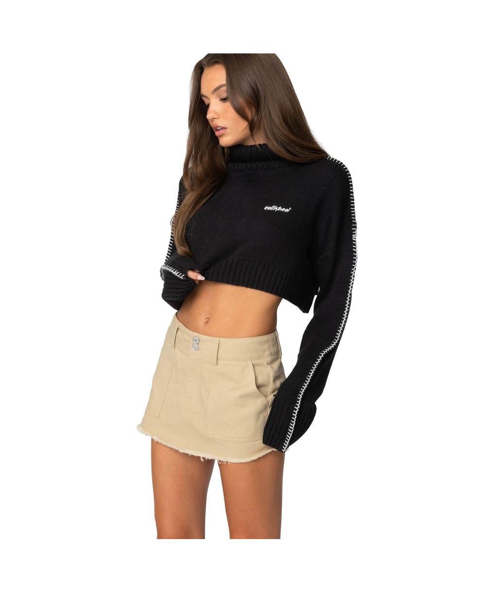 Edikted Womens Embroidered Edge Cropped Turtle Neck Sweater