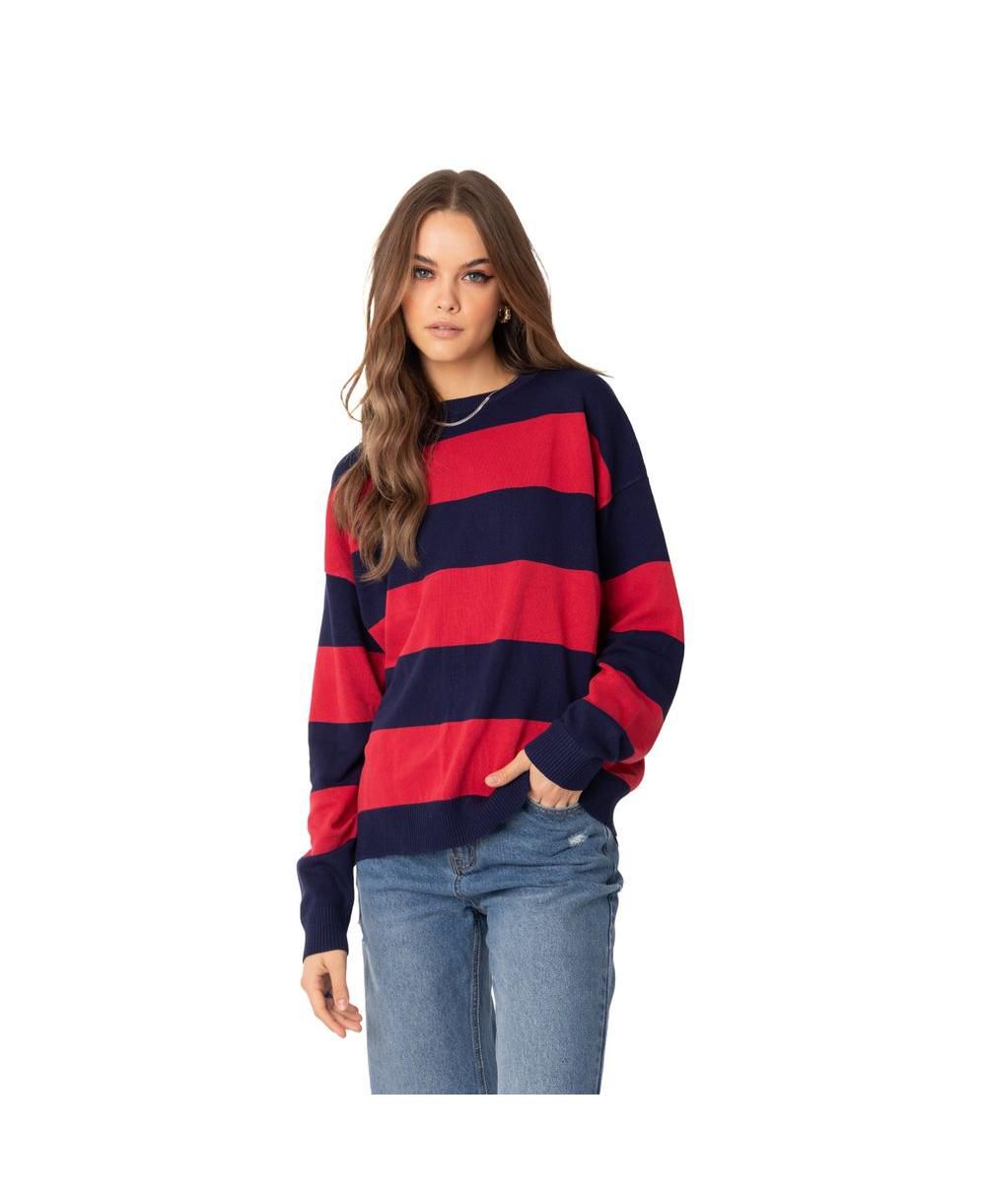 Edikted Womens Light Knitted Oversize Sweater With Stripes